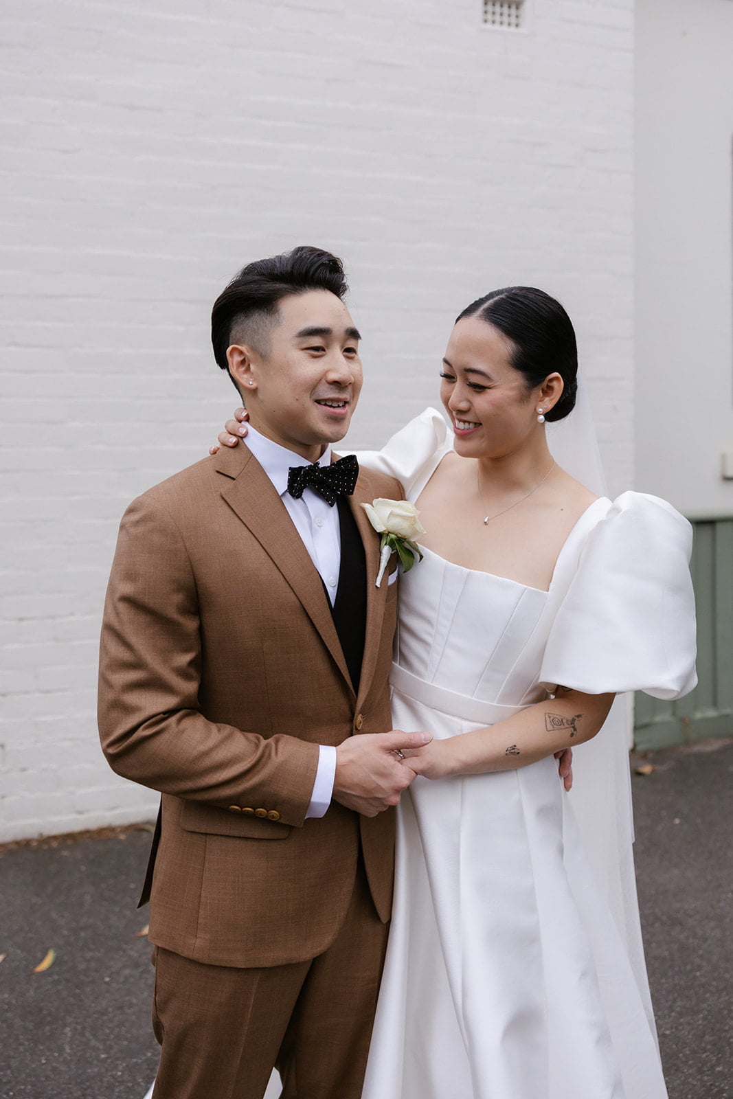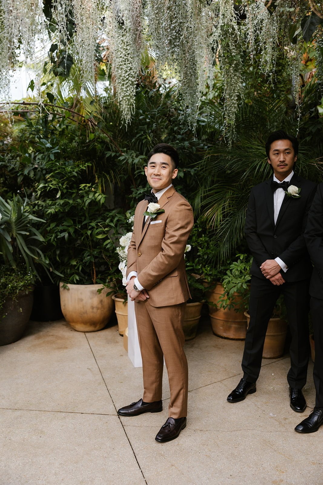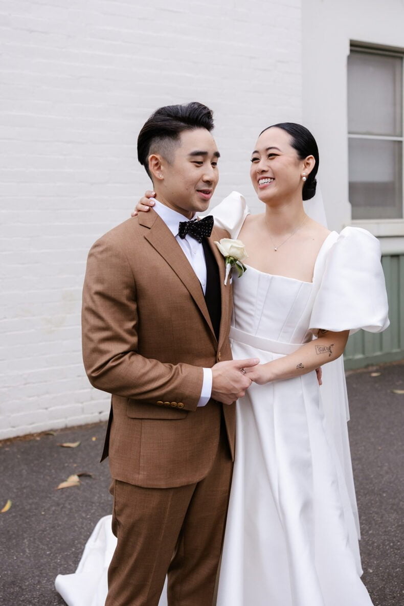 These two creative cats, Mel, and interior designer, and Adam, a professional dancer, were married on their 14-year anniversary, after first getting together in high school. And they had a specific vibe when planning their gorg day. “We wanted it to feel inviting and intimate, while being clean and minimal,” they tell us. “We wanted it to be timeless while being an expression of our styles.”