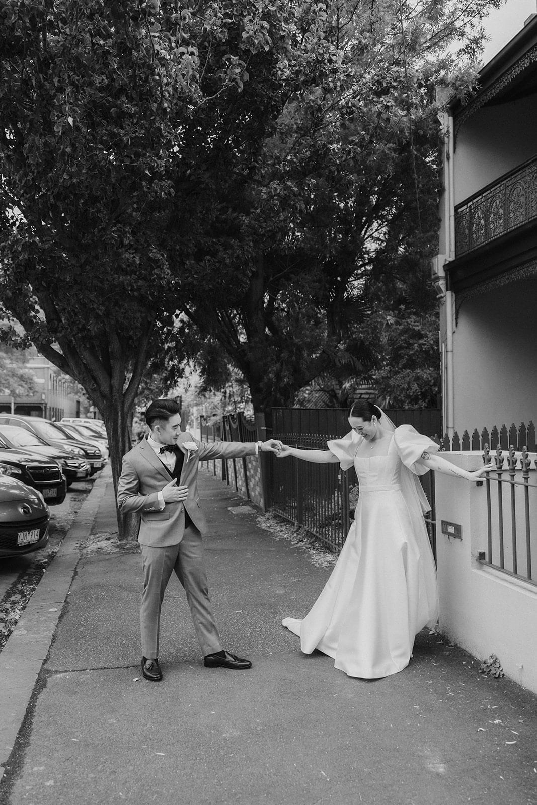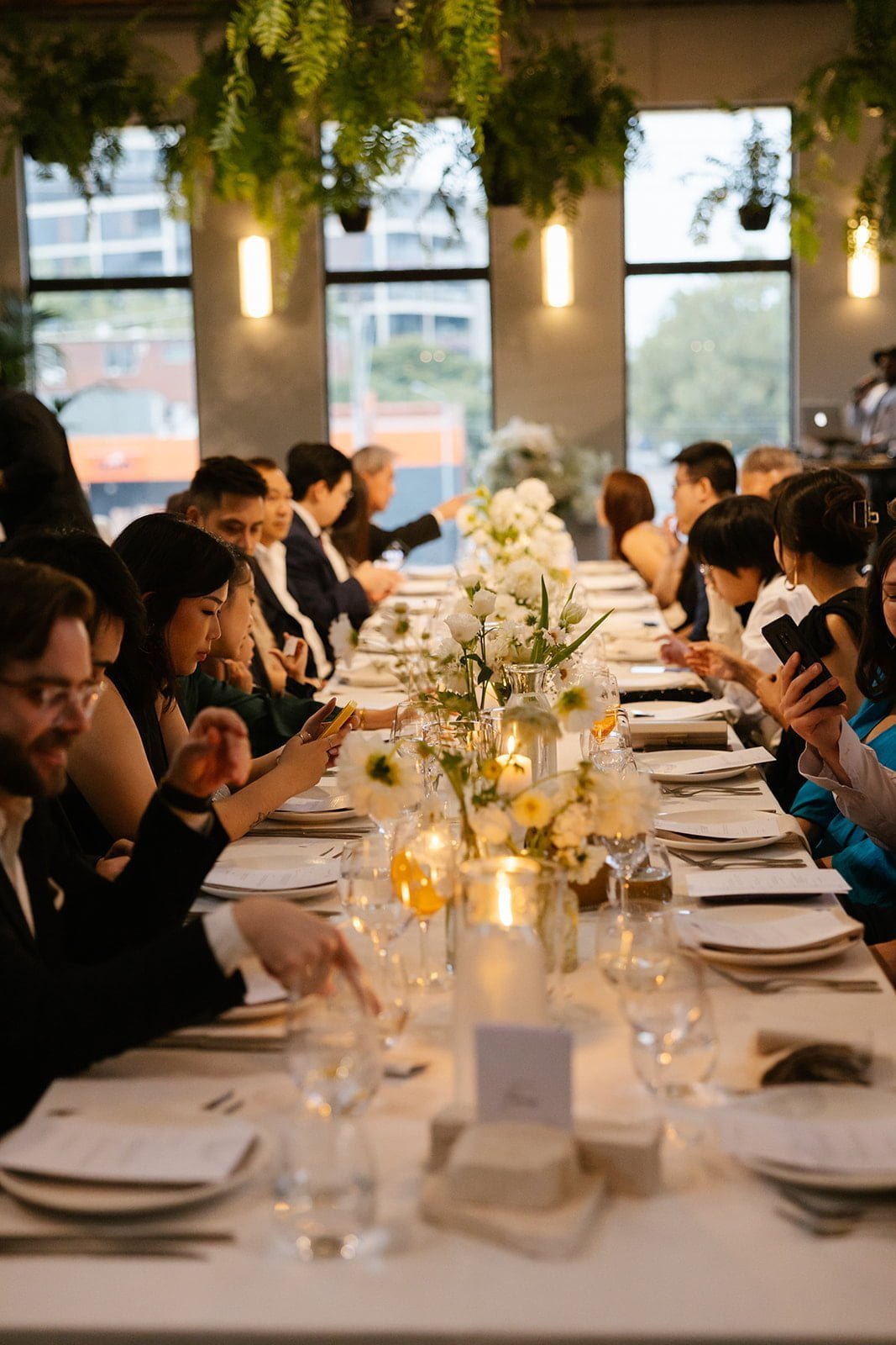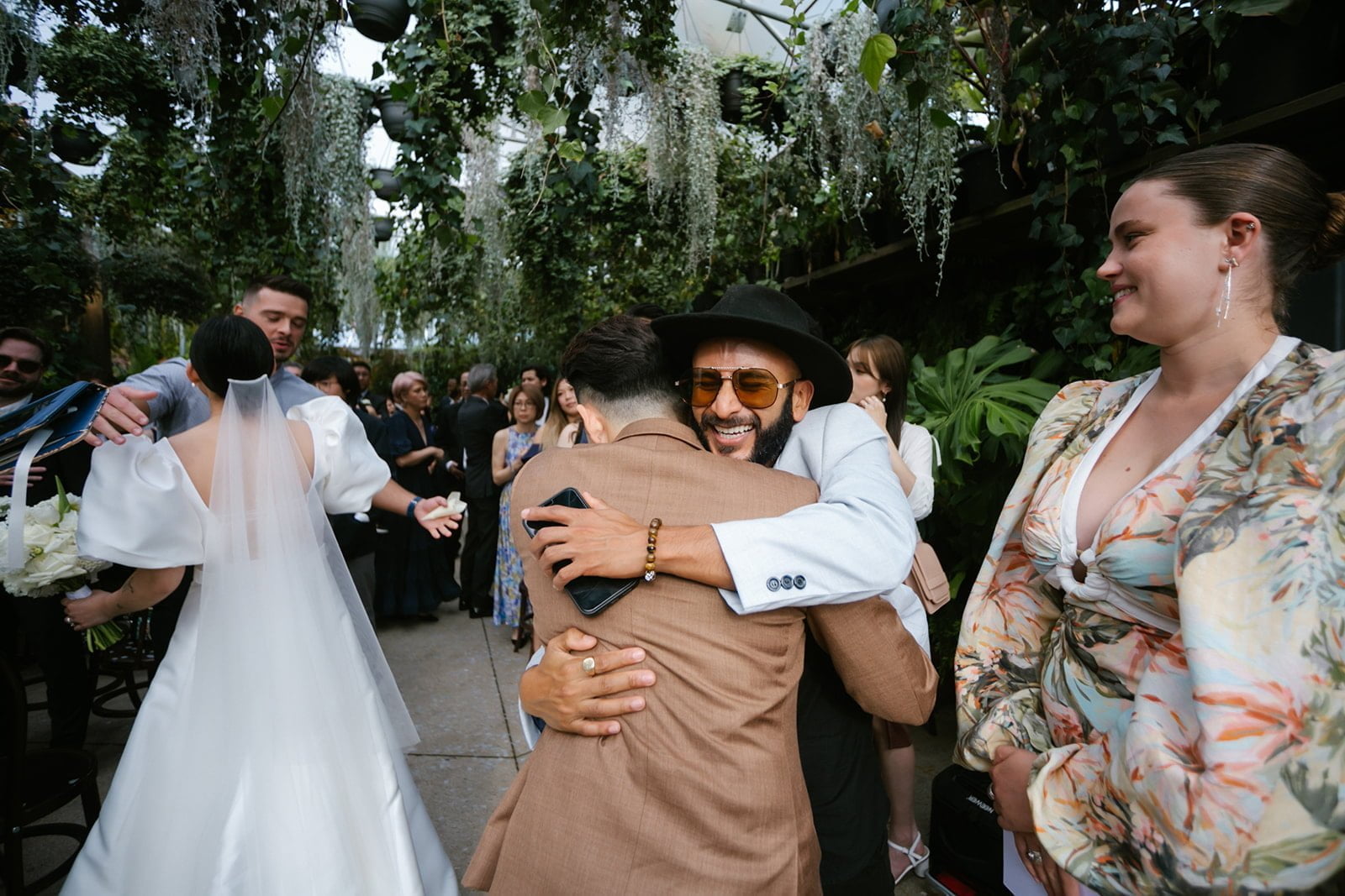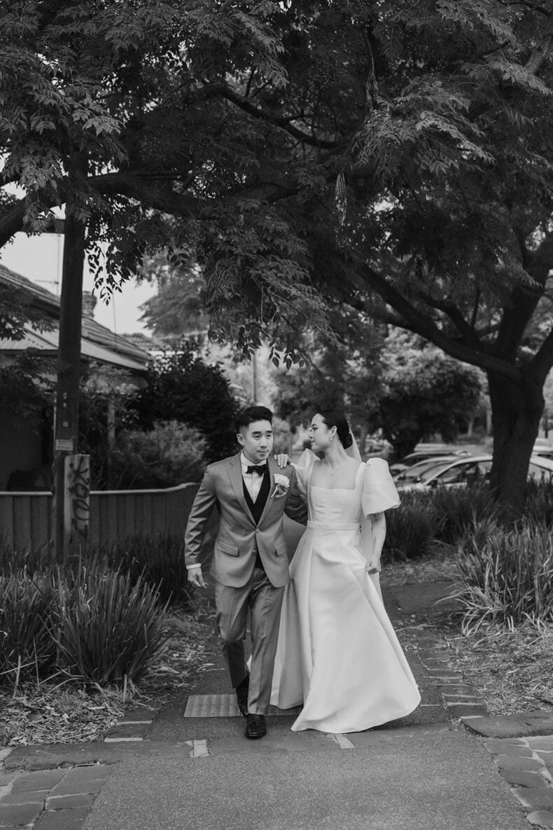 These two creative cats, Mel, and interior designer, and Adam, a professional dancer, were married on their 14-year anniversary, after first getting together in high school. And they had a specific vibe when planning their gorg day. “We wanted it to feel inviting and intimate, while being clean and minimal,” they tell us. “We wanted it to be timeless while being an expression of our styles.”