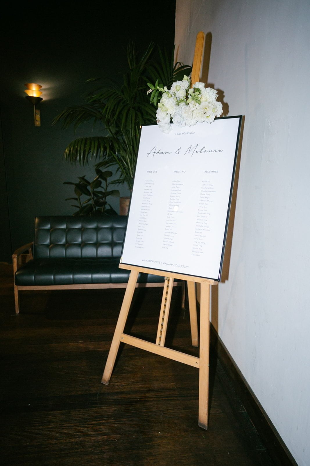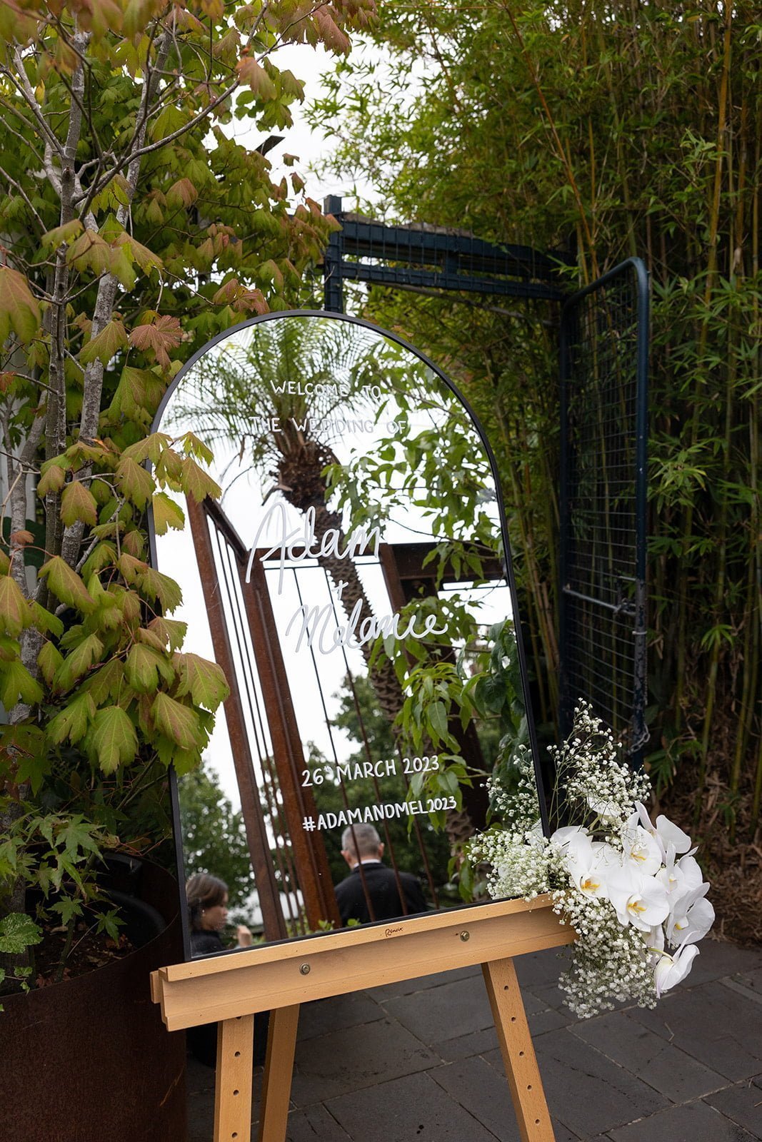 DIY “We did quite a bit of DIY – our invites, menus and detail cards were custom made by us. The mirror signage and seating chart. Wedding favours were all hand-drawn by my sister and written on by me.”