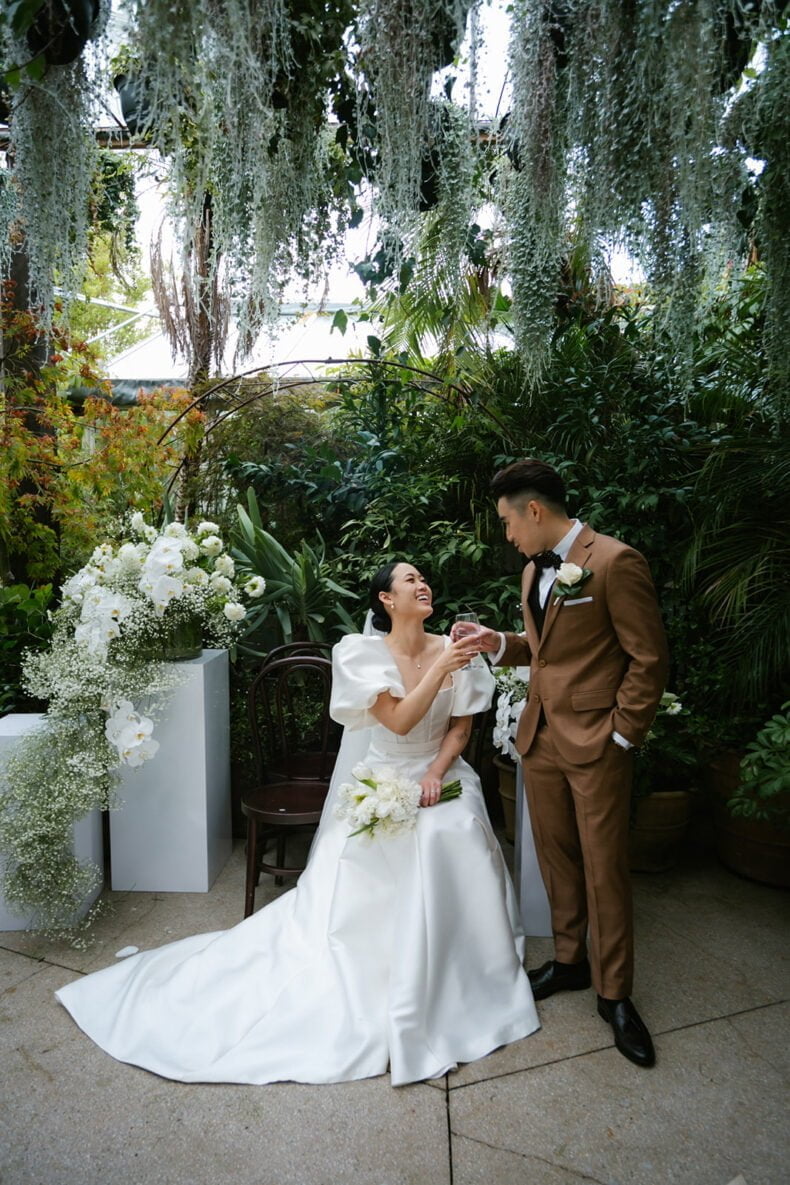 CONTRIBUTING VENDORS Photographer Brown Paper Parcel Florist Glasshaus Printer Officeworks Ceremony & reception venue Glasshaus Catering Fourside Food Design & Events Cake Cocoa & Crumbs Hire Items The Table Station Entertainment (MC) Sid The Entertainer Celebrant Christine Kha Rings Temple and Grace Transport Crown Prestige Limousines Accomodation Hilton Hotel on Little Queens THE BRIDE Bridal gown designer Karen Willis Holmes Veil Kim Alpha Bridal Getting ready Kat the Label, The Daily Sleeper Shoes ASOS Accessories Tiffany & Co Hair Catherine Lee (Mum) THE GROOM Suit, shirt & shoes Benjamin Barker Tie Ralph Lauren Watch Seiko Groomsmen suits Marks & Spencer