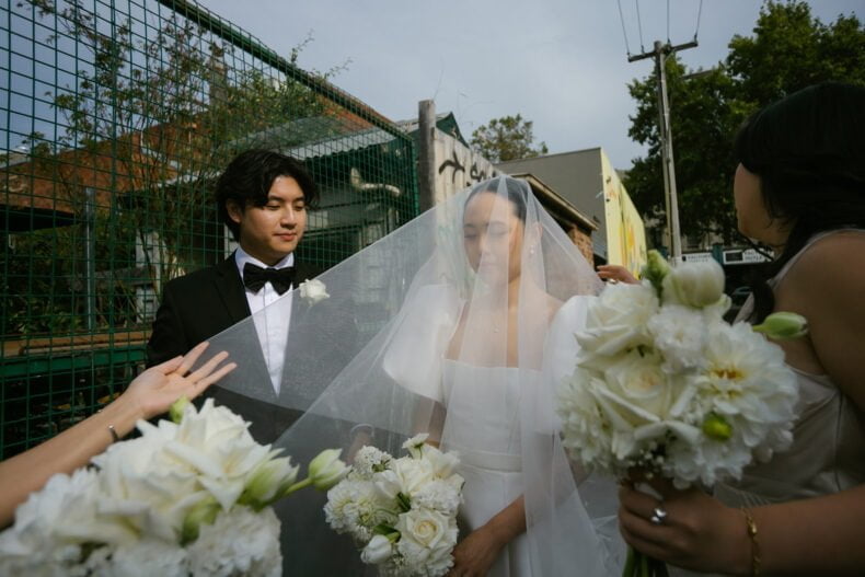 Mel walked down the aisle in a stunning Karen Willis Holmes gown, and Fourside Food Design + Events took care of the sit-down dinner. Add the talented Jess from Brown Paper Parcel on photos and you can see why this was a wedding we simply had to show you guys. Scroll down for more…