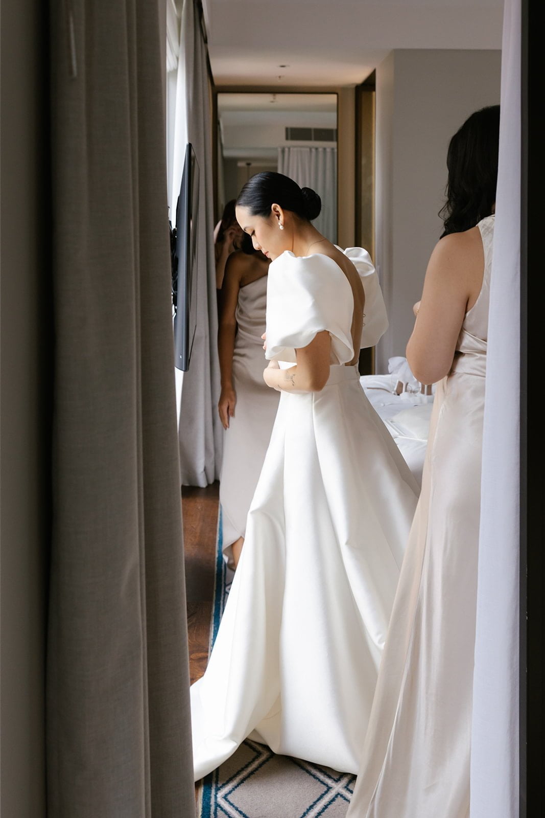 THE DRESS “It is from the amazing Karen Willis Holmes. I was set on another dress from another boutique, but KWH was still on my mind and I needed to be 100 per cent sure I was going with the first dress. My mum and my sister went with me to Karen Willis Holmes just to ‘try on’ a dress so I could sleep knowing I went through all the options. My mum looked around and picked up a bodice and skirt combo. We went through all the other options and as soon as I put on what my mum picked I knew, it was THE dress.”