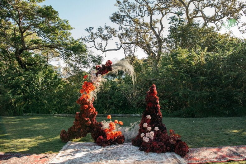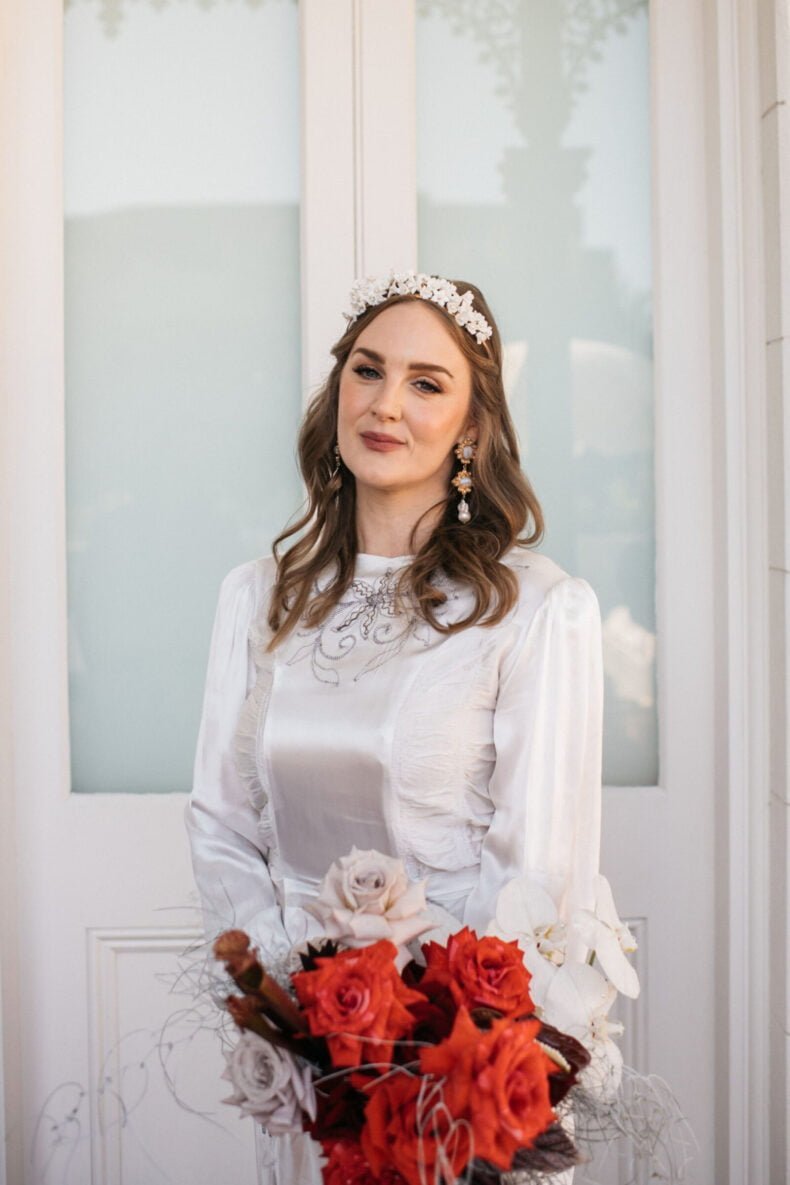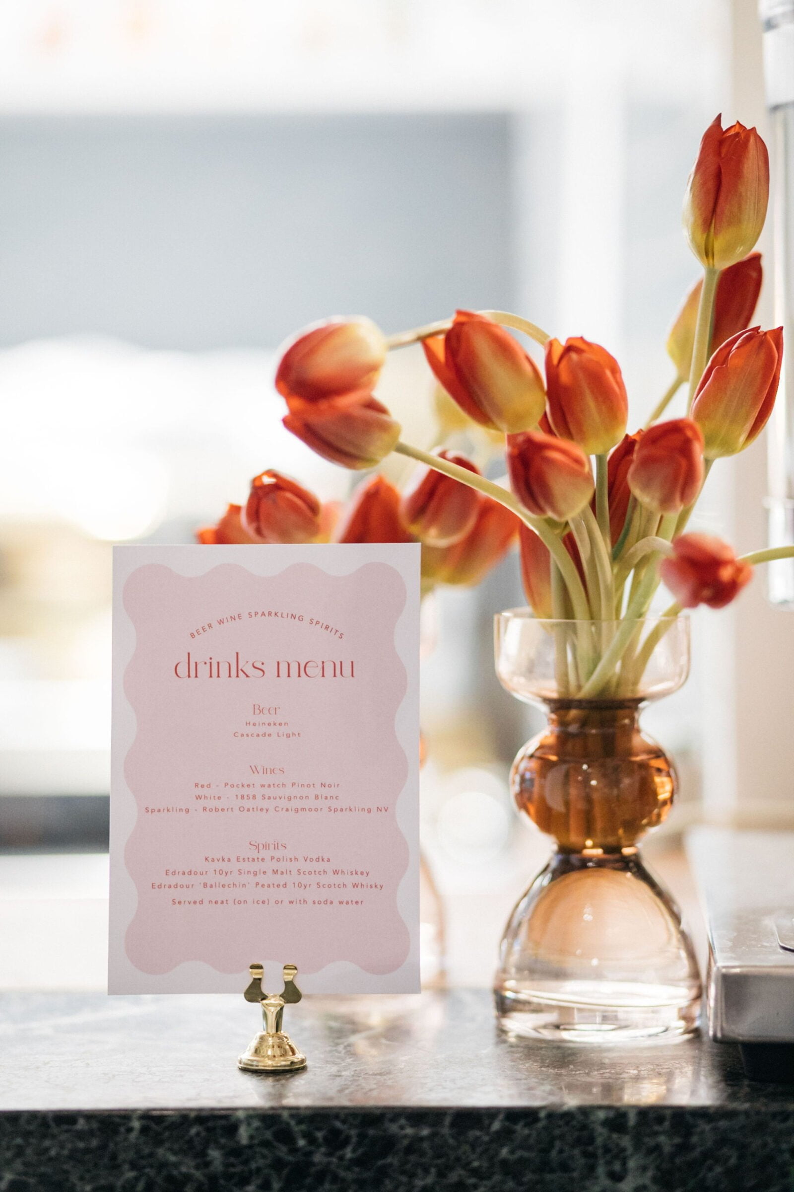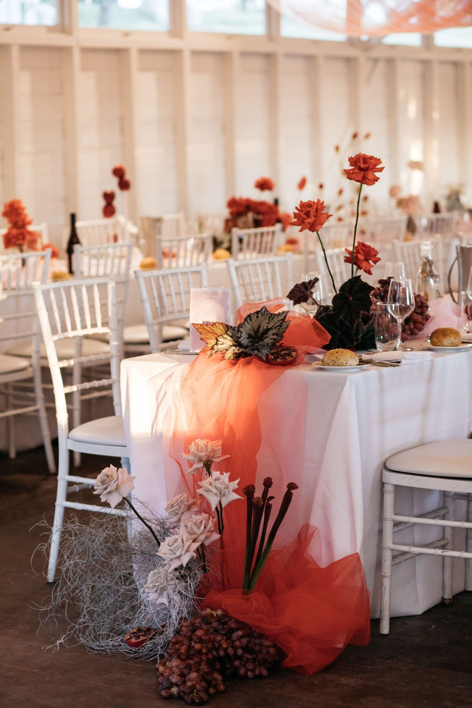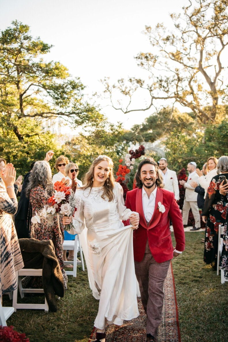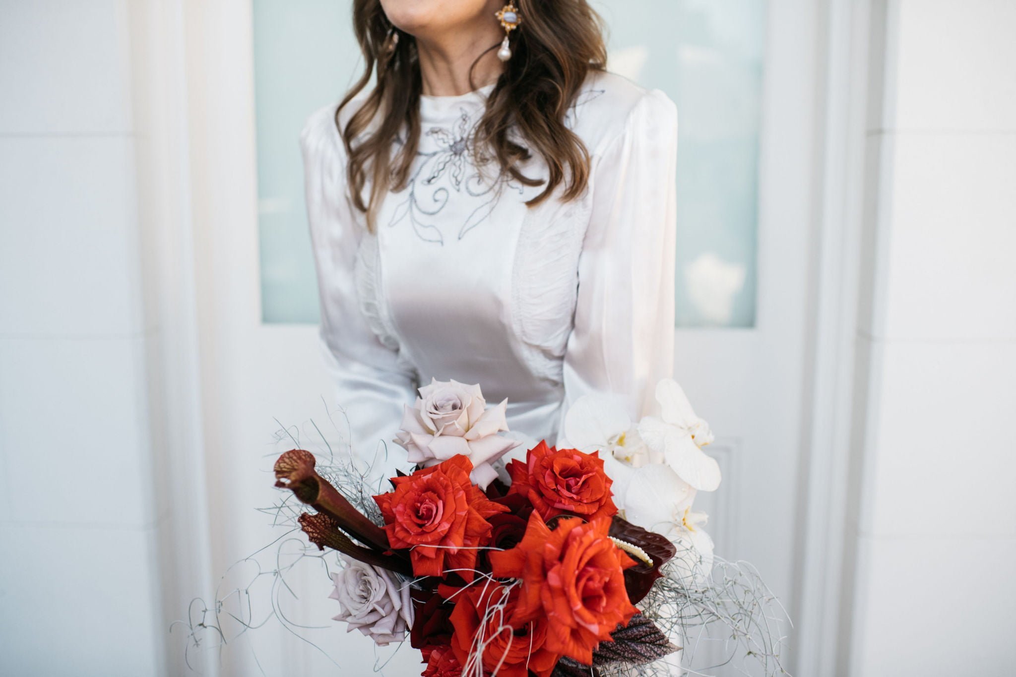Seriously, how straight-up magic is Morgan and Adam’s big day? The colour palette, the red velvet suit, the styling, the wedding parties… We’re so here for all of it!  “The aesthetic we were going for was a more elegant version of ’70s era glam-rock meets 1930s,” the newlyweds share (um,YES!). “We chose a pink and red colour scheme and wanted guests to feel fabulous and comfortable.”
