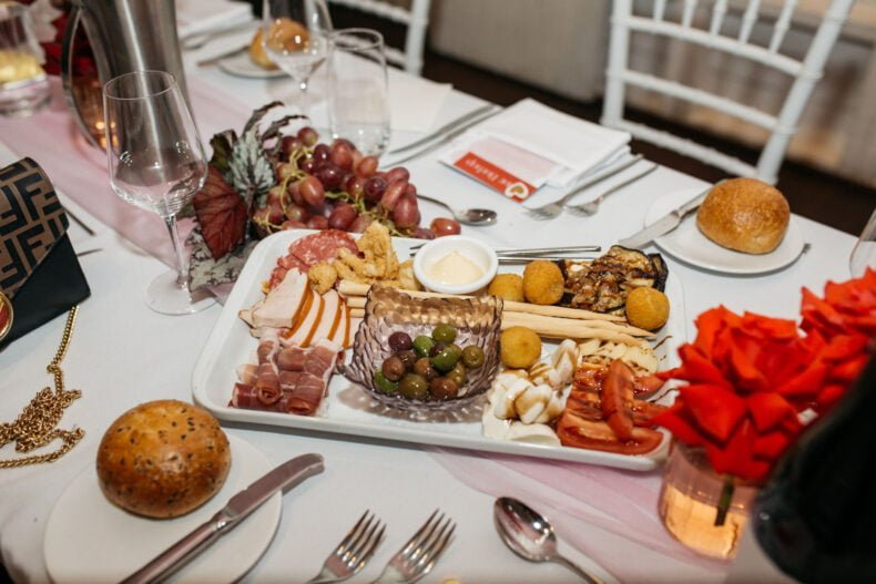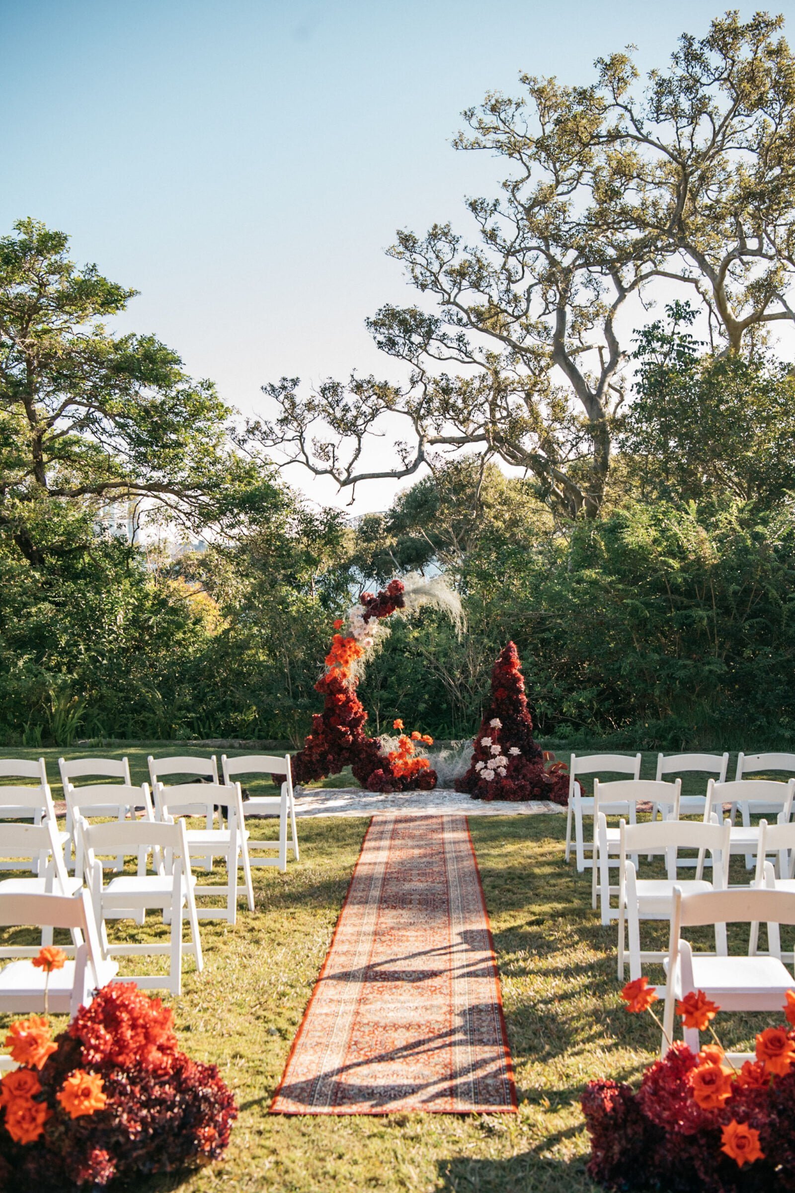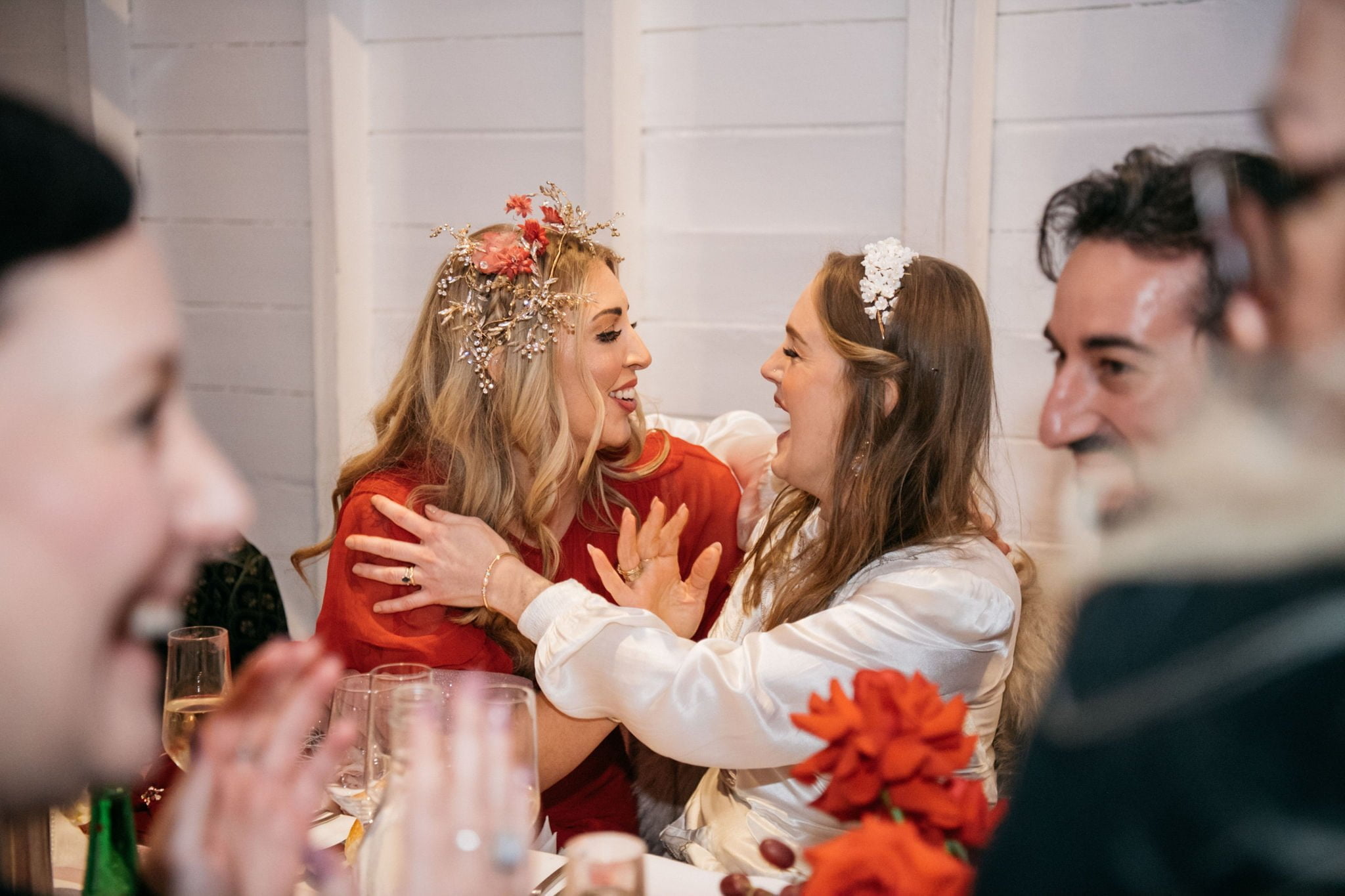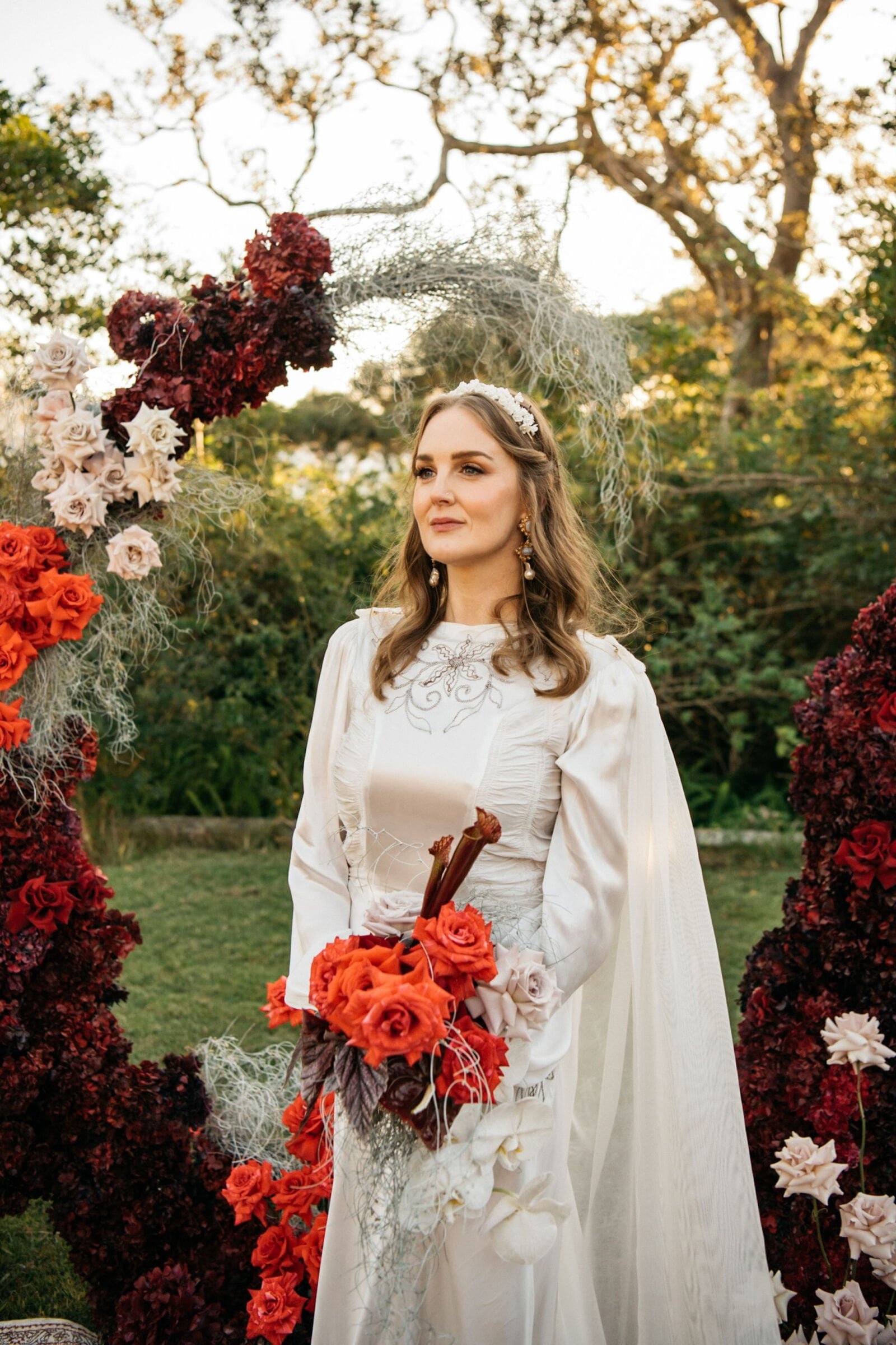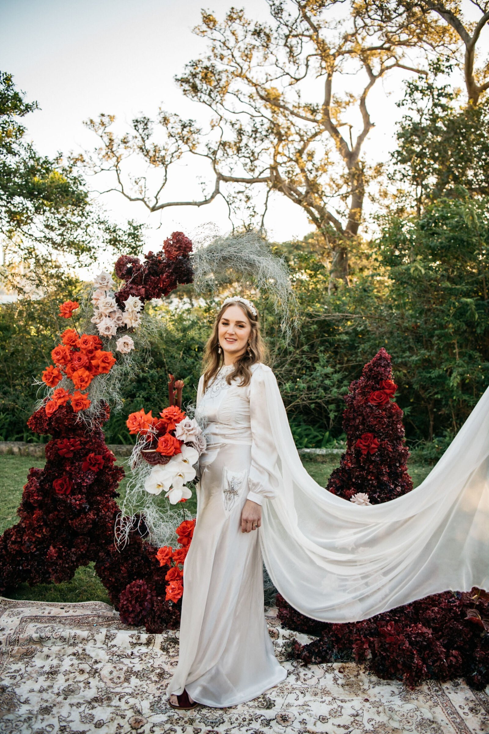 Seriously, how straight-up magic is Morgan and Adam’s big day? The colour palette, the red velvet suit, the styling, the wedding parties… We’re so here for all of it!  “The aesthetic we were going for was a more elegant version of ’70s era glam-rock meets 1930s,” the newlyweds share (um,YES!). “We chose a pink and red colour scheme and wanted guests to feel fabulous and comfortable.”