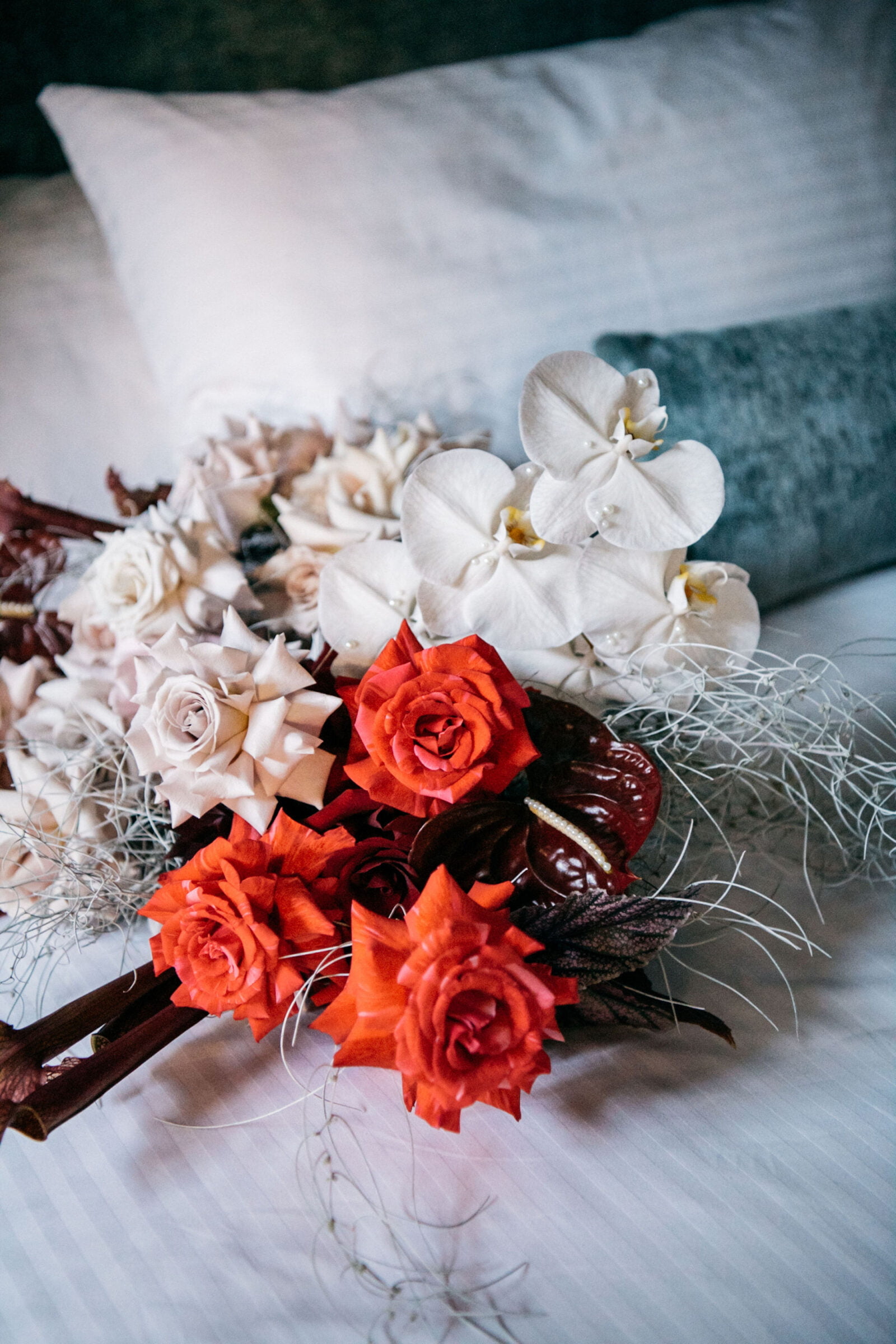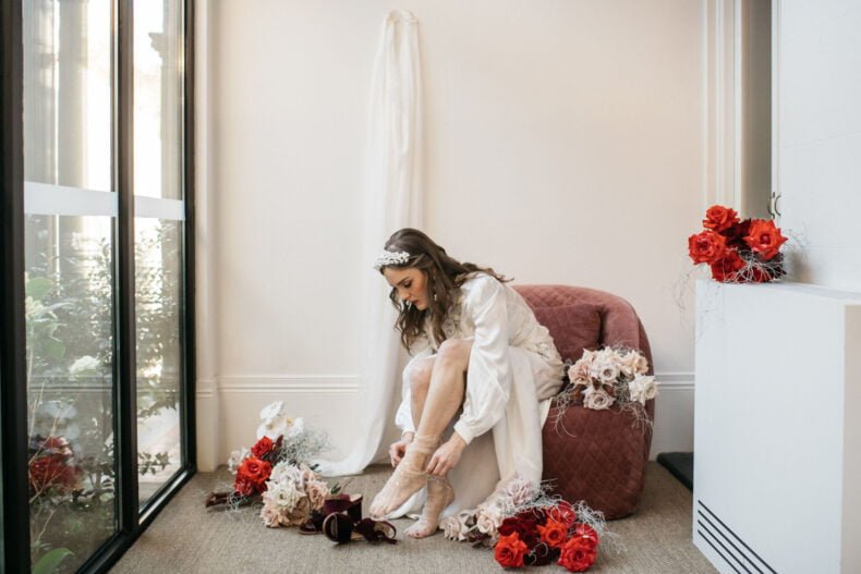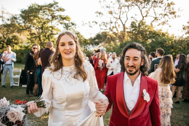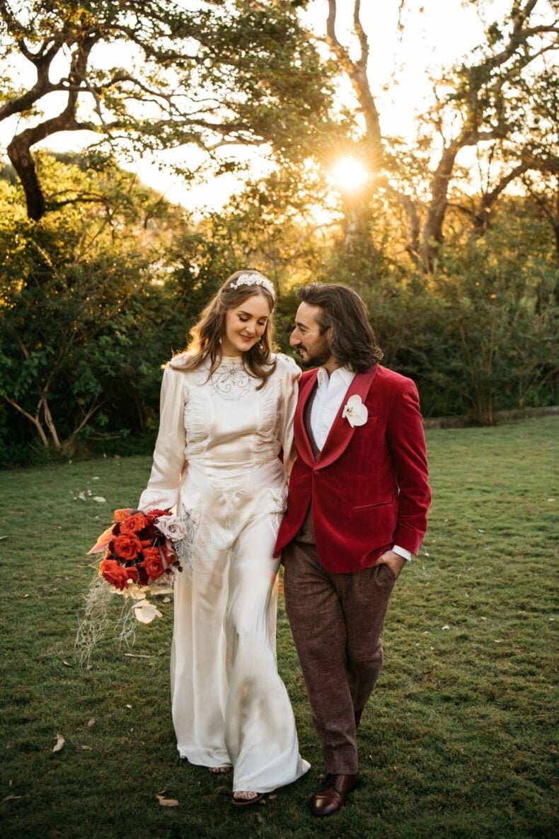 THE SUIT “In contrast to Morgan’s impeccable thrift on the dress, I (did what I was instructed to do, and) went all out! Initially, I searched online and at dozens of stores but couldn’t find what I wanted, so I spoke to a few tailors before the maid-of-honour suggested the tailor her husband had used for their wedding and I am SO glad she did because Shane from Rochefort was a legend. The result is an eye-catching jacket in red velvet that shimmers towards pink in some light.”