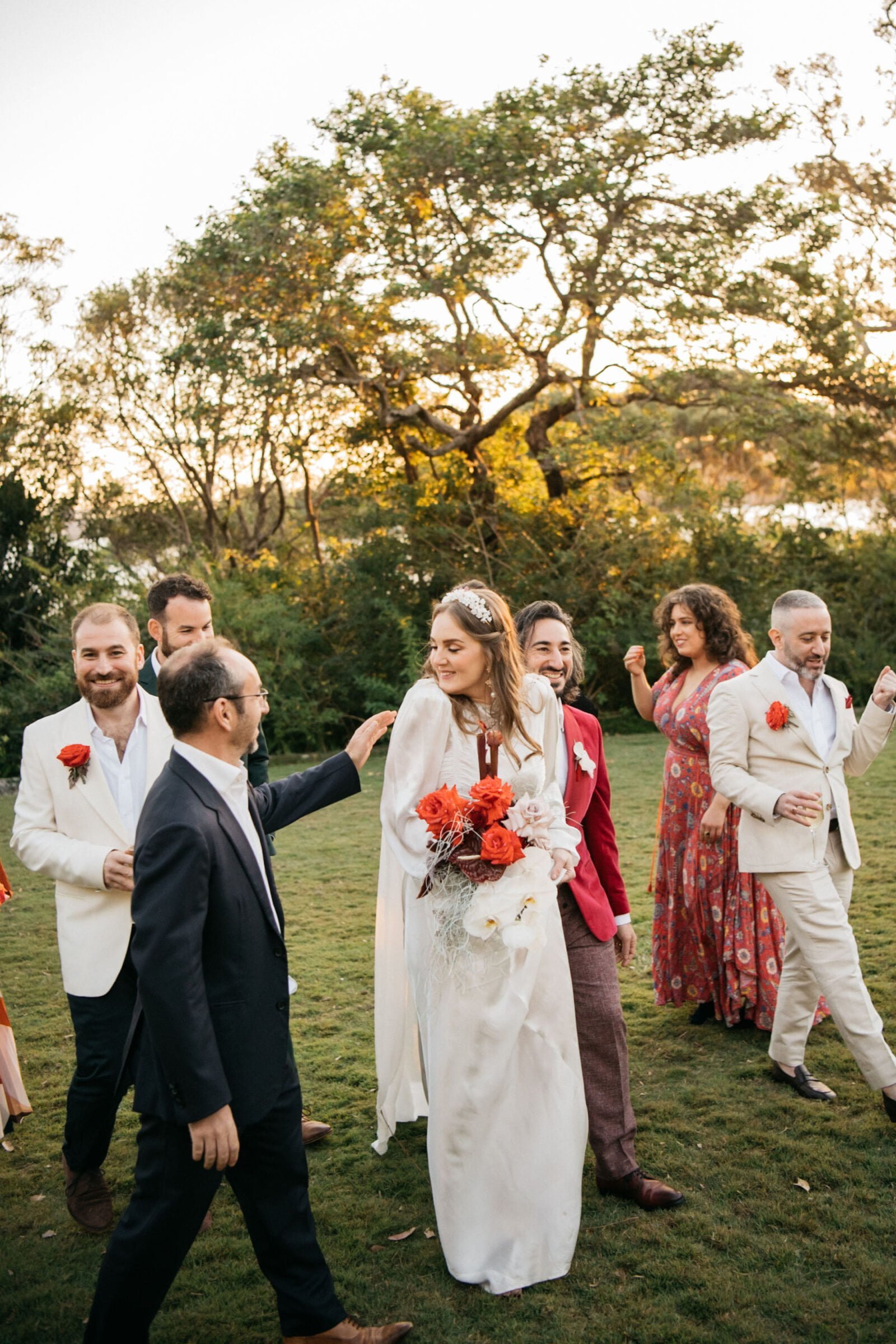 CONTRIBUTING VENDORS Photographer Maple and June Stylist Bride, White House Flowers Florist White House Flowers Stationery PearlyPaperDesign via Etsy, With Joy Printer Officeworks  Ceremony & reception venue Athol Hall Cake  Fiora Dessert Studio Wedding favours The Pin Factory Celebrant Nitza Lowenstein Rings Victoria Buckley, Juju Gems THE BRIDE Bridal Boutique DressedinHistory via Etsy Veil Handmade by Bride Hair piece BigRockBridal via Etsy Shoes Chaos and Harmony Hair & Makeup Georgia Hull Bridesmaid dresses Bridesmaids’ own Bridesmaid gifts Homebodii THE GROOM Suit Rochefort Cufflinks Farage Shoes Messini Groomsmen suits Groomsmen’s own Groomsmen gifts Chokman