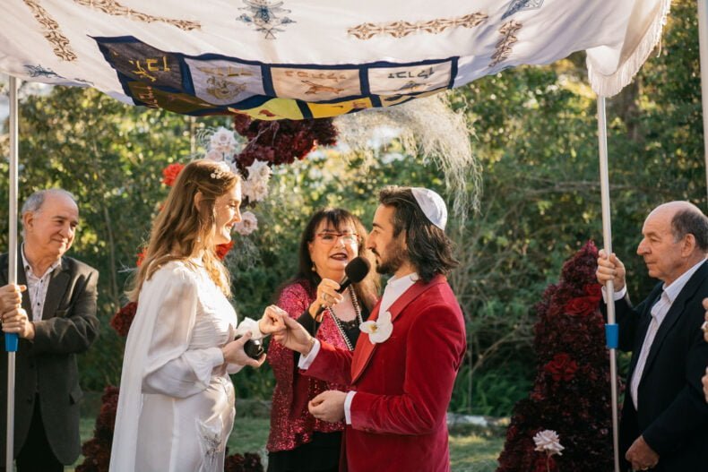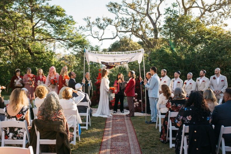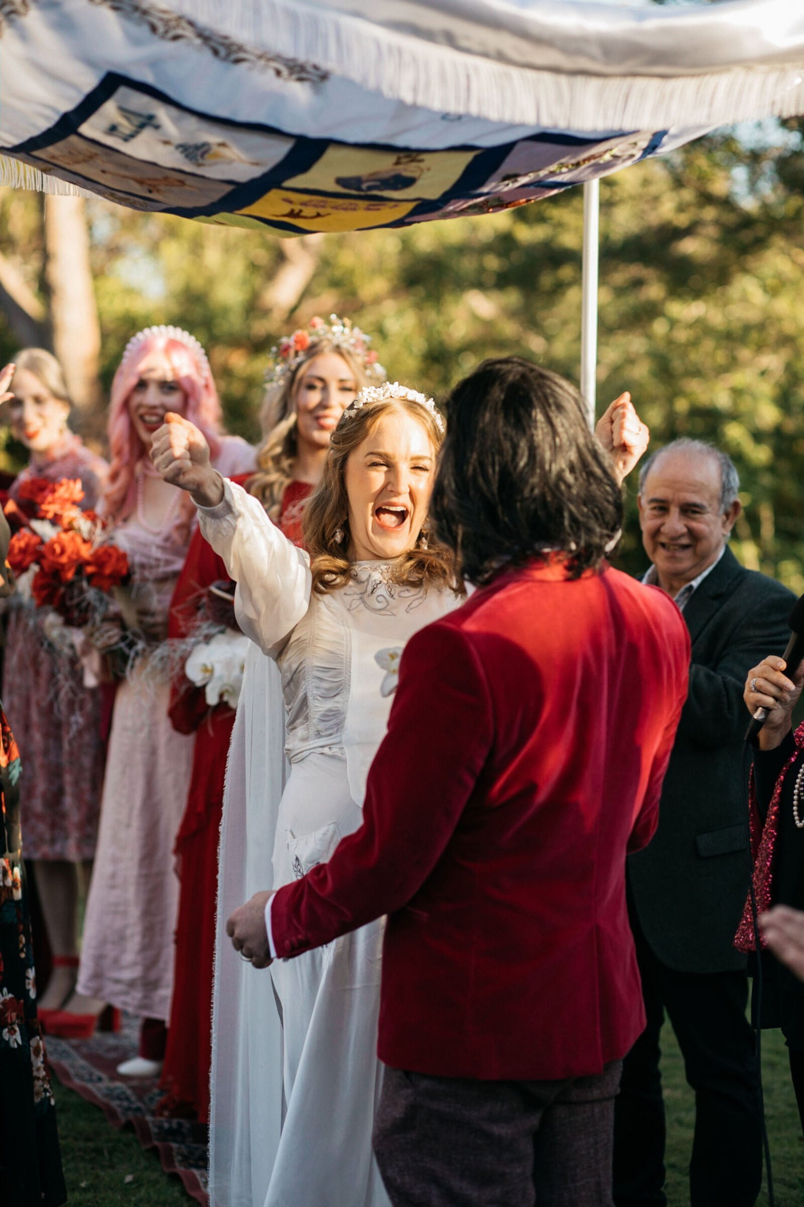 A TOUCH OF TRADITION “Adam is a secular ‘bacon-eating’ Jew, so we wanted to include some aspects of Jewish tradition, without getting Rabbis involved, and as such chose a celebrant who worked with us to incorporate some elements (such as the huppah, or wedding canopy and stepping on a glass – accompanied by obligatory quip about it being the last time I’ll put my foot down) into the ceremony.”