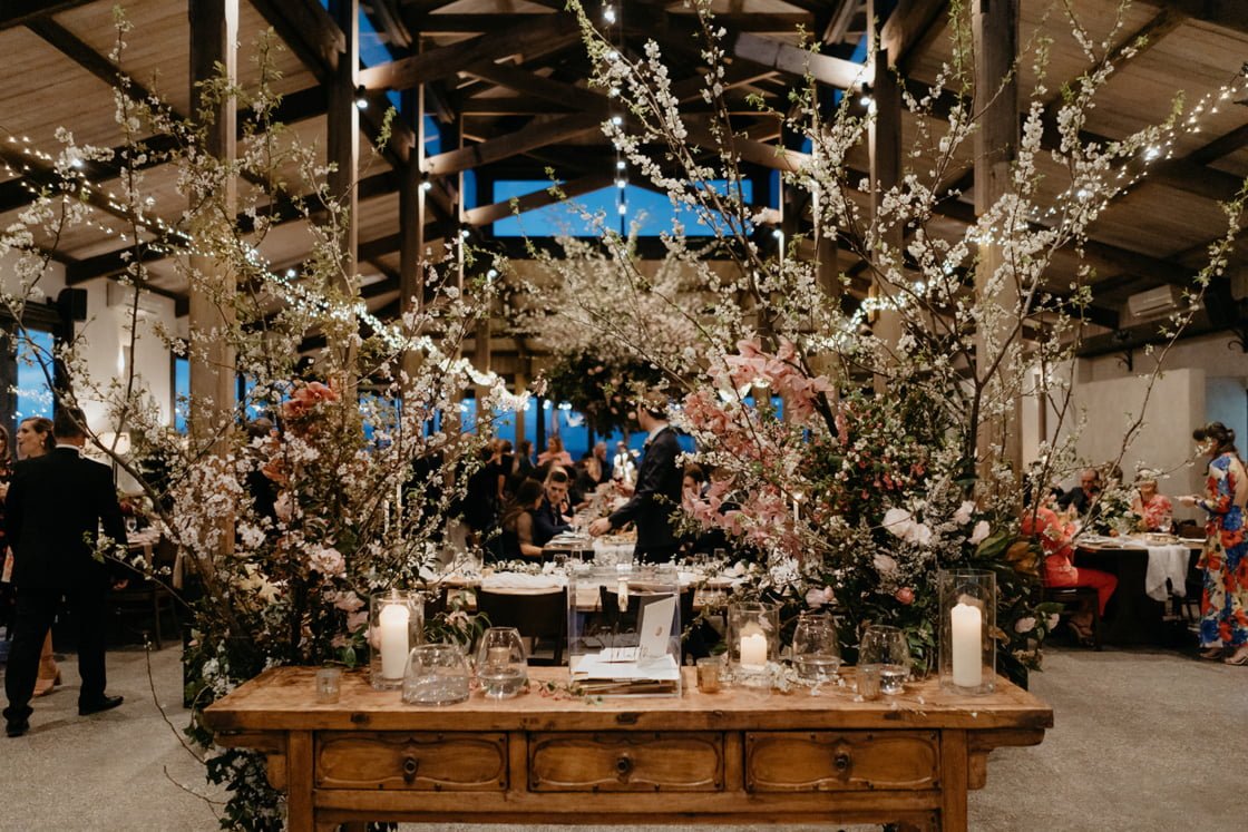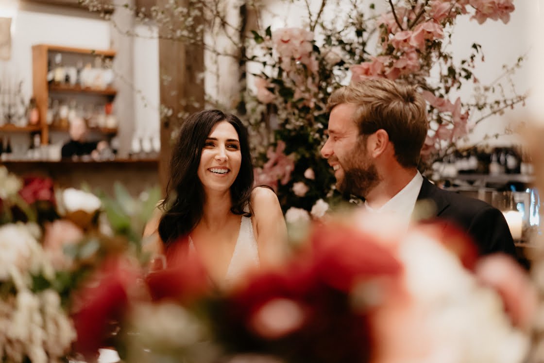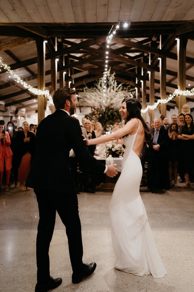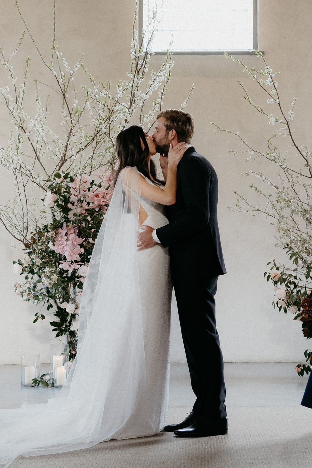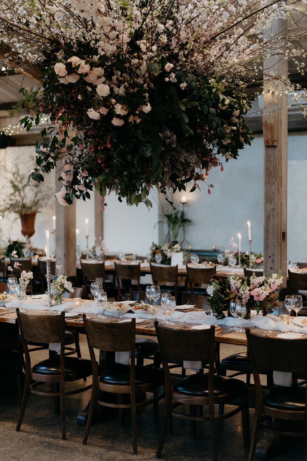 FAVOURITE DETAILS “Our flowers hands down would take the win. When I first met with Rita [Rita Feldmann Flowers] I couldn’t wait to work with her. She is so creative and talented and felt super comfortable that she could bring my mood board vision to life. Our flowers on the day were just incredible and really set the tone for the whole wedding. We had this absolutely stunning hanging centrepiece at our reception, above the middle dining table, with a cherry blossom explosion. We were absolutely blown away by how stunning and romantic she made all the arrangements look when we arrived into the barn.”