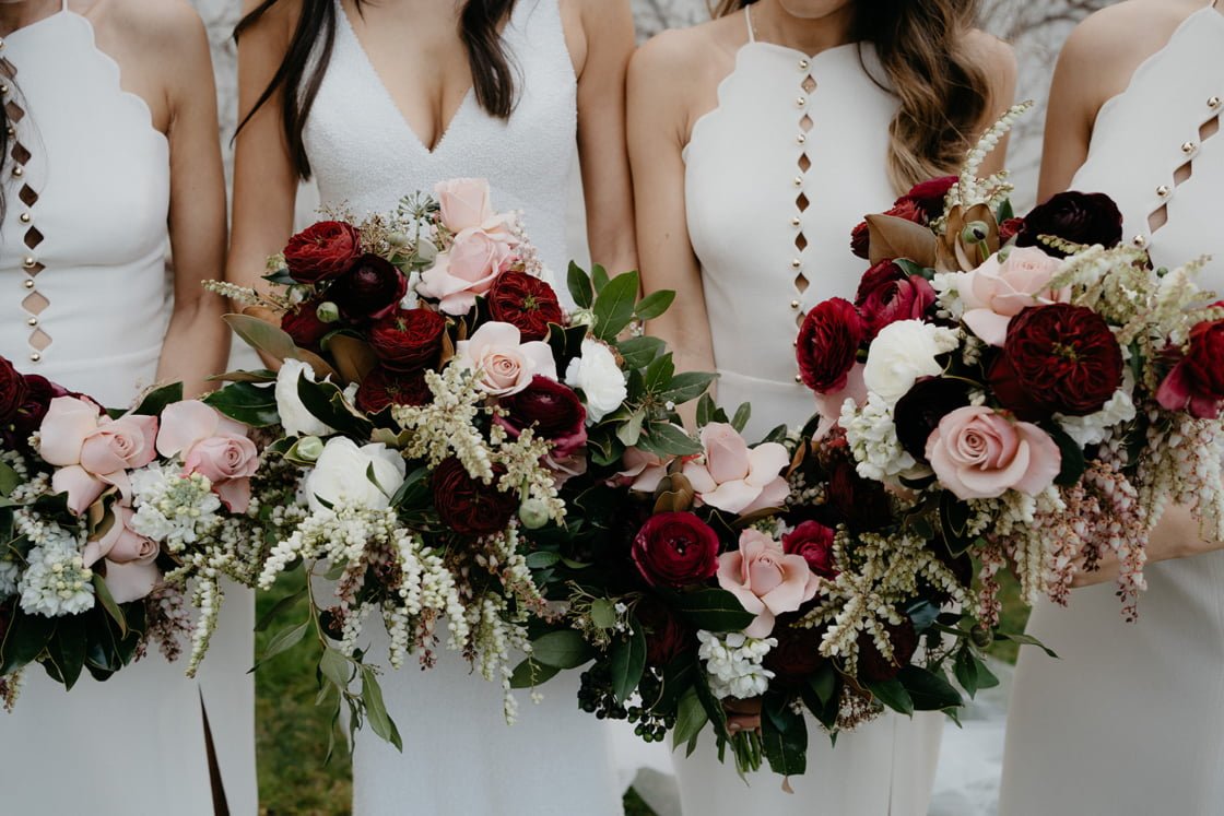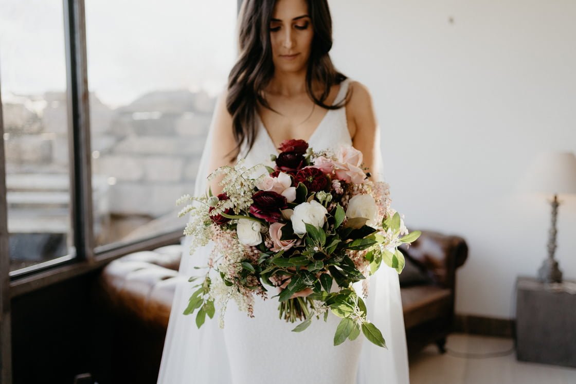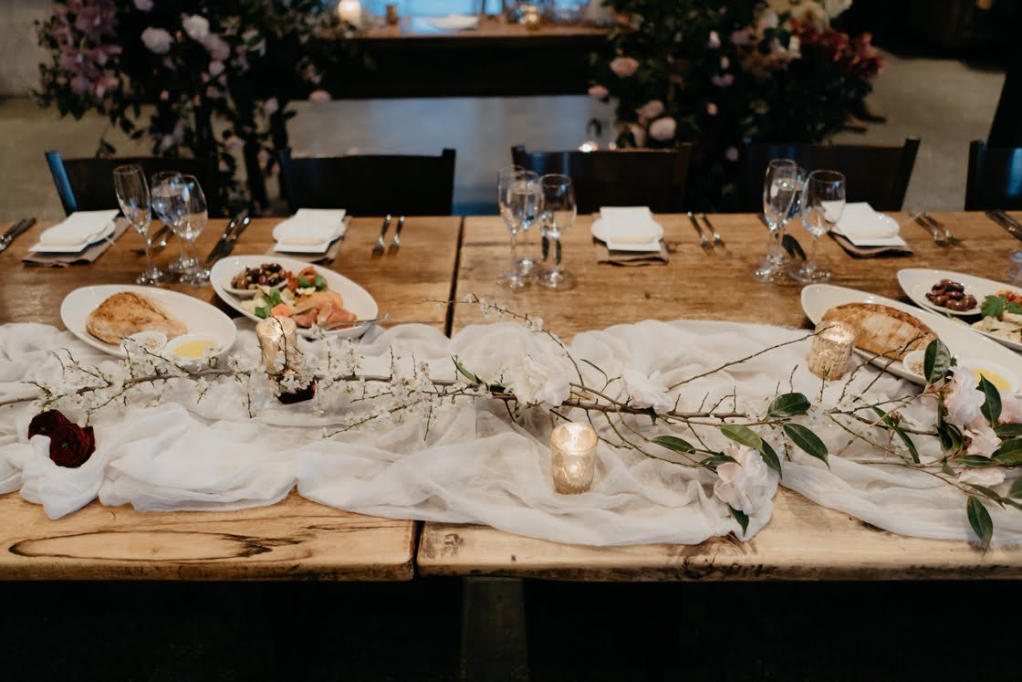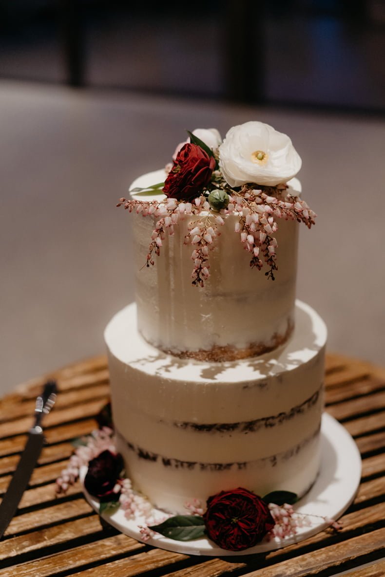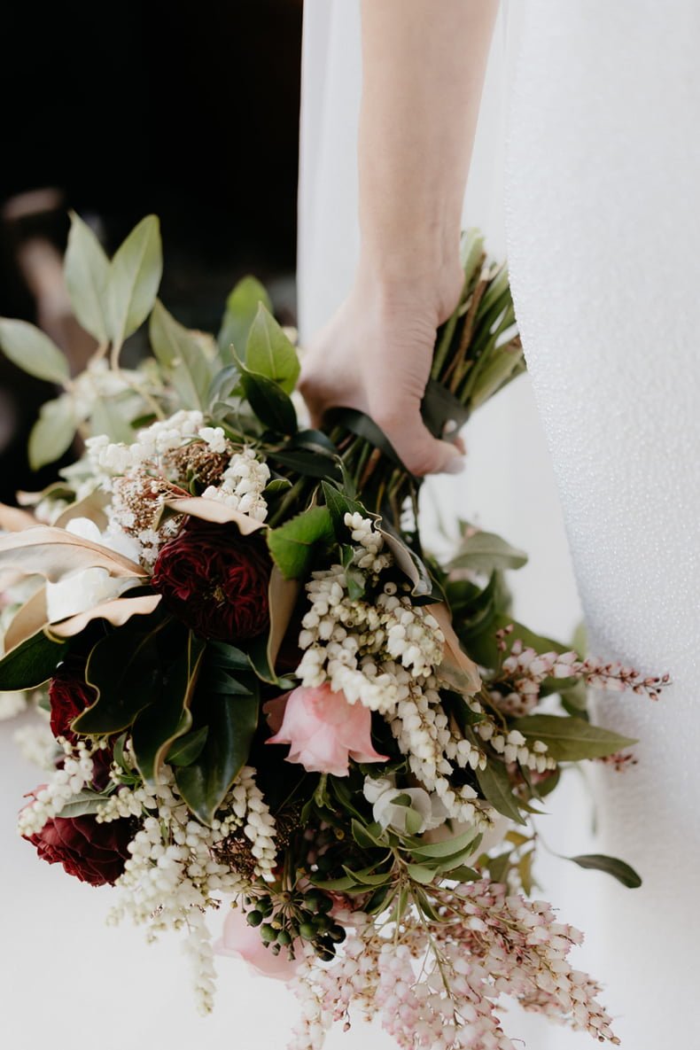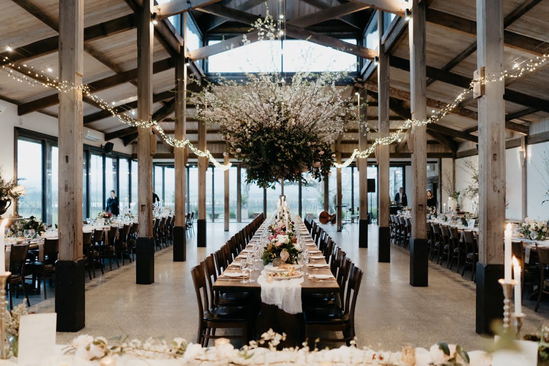 FAVOURITE DETAILS “Our flowers hands down would take the win. When I first met with Rita [Rita Feldmann Flowers] I couldn’t wait to work with her. She is so creative and talented and felt super comfortable that she could bring my mood board vision to life. Our flowers on the day were just incredible and really set the tone for the whole wedding. We had this absolutely stunning hanging centrepiece at our reception, above the middle dining table, with a cherry blossom explosion. We were absolutely blown away by how stunning and romantic she made all the arrangements look when we arrived into the barn.”