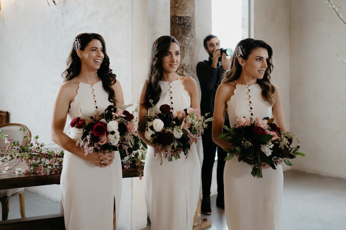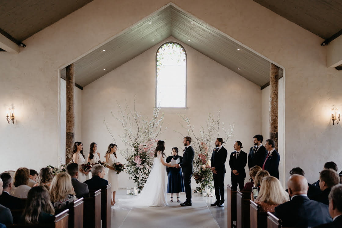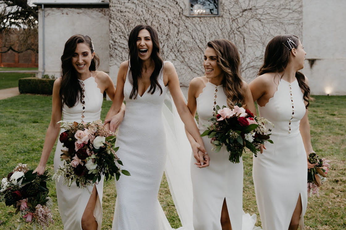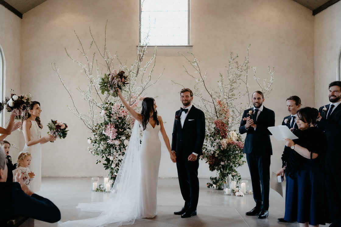 When Natalie and Matt decided it was time to tie the knot they had been together for eight years, which was plenty of time for them to lock down a solid vibe for their big day. Keen for a Springtime soiree, the lovers settled on a delicious white, blush, gold and neutral palette complete with some of the most ethereal floral pillars we have seen to date. Chuck in some bridal wings, groomsmen suits by M.J Bale, tunes by Tobi Tobi and the cutest flower girls on planet earth and the result is one heck of a classic day. The king of elegant snapshots, Jimmy Raper Photography, was on hand to capture details. So, make haste and get scrolling…