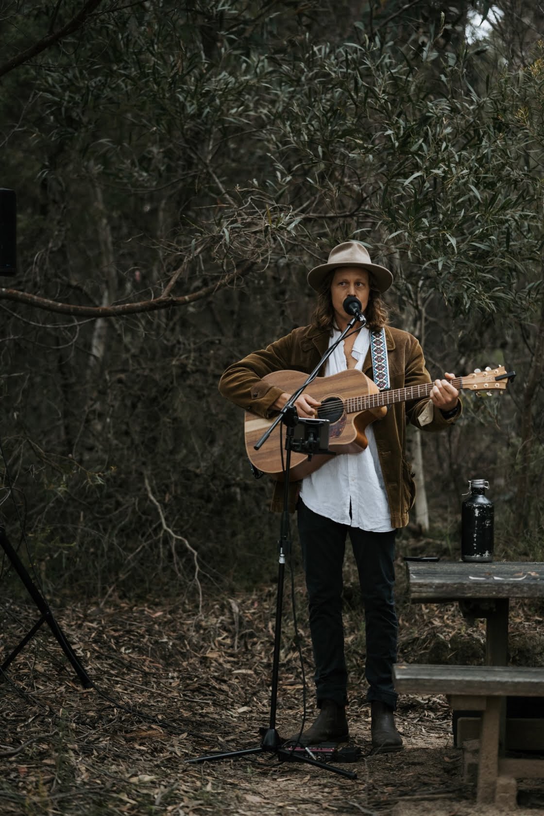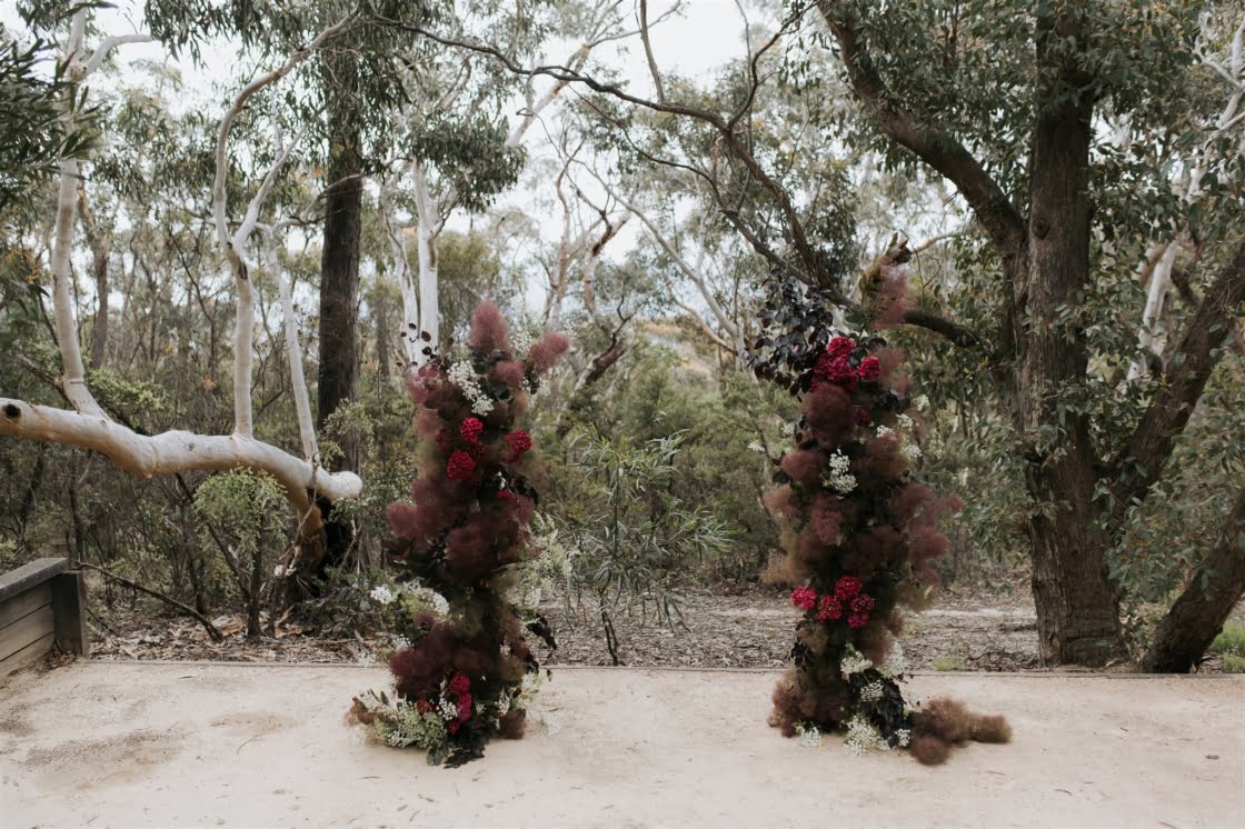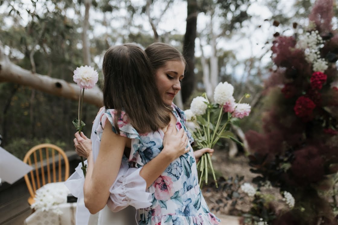 THE VENUE “We love going away to the Blue Mountains for little getaways and hiking trips. We saw a few venues around the area but after availability and communication issues, we stumbled upon Kanimbla View Clifftop Retreat through a Hello May article. After visiting the venue, we knew it was perfect! It could sleep all of us for the weekend, we could have our ceremony and reception outside, and we were right in the middle of nature (self composting toilets and all!). It was the perfect mini holiday for the whole family and reminded us of the campgrounds where we met all those years ago.”