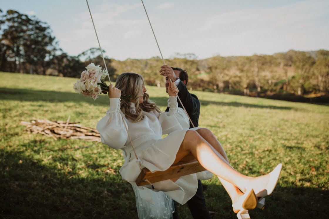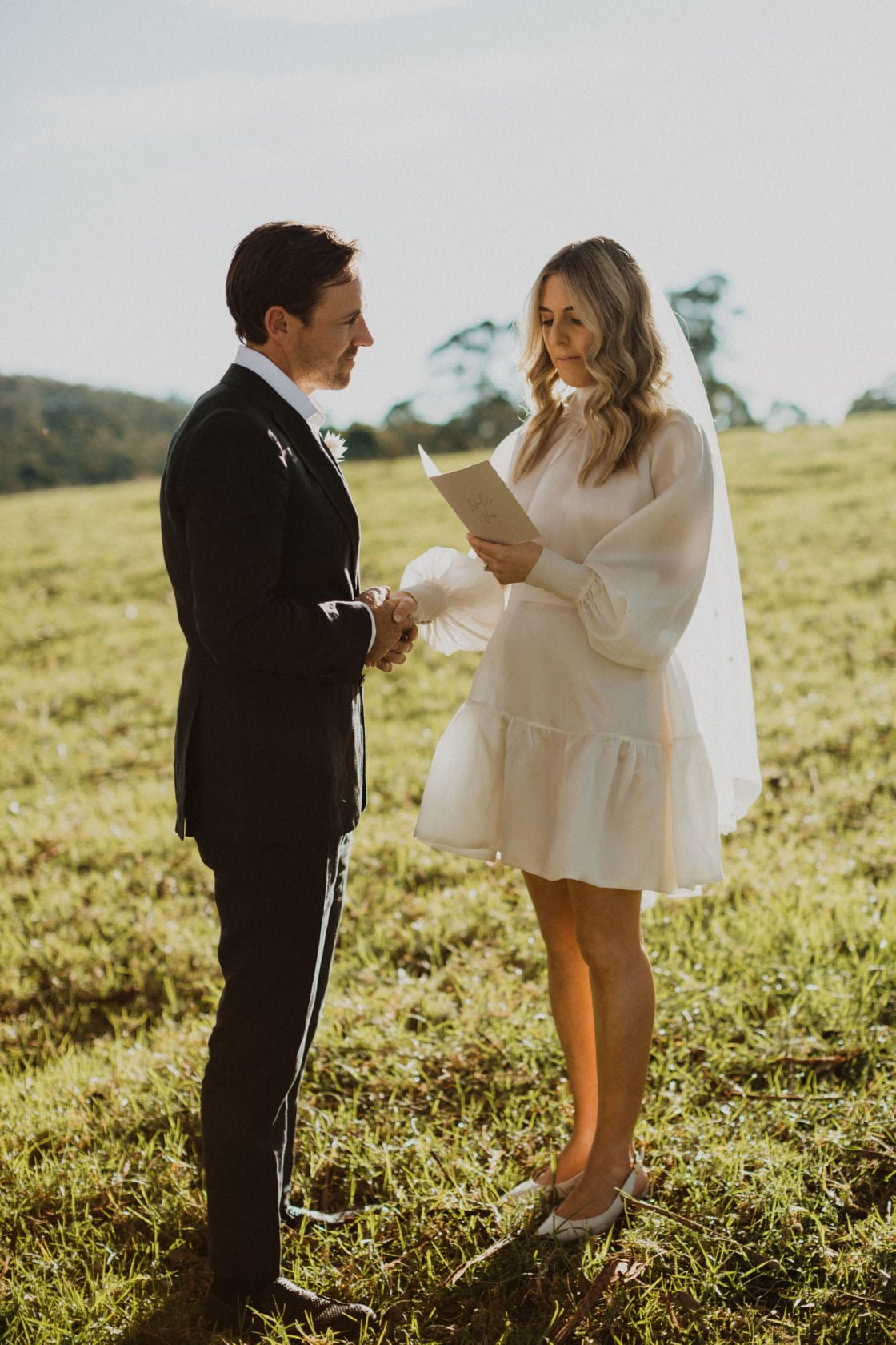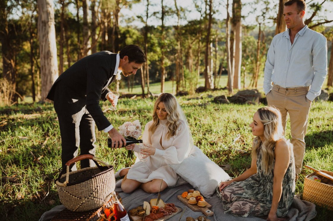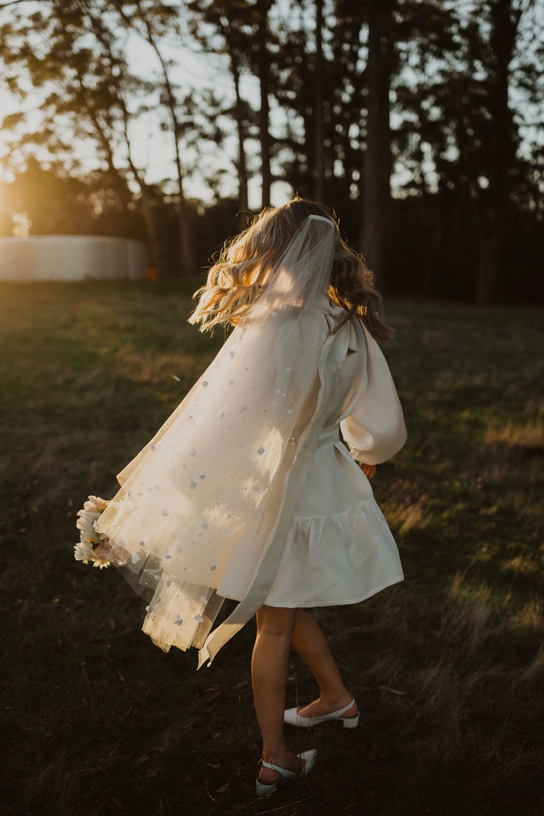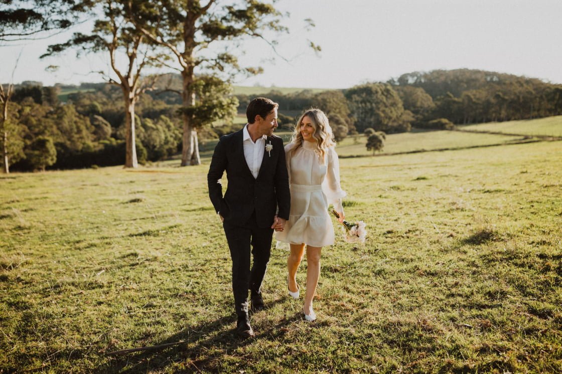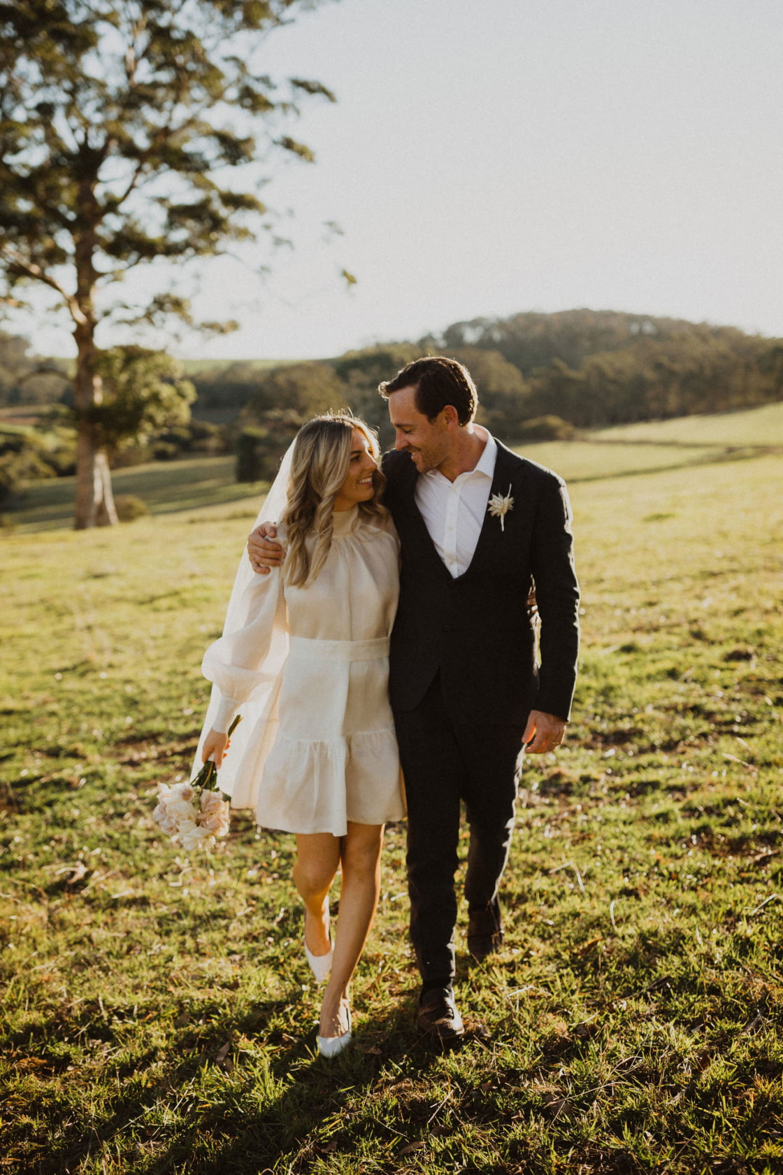 MEMORABLE MOMENT “There were many favourite moments from the day- my sister had organised a video clip of all our family sending us their well wishes as they could not be there because of COVID. My sister [also] walked me down the aisle and it was such a precious moment we will never forget. We also had a beautiful little picnic on the farm after we said the ‘I do’s’ I’m not sure if it gets much more relaxed than that. Doing our first dance in the lounge room of the beautiful cabin we stayed in with the fire on. I have lots of them as the day was honestly a dream for us!”