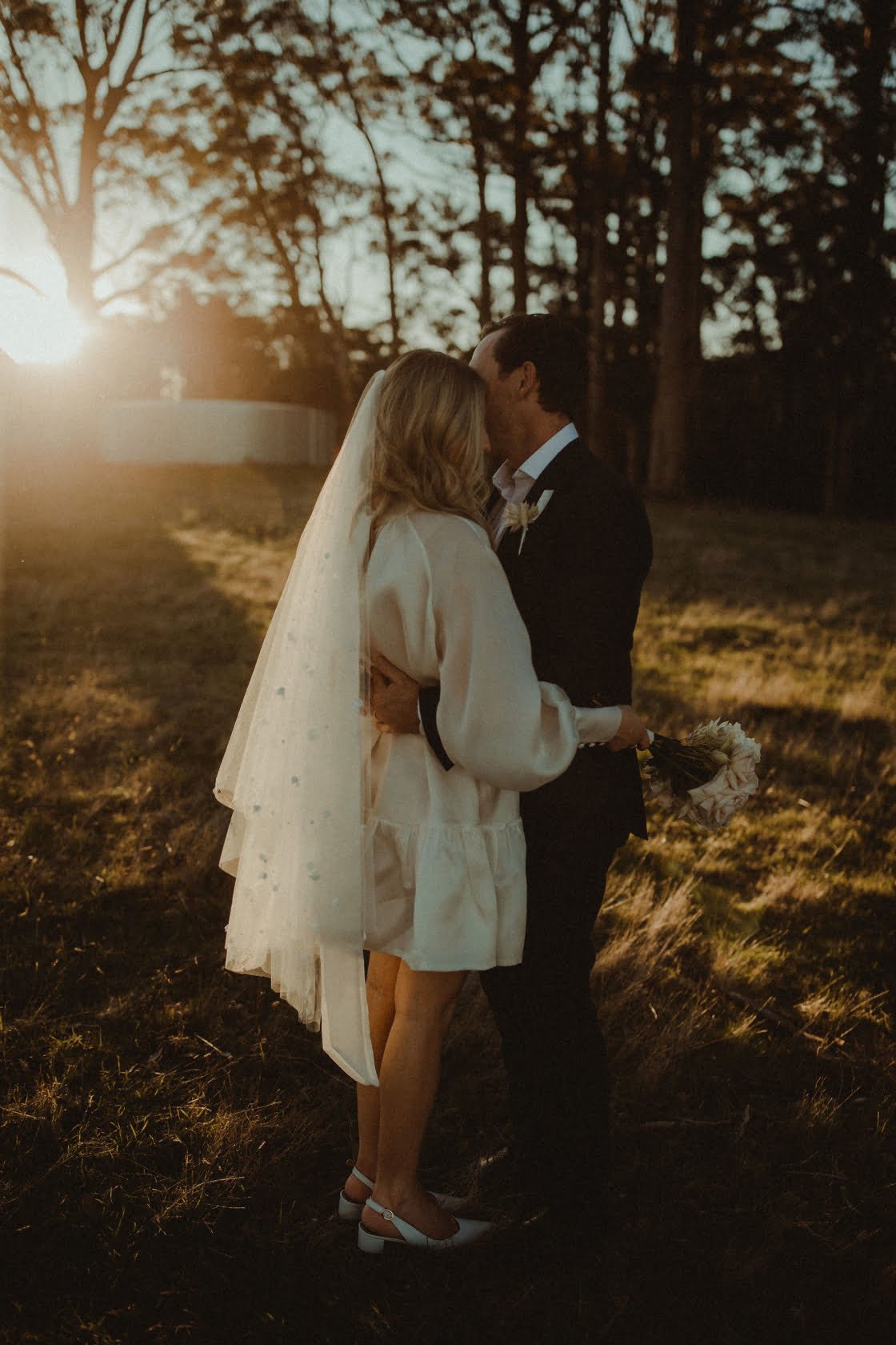 THE DRESS “I had planned to wear a beautiful long silk gown made by Harriette Gordon for our original wedding. We were so close to finishing it and were holding off on final touches as I had just found out about bub. When we decided to go ahead with the elopement, I did not think it would be an option to wear my original dress and I felt that it wasn’t suited to the elopement we had planned. My sister knew that I wasn’t happy with the dresses I had quickly ordered last minute – she decided she would contact Harriette and asked if there was a possibility to wear another dress. I felt so beautiful in it and it really complimented the style of elopement.. plus the little bump! She is a dream to work with and I can not recommend her enough!”