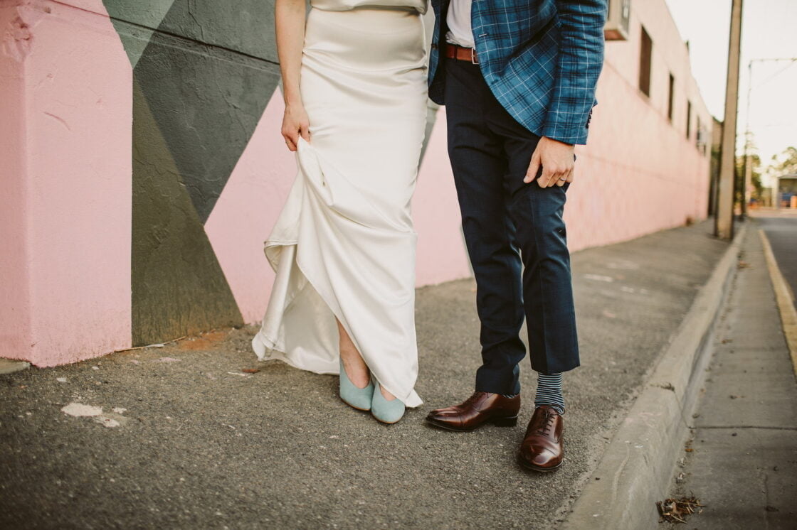 This is a story of a gorgeous Registered Nurse and Geotechnical Engineer (yes, that’s a mouthful!) who have been together for five and a half years. They also share a delightful daughter- who happens to be wearing the cutest little shoes ever- of course we included the pics, guys. Shot by one of our recommended vendors, Kate Pardey Photography at Plant 4 Bowden, their day looked like the perfect little urban escape. Scroll down for all the pretty pics…