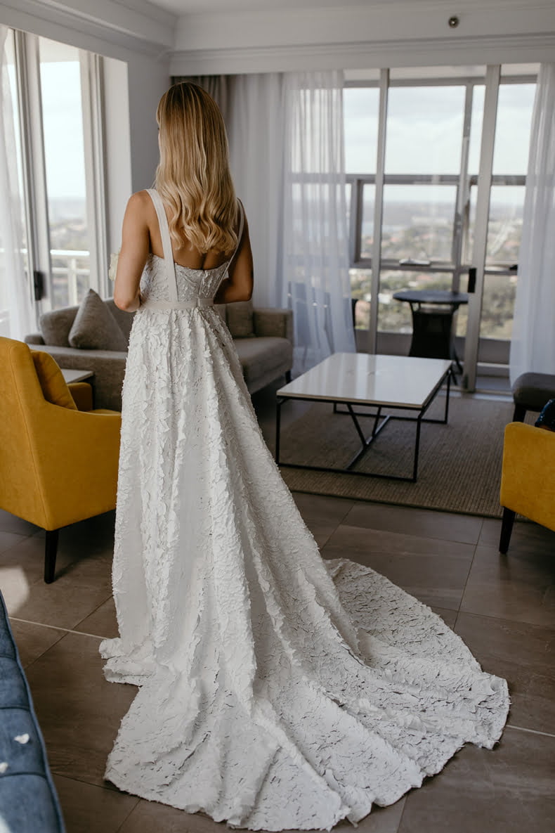 THE DRESS “My dress was by Georgia Young, a Melbourne based designer, that I discovered through the amazing Amy at Love Marie Bridal Boutique in Camden. I had been trying on a few different pieces and came to see Amy to look at her great collection of designers. I was umming and ahhing about a dress I had tried on when Amy actually suggested I come back in a few weeks and try on a sample gown she was getting from Georgia Young. This ended up being the dress I fell in love with – The Carnegie gown. Mum started crying as soon as she saw it, and I thought Max would love it also.”