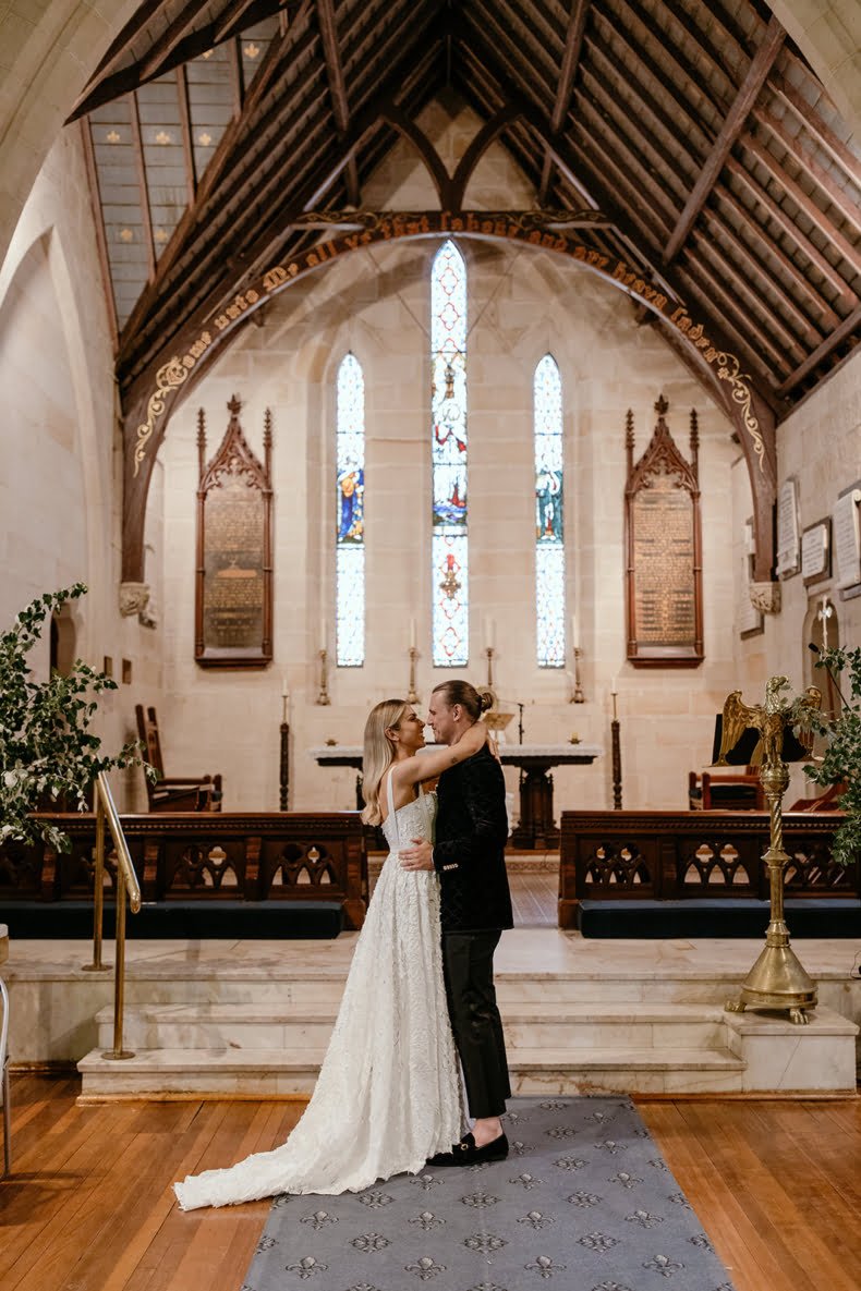 CONTRIBUTING VENDORS Photographer Samantha Heather Photography Cinematographer Ivan Stepanov Stylist & Florist Biophilia Blooms Stationery & Signage Abbey Lane Design via Etsy Ceremony Venue St Mary’s Church, Waverley Reception Venue & Catering Wisteria Room, Centennial Homestead Cake Cake Atelier Entertainment Baker Boys Band Rings Mendel & Rose Transport HF Wedding Car Hire BRIDE Dress Georgia Young Couture via Love Marie Bridal Boutique Shoes Alias Mae Earrings Kirstin Ash Hair Natalie Newton Makeup Leah Baines GROOM Suit, Bow Tie, Shoes & Cufflinks Gucci Barber Tooth & Nail