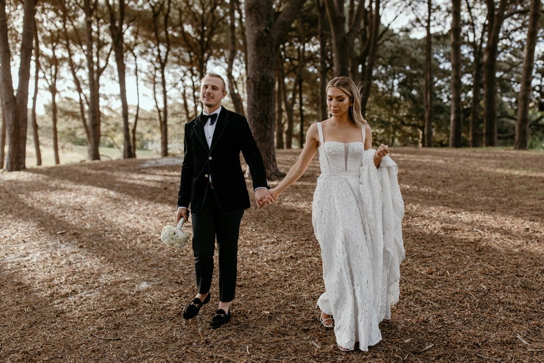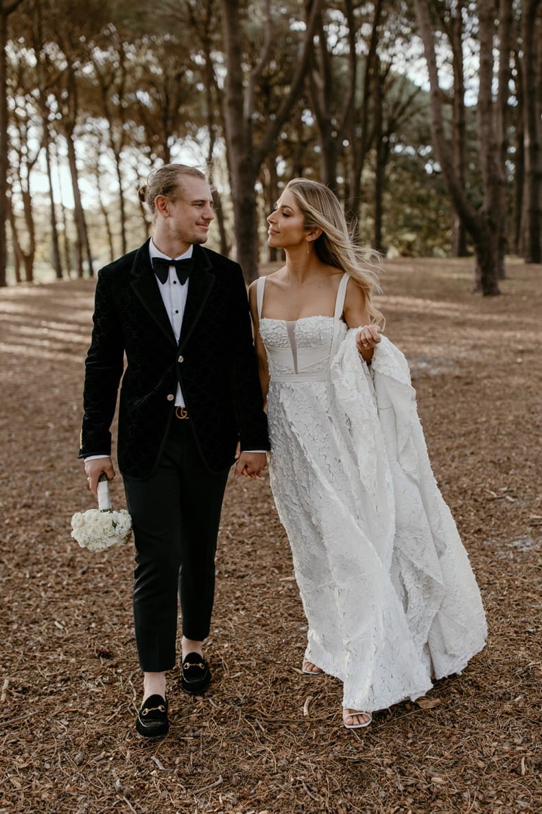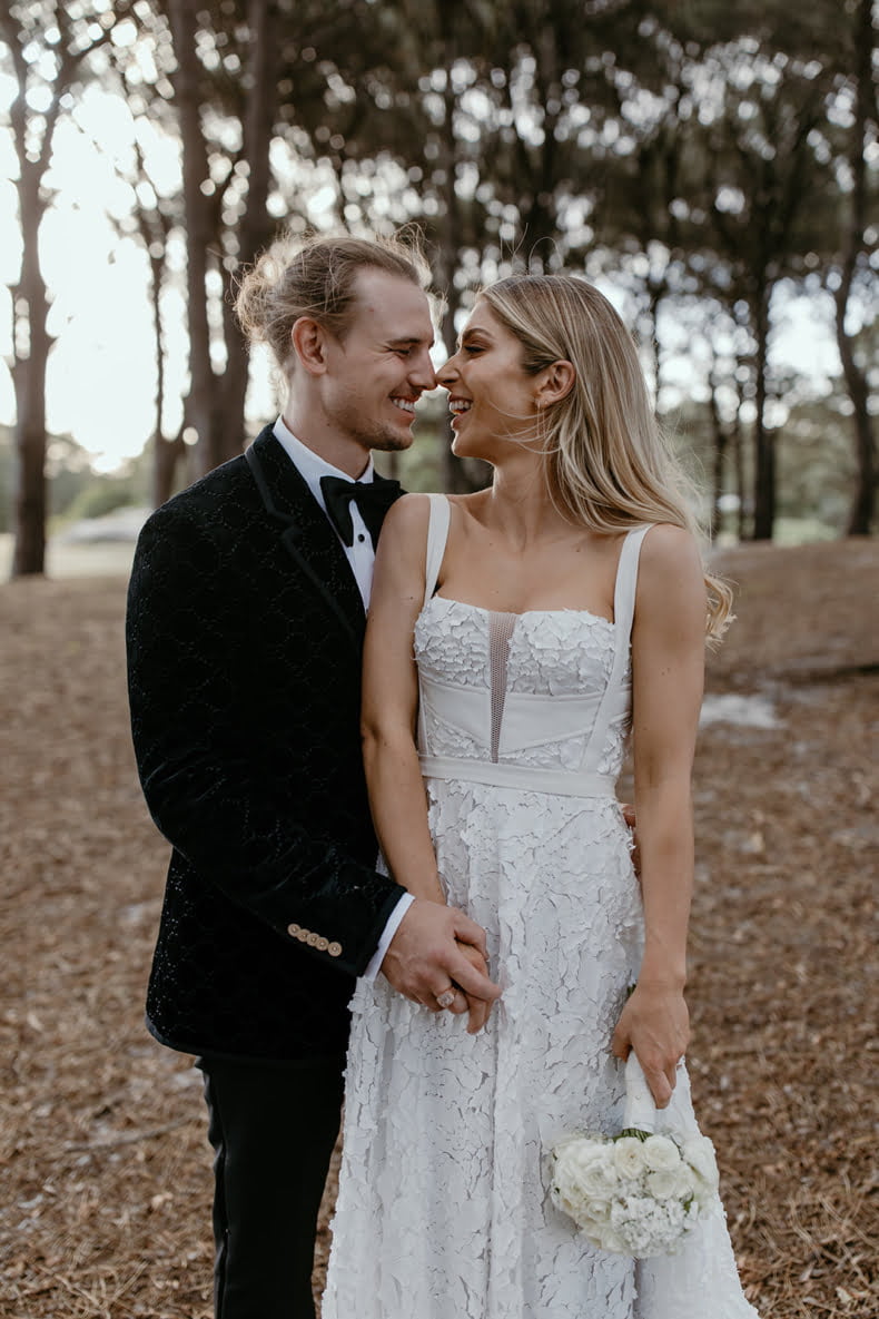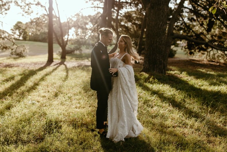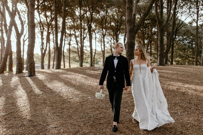 We can all learn a thing or two from this divine duo, that’s for sure! Nicola and Max did the hard yards when it came to researching prospective vendors, choosing to support small biz, local makers and sustainable practices. Particularly stoked with their florist and stylist Biophilia Blooms, who only sources seasonal flowers, the couple also lucked out with Baker Boys Band and Samantha Heather Photography. To top it off, Nicole nabbed her chic Georgia Young Couture gown from one of our fave bridal boutiques, Love Marie Bridal Boutique. So, best tune in because these guys did their research. Scroll down for the goods…