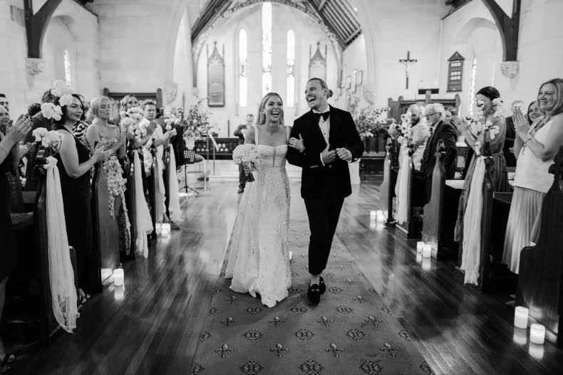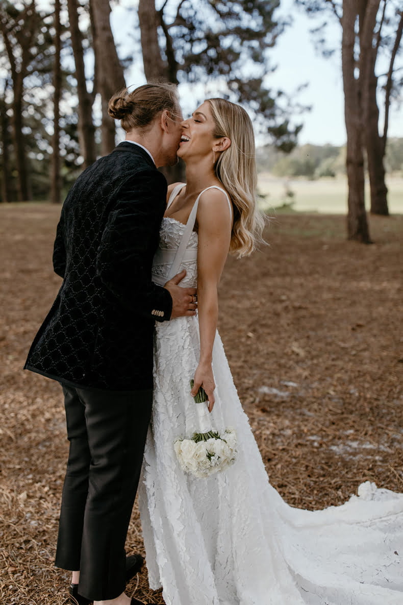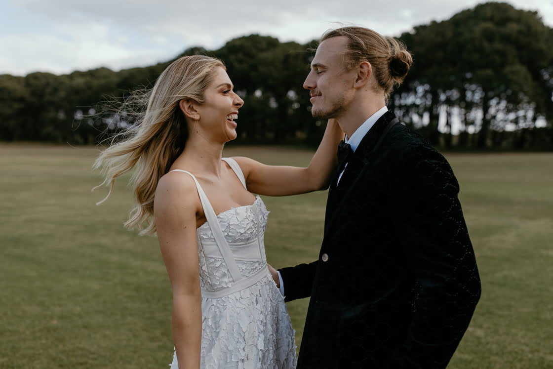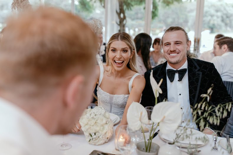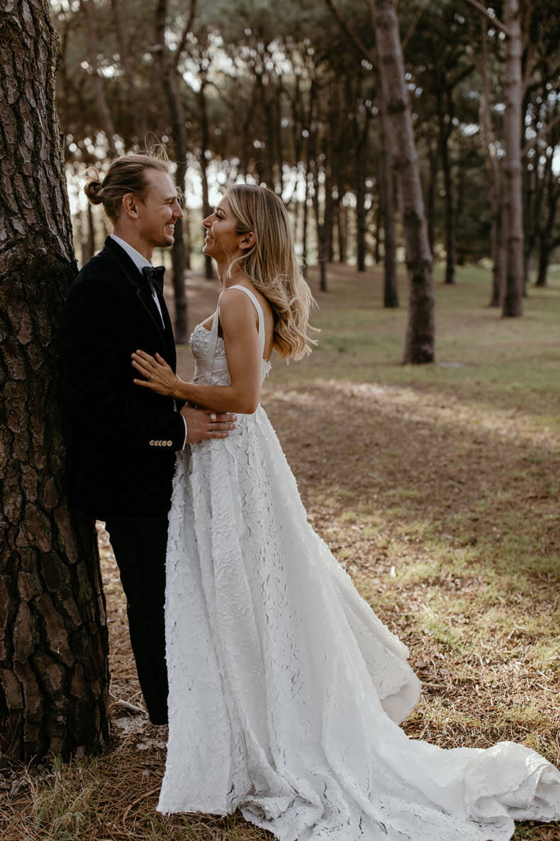 We can all learn a thing or two from this divine duo, that’s for sure! Nicola and Max did the hard yards when it came to researching prospective vendors, choosing to support small biz, local makers and sustainable practices. Particularly stoked with their florist and stylist Biophilia Blooms, who only sources seasonal flowers, the couple also lucked out with Baker Boys Band and Samantha Heather Photography. To top it off, Nicole nabbed her chic Georgia Young Couture gown from one of our fave bridal boutiques, Love Marie Bridal Boutique. So, best tune in because these guys did their research. Scroll down for the goods…