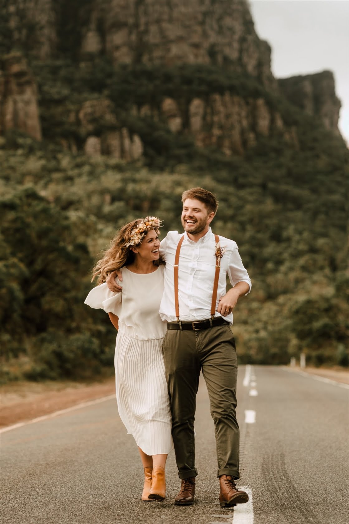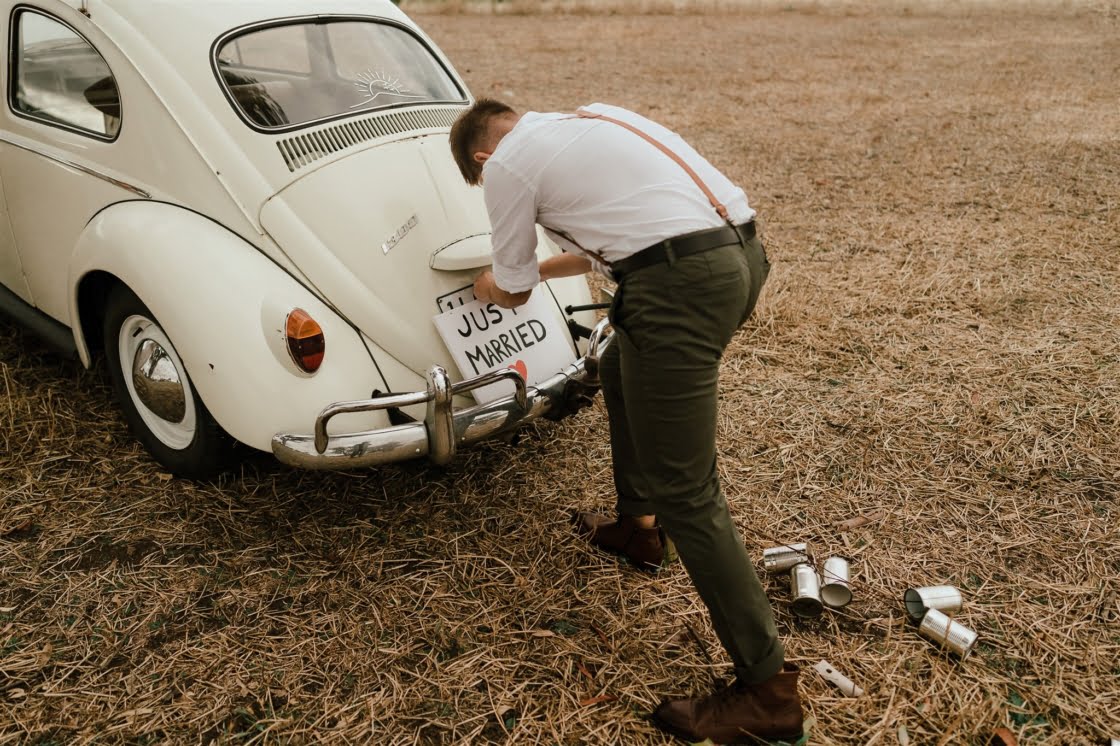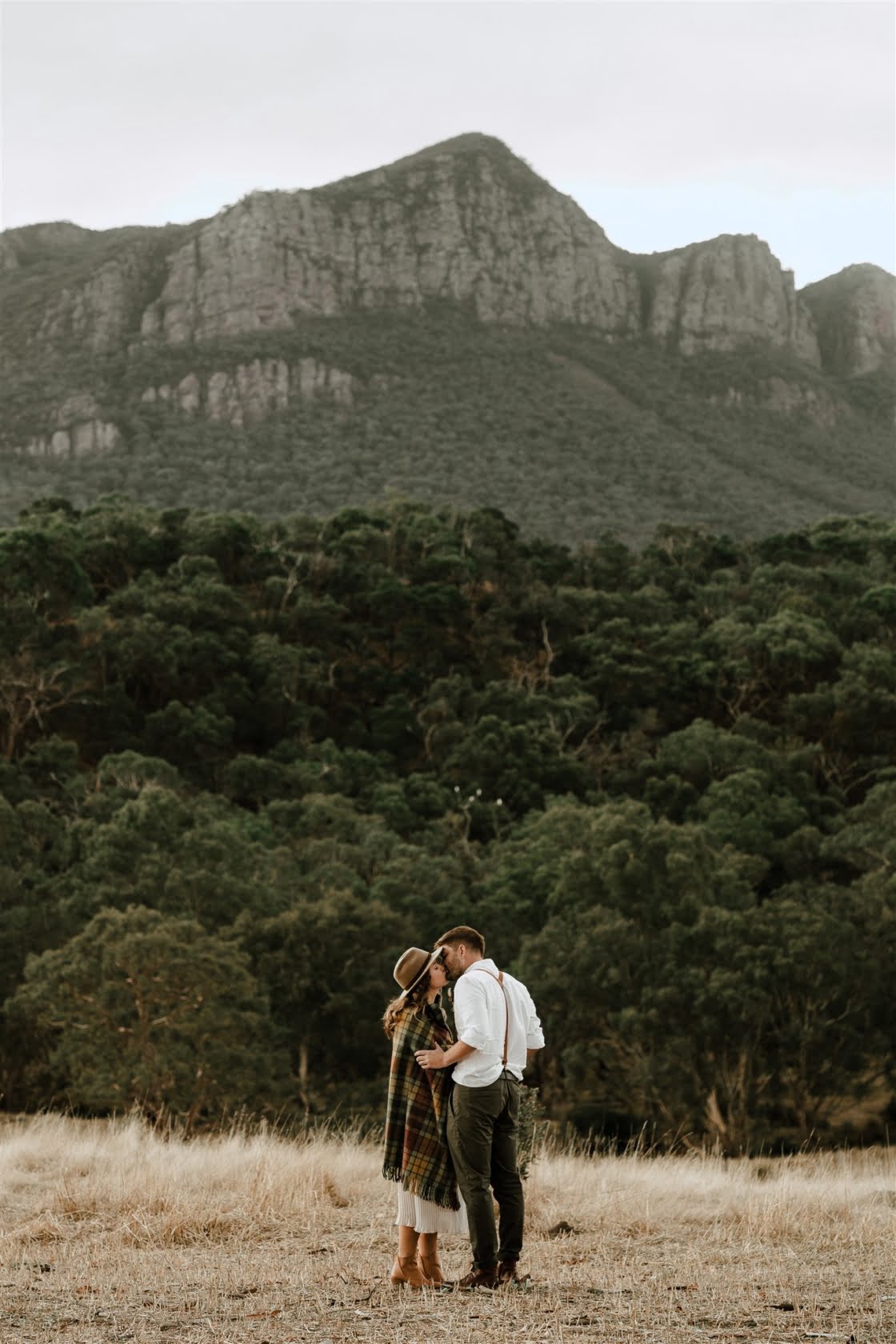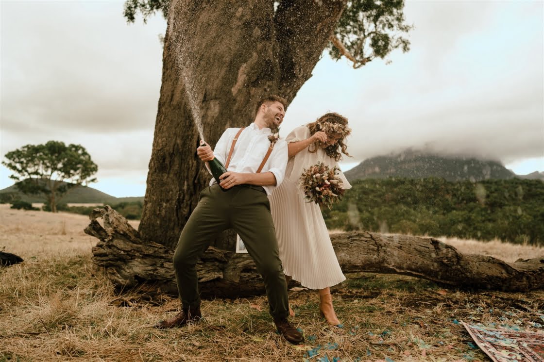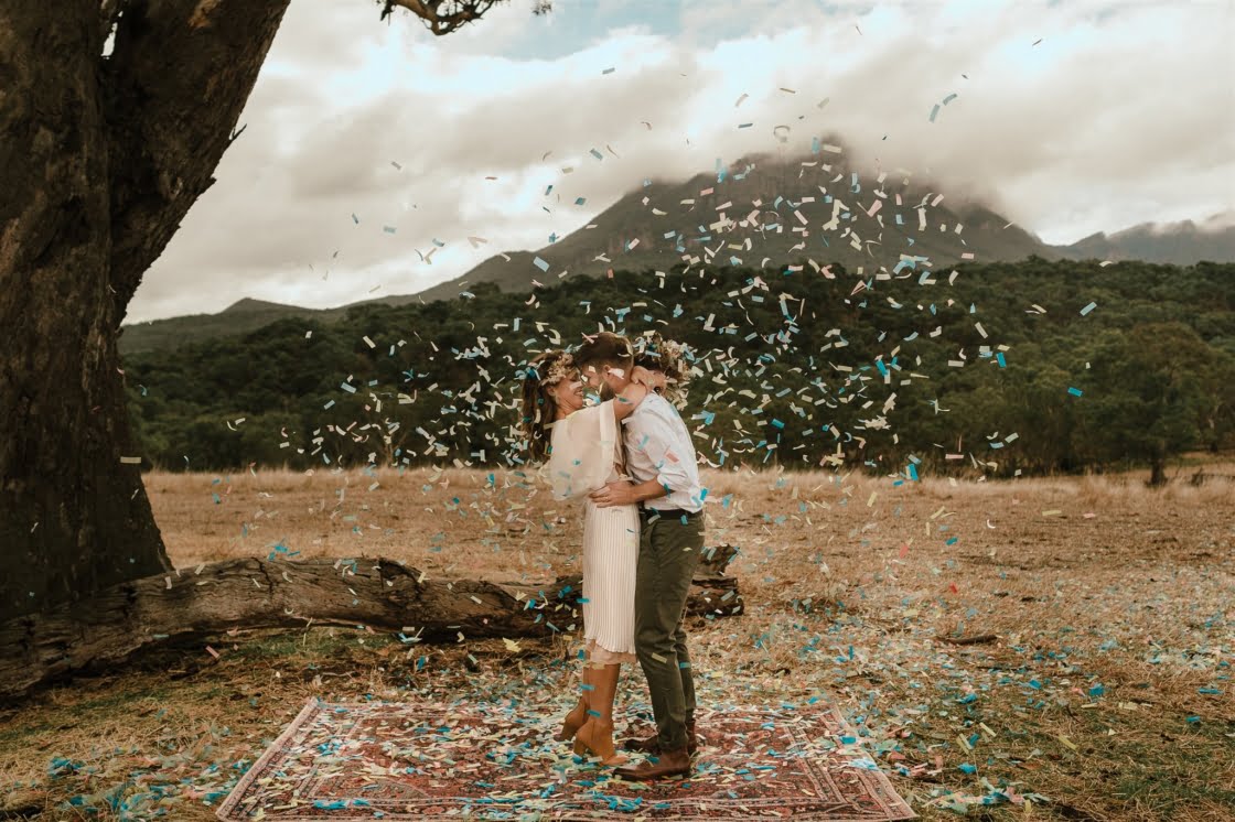 “Eddie made our ‘Just Married’ sign himself with our empty chickpea cans all cleaned out for the occasion,” says the bride. “What a sustainable, handsome man!” Just one of the reasons we love this couple who eloped in this Grampians National Park wedding. “Our boots were full of dirt and confetti by the end of the night – exactly as we wanted.” Jackson Grant Weddings and Moment Seeker Films documented the day and boy are we glad! Scroll down for all the beautiful details and pics galore…