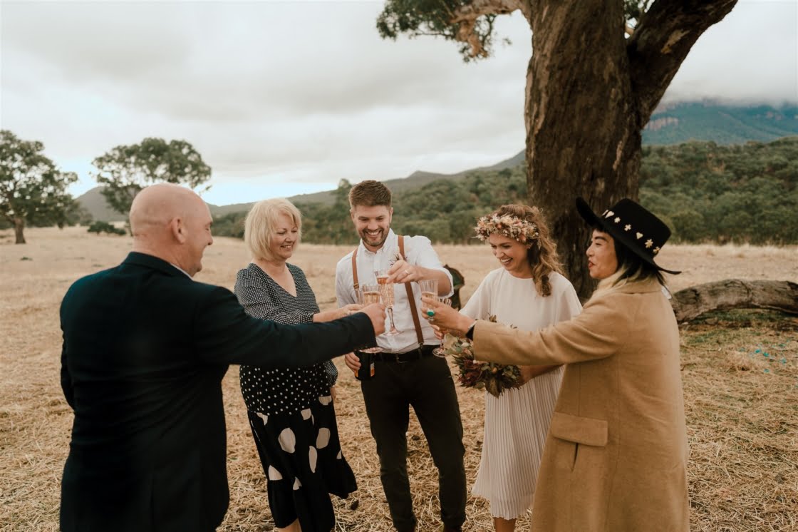 CONTRIBUTING VENDORS Photographer Jackson Grant Weddings Cinematographer Moment Seeker Films Florist Naomi Rose Floral Design Ceremony & Reception Private Property Catering Premium Picnics (Set-Up) & Simson and Co. (Food) Celebrant Celebrant Jam Rings Deliqa Gems (Sasha) Transport Hire a Kombi THE BRIDE Bridal Gown Vintage Hair & Makeup AtHairXShell HMUA THE GROOM Shirt Zara Pants French Connection