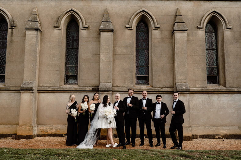 CONTRIBUTING VENDORS Photographer Ashleigh Haase Florist Prunella Ceremony & reception venue Churchill Catering & cake Spoonful Stationery & signage State of Elliot Entertainment One More Song DJs Celebrant Love Leah Guest Transport Organs Coaches Candles Hall Of Flames THE BRIDE Bridal gown designer Harriette Gordon Bridal Boutique Bluebell Bridal Veil Harriette Gordon Bridesmaids getting ready tees Kyha Studios Shoes Magda Butrym Hair & Makeup Megan Harrison Fragrance Thé Noir 29 by Le Labo Bridesmaid dresses Bec + Bridge Bridesmaid shoes Tony Bianco THE GROOM Suit, Jacket, Shirt, Pants & Bow tie InStitchu Shoes Aquila Groomsmen suits InStitchu