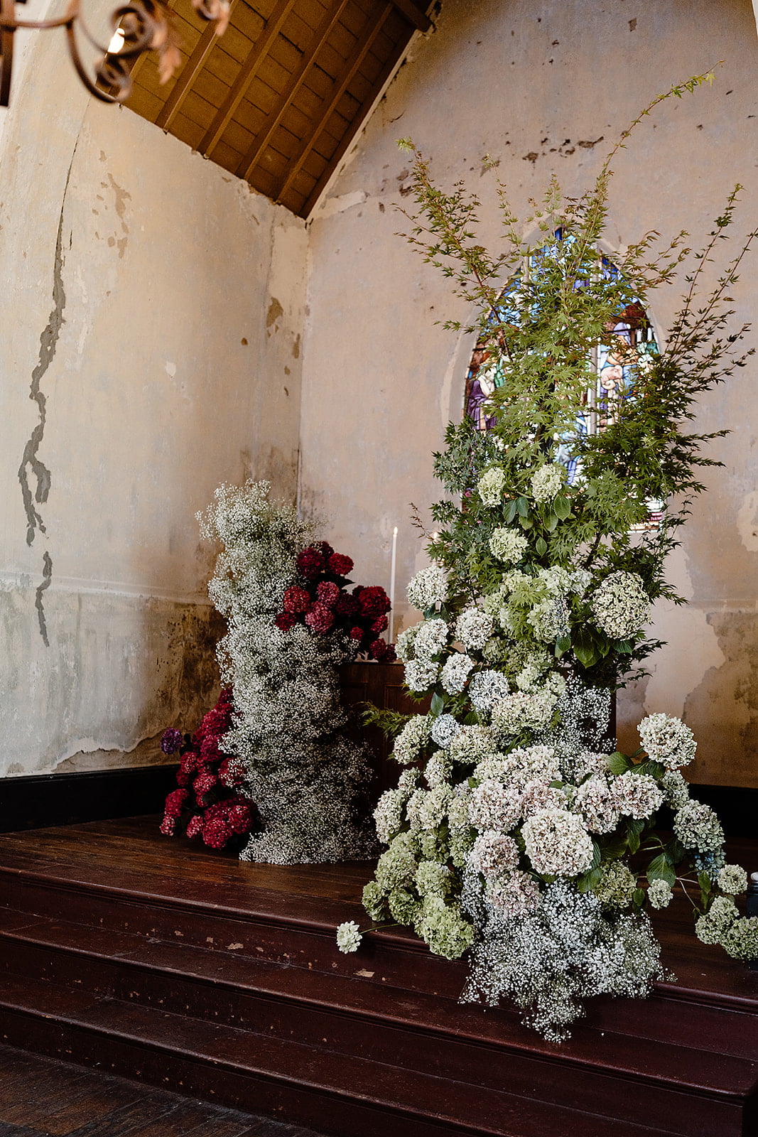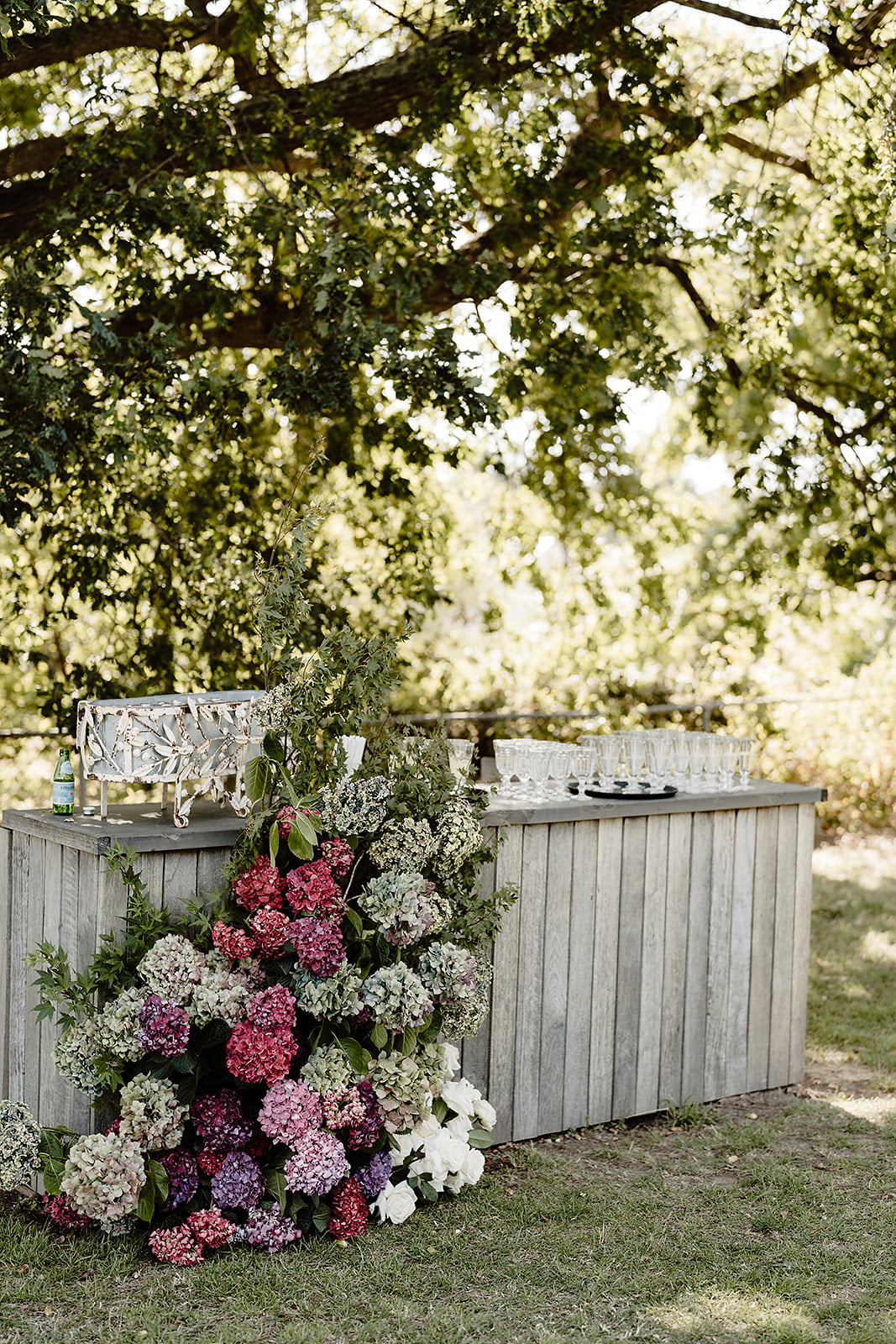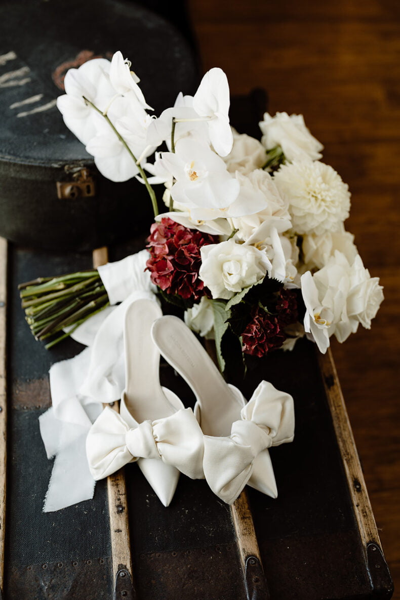 FAVE DEETS “The flowers are still one of my most favorite elements from the day. We gave Prunella the brief of a washing machine overflowing with soap suds. We wanted it to look like the flowers and maple grew in the space over time and added to how beautiful the space is rather than distracting from it. I even went as far as to create a digital render of the venue, with the flowers and Caris and her team recreated it exactly as we had imagined – a dream come true!”