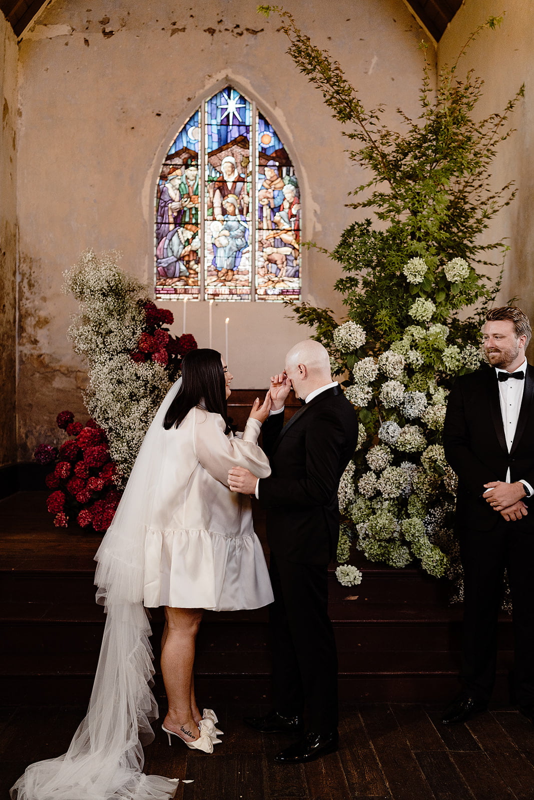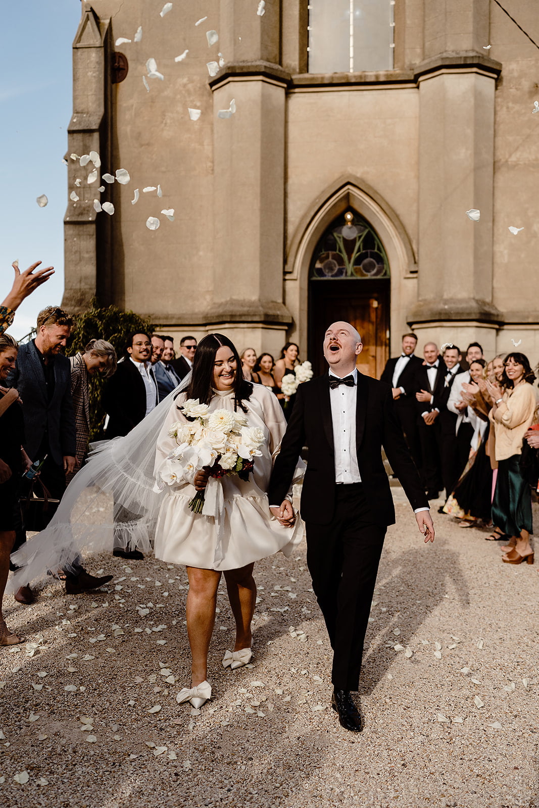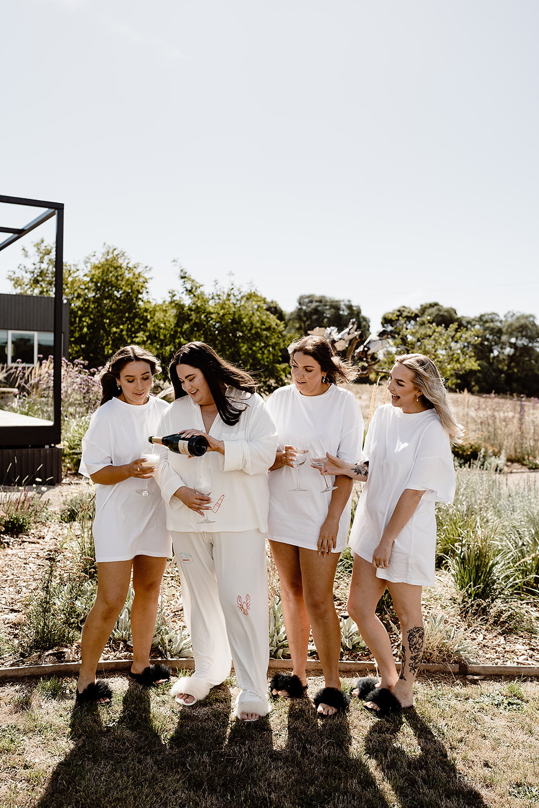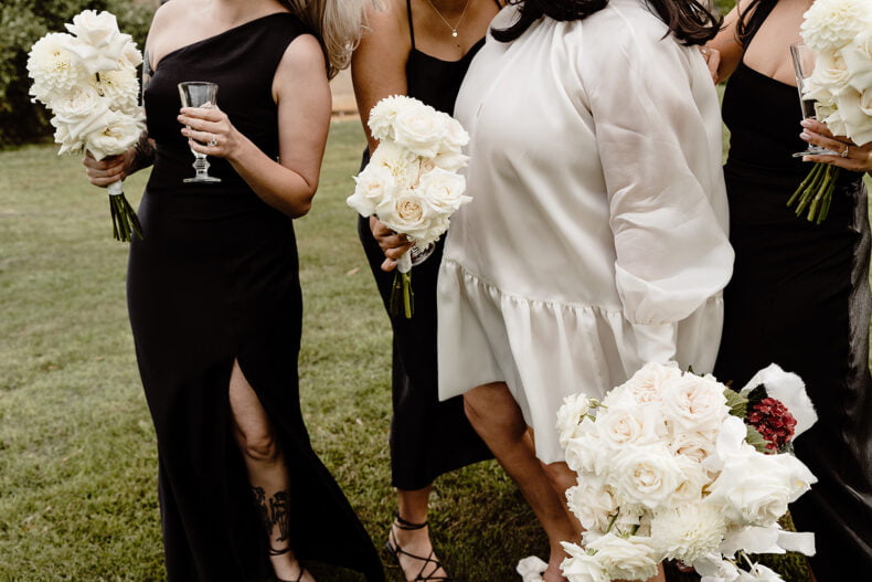 CONTRIBUTING VENDORS Photographer Ashleigh Haase Florist Prunella Ceremony & reception venue Churchill Catering & cake Spoonful Stationery & signage State of Elliot Entertainment One More Song DJs Celebrant Love Leah Guest Transport Organs Coaches Candles Hall Of Flames THE BRIDE Bridal gown designer Harriette Gordon Bridal Boutique Bluebell Bridal Veil Harriette Gordon Bridesmaids getting ready tees Kyha Studios Shoes Magda Butrym Hair & Makeup Megan Harrison Fragrance Thé Noir 29 by Le Labo Bridesmaid dresses Bec + Bridge Bridesmaid shoes Tony Bianco THE GROOM Suit, Jacket, Shirt, Pants & Bow tie InStitchu Shoes Aquila Groomsmen suits InStitchu