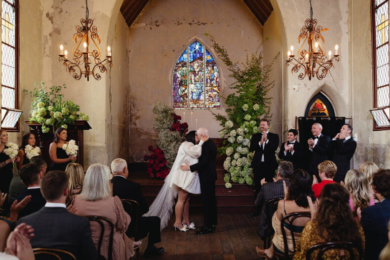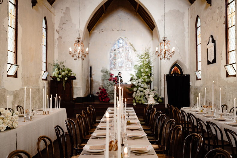 Rach, an interior designer, spends her days perusing beautiful details so when it came to marrying her partner of seven years, Mitch, it was always going to be an impressive affair. The pair chose a venue in Taradale, just over an hour outside Melbourne, to host their 50 loved ones. “Churchill was the very first wedding venue we bookmarked in our very first Hello May magazine purchased a week after our engagement,” the couple share (cute!). “It really took our breath away, how could it not?” They also assembled a rockstar team of vendors to make the magic happen – our gal Ashleigh Haase took some phenom photos, while One More Song DJs had guests grooving all night. “It was impossible for anyone to leave the dancefloor,” Rach laughs. Sounds like a helluva time… scroll down to see for yourself.