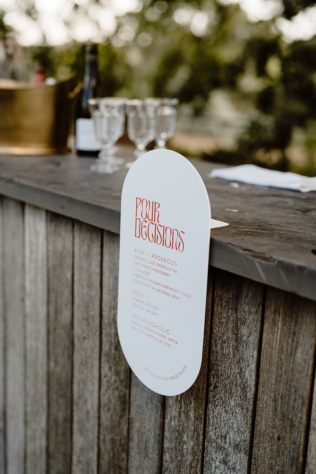STANDOUT VENDORS “We really took our time researching all of our vendors, and because we booked everyone two years out (or more in some cases!) we didn’t have to make any sacrifices due to availability. We assembled our dream team. Ash our photographer is a bonafide legend behind the camera, and we get to treasure our photos forever. Our celebrant Leah delivered the most loving and simultaneously hilarious ceremony – we all laughed and cried through the whole thing. And our DJ Eddy made it impossible for anyone to leave the dancefloor.”