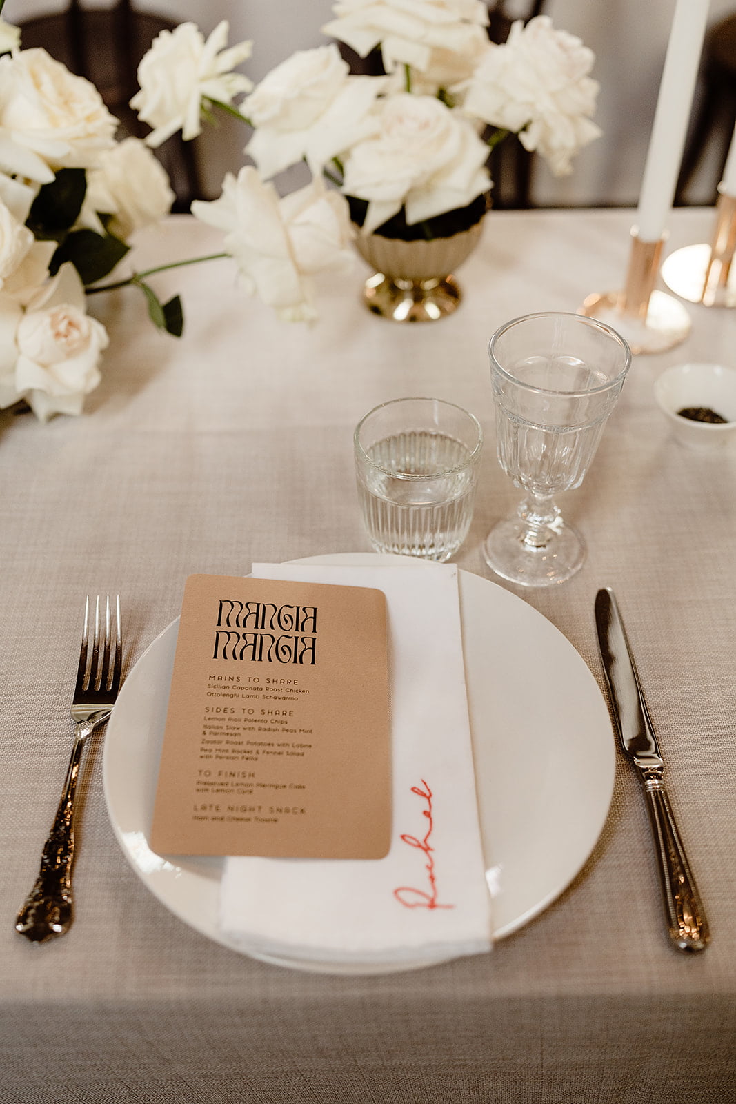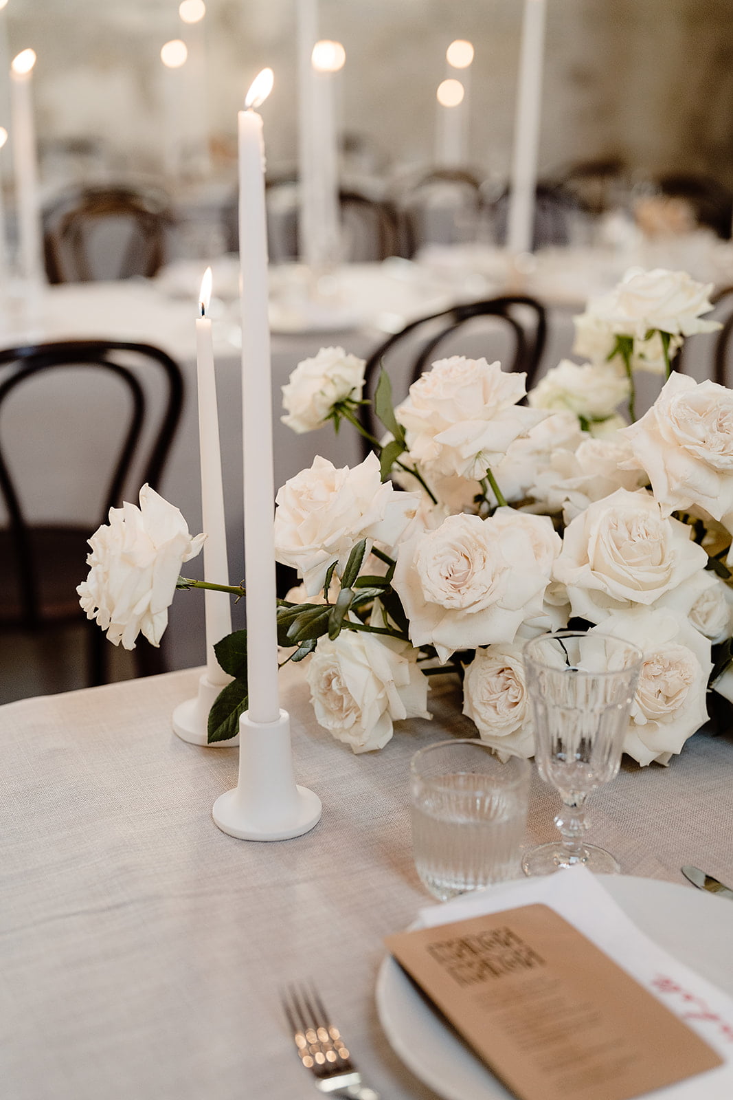 THE INSPO “As an interior designer my day to day revolves around being hyper-focused on all of the big and small details in a space. For our wedding we wanted the complete opposite – a space that we could walk into where the bare bones were so perfect we could turn up on the day with no flowers or styling and it would be breathtaking in its rawest form… that is Churchill. We chose four images we loved and anchored every other selection back to these original images. This really helped us stay on course and not lose focus. Our overall theme centered around a lot of neutrals, texture and a playful but refined use of electric red.”