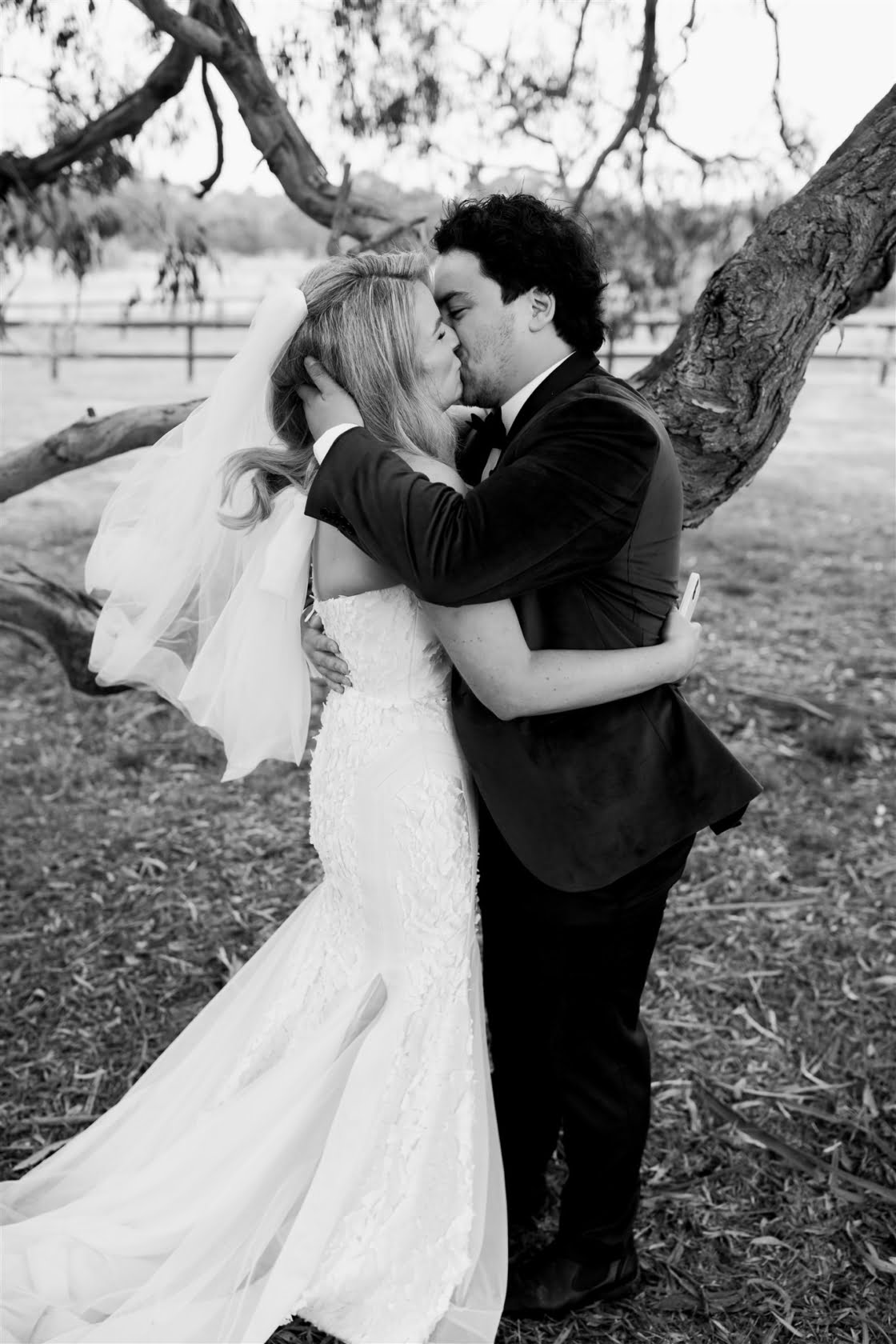 Ofc, she said yes, and as it turned out, lockdowns forcing a change of date were a blessing in disguise for this pair. “It actually allowed us to book awesome vendors (Miss Trixie and Caravan Sounds) that were unavailable on our initial date,” they say. And speaking of awesome vendors, these folks really did lock down some of the best. Be Here Be Now Photos & Films took the incredible photos, Gather Round Events Co. prettied the place up (we’re talking festoon lighting, bench seeing and that phenom teepee), Georgia Young Couture took care of the heavenly dress, and Gibson Clothing got Nathan looking dapper as heck. What a team!