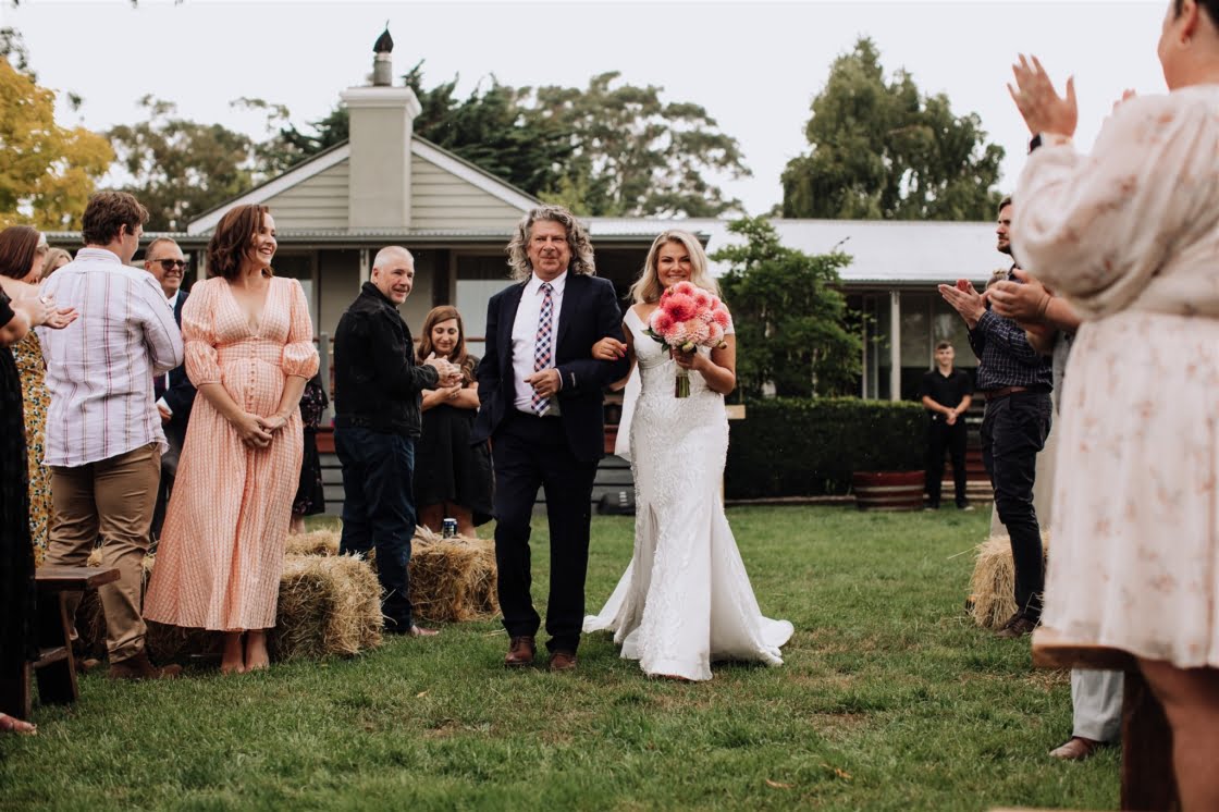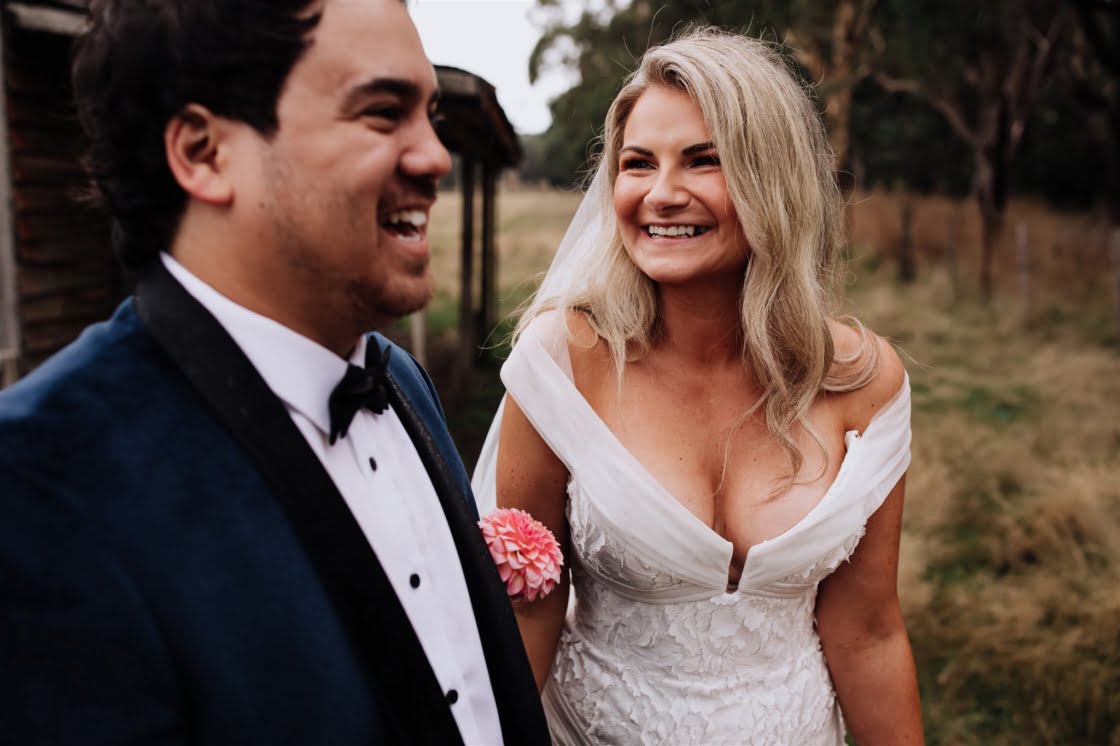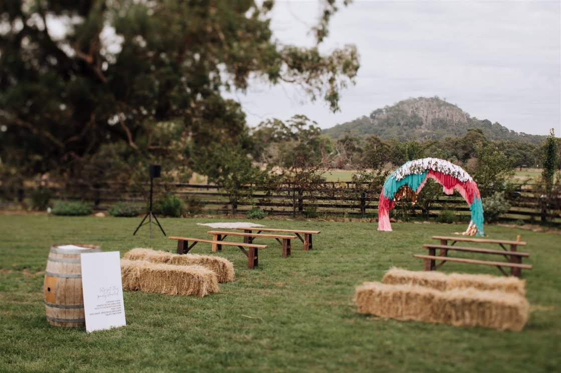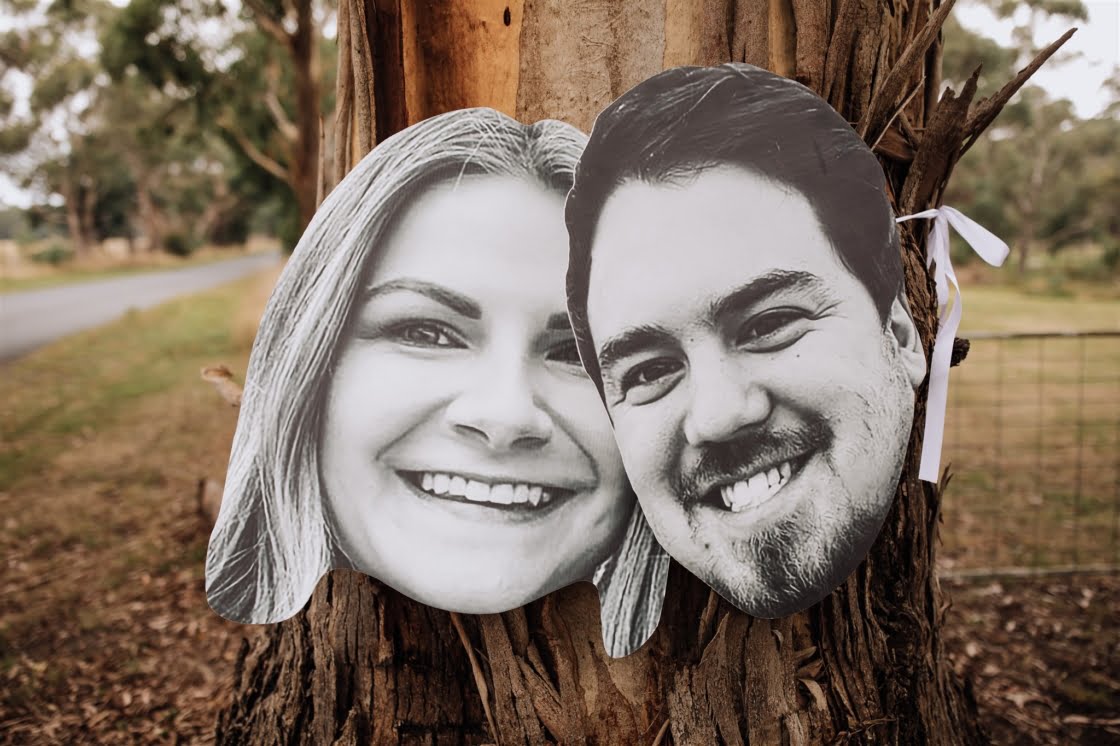 FAVE DETAILS “The giant cut-outs of our heads to let guests know they were at the correct venue! Our beer selection – one of the main reasons we wanted to have our day at a private property was so we could have the beers we liked without the obligation from a venue. We both love boutique beers and enjoy visiting breweries, so it was another way we implemented our interests and made our day our own. And when we go out for beers, we like to pair it with a good pizza, and Happy Camper Pizza were just amazing to deal with. Also, we couldn’t possibly have gotten married without our ‘baby’ (dog!) Arlowe there as well as my (Rachael’s) family dog, Ted. Very important ‘people’ in our lives.”