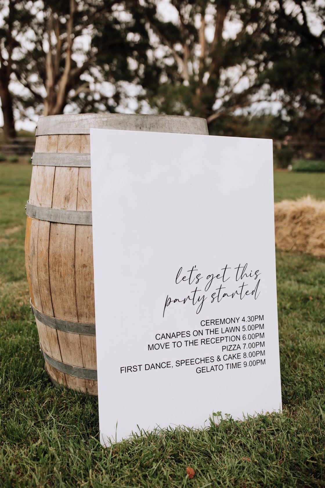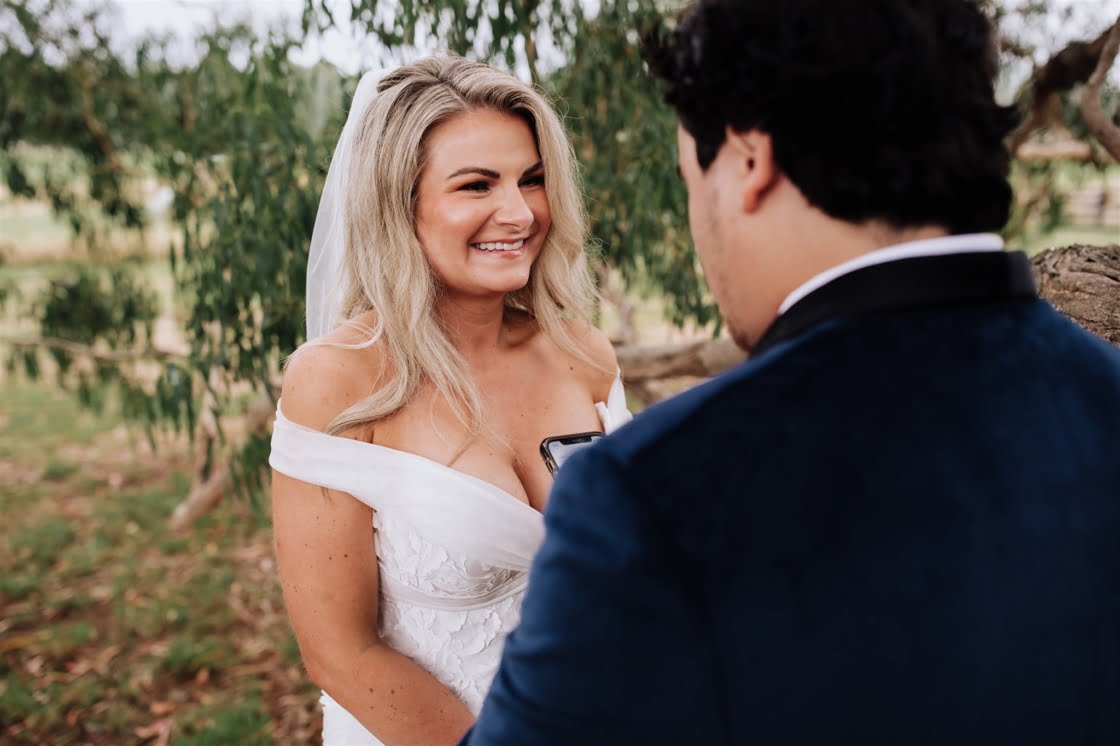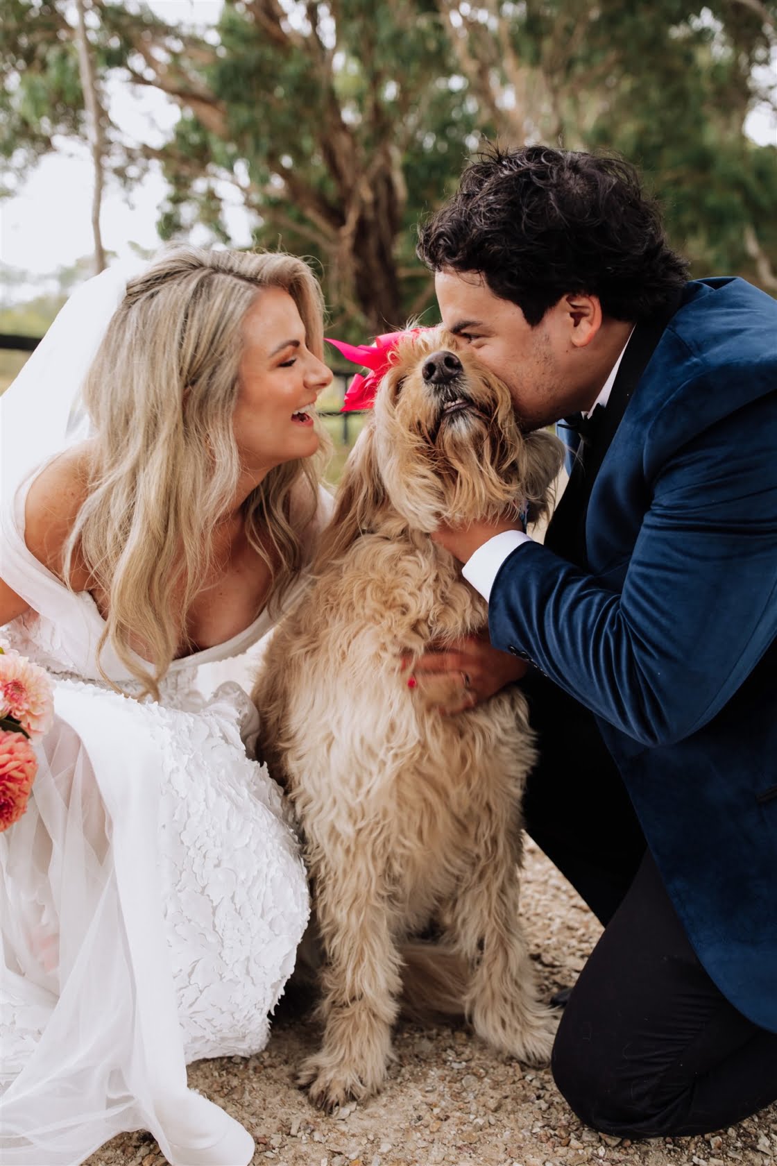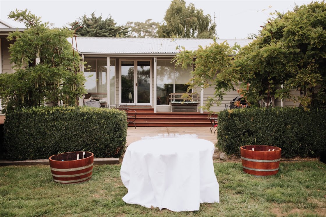 FAVE DETAILS “The giant cut-outs of our heads to let guests know they were at the correct venue! Our beer selection – one of the main reasons we wanted to have our day at a private property was so we could have the beers we liked without the obligation from a venue. We both love boutique beers and enjoy visiting breweries, so it was another way we implemented our interests and made our day our own. And when we go out for beers, we like to pair it with a good pizza, and Happy Camper Pizza were just amazing to deal with. Also, we couldn’t possibly have gotten married without our ‘baby’ (dog!) Arlowe there as well as my (Rachael’s) family dog, Ted. Very important ‘people’ in our lives.”