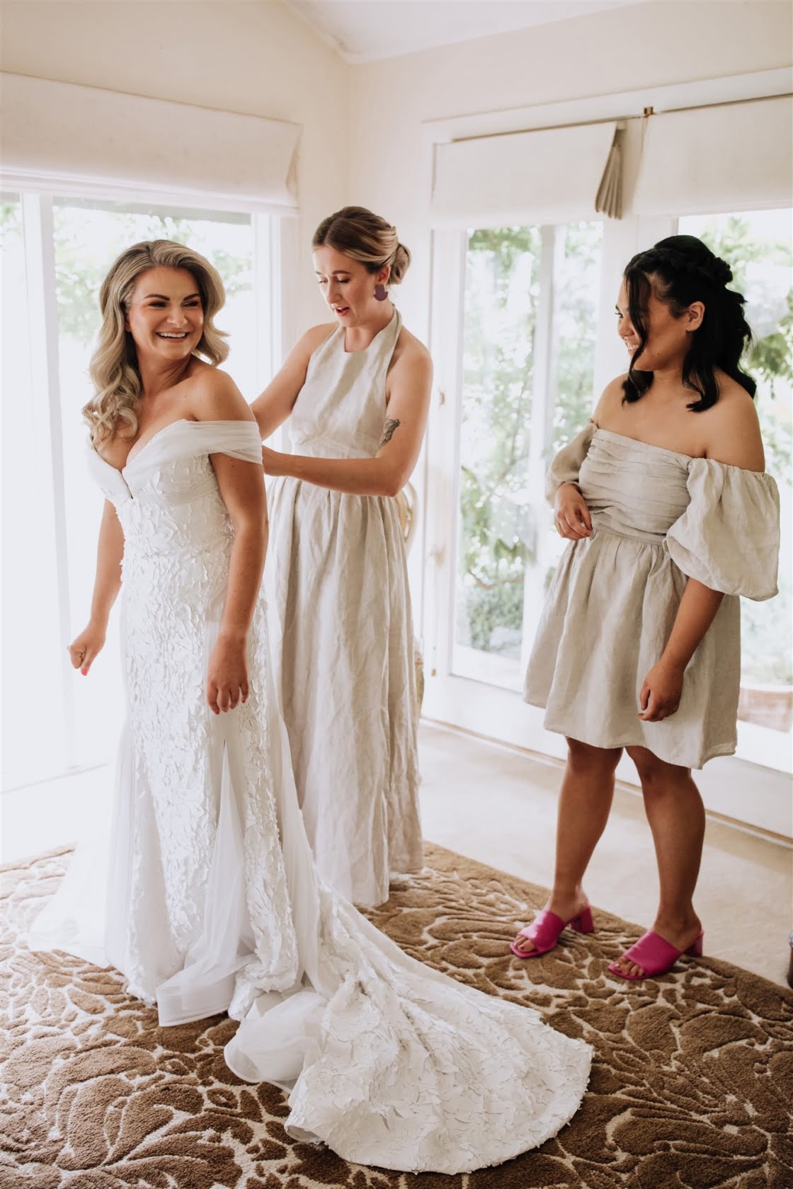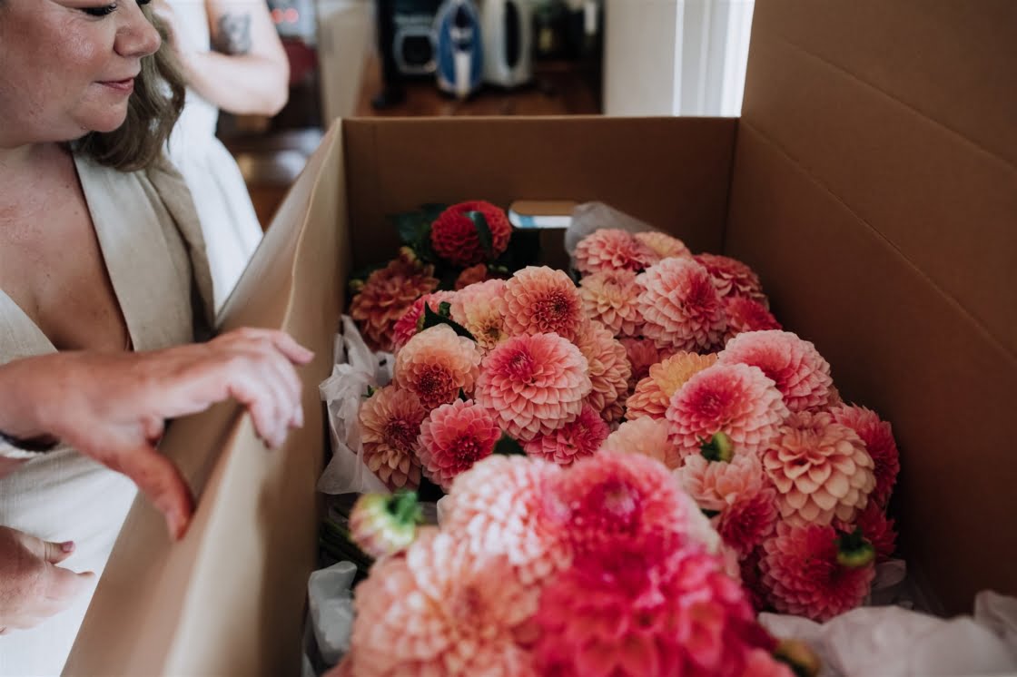 THE DRESS “I always knew I wanted a Georgia Young Couture dress. I’ve watched her work over the years and knew she was the right amount of unique, modern, yet bridal that I was after. The gown I picked wasn’t something I would have expected for myself – it had lace! But I loved it and still do. I love the bow on the back (very me) and paired up with a short veil and Barbie pink shoes.”