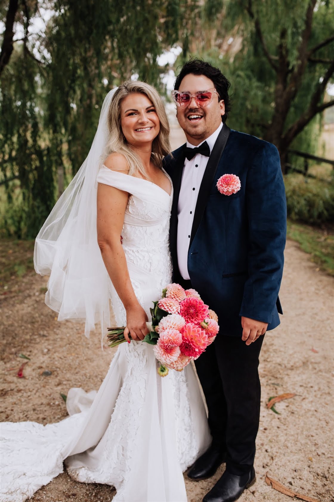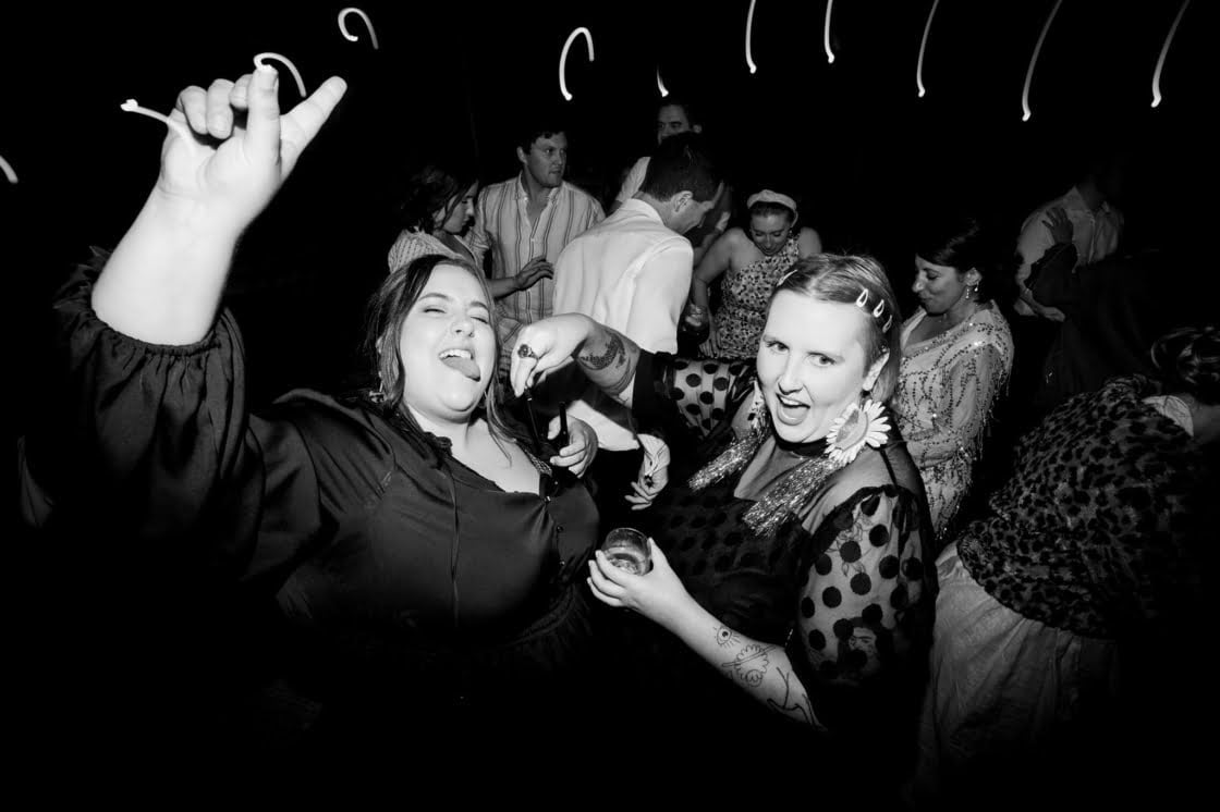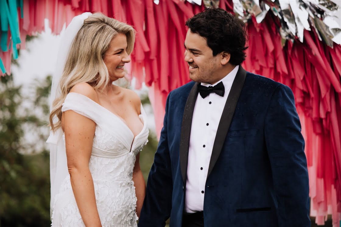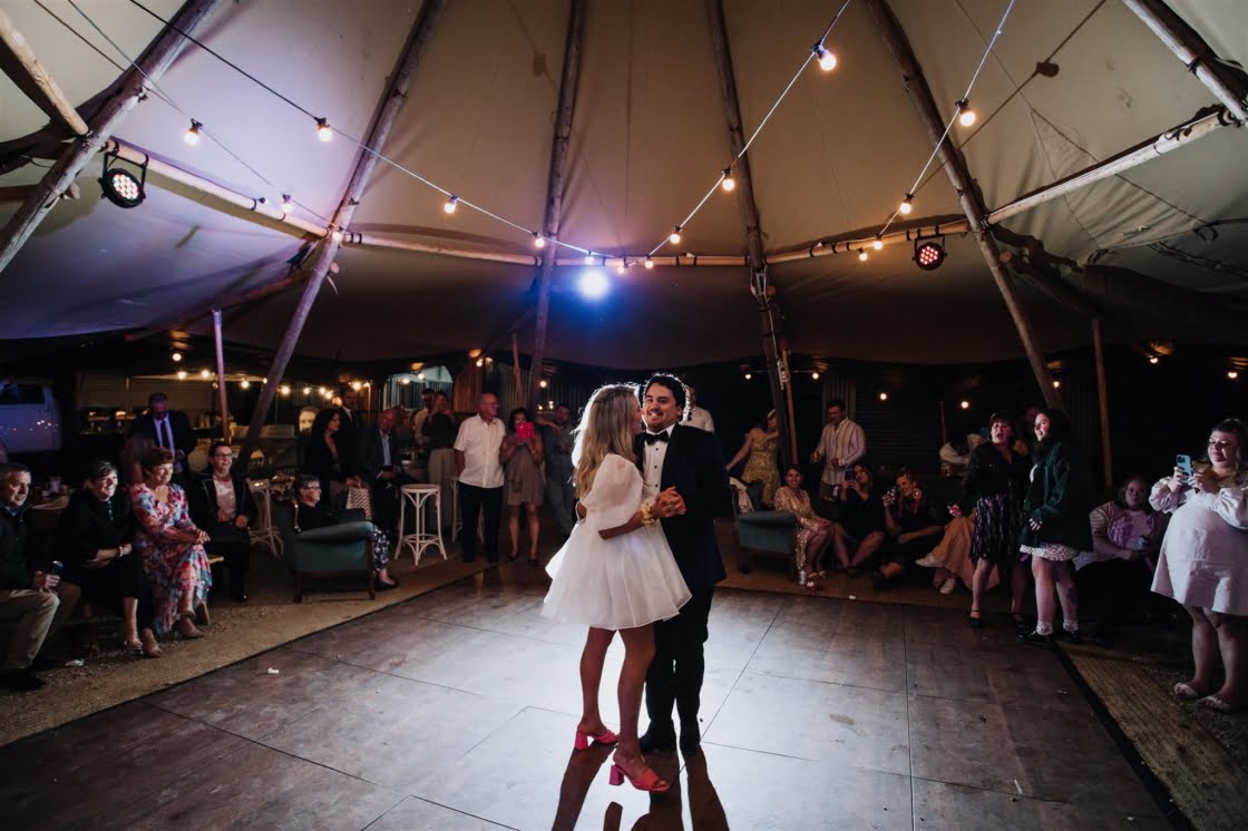 Ofc, she said yes, and as it turned out, lockdowns forcing a change of date were a blessing in disguise for this pair. “It actually allowed us to book awesome vendors (Miss Trixie and Caravan Sounds) that were unavailable on our initial date,” they say. And speaking of awesome vendors, these folks really did lock down some of the best. Be Here Be Now Photos & Films took the incredible photos, Gather Round Events Co. prettied the place up (we’re talking festoon lighting, bench seeing and that phenom teepee), Georgia Young Couture took care of the heavenly dress, and Gibson Clothing got Nathan looking dapper as heck. What a team!
