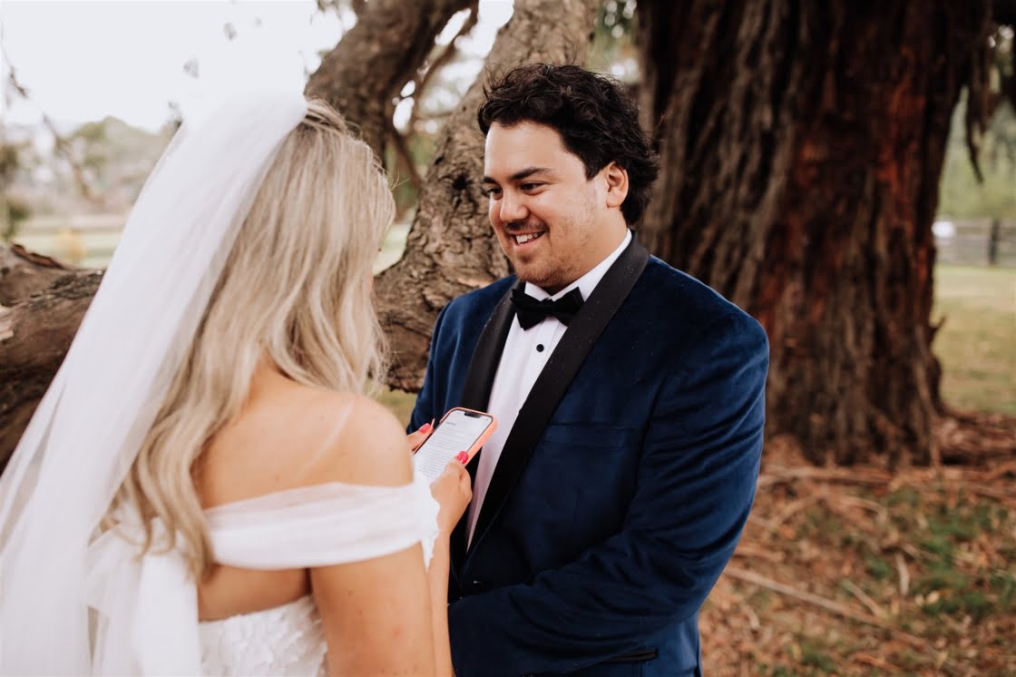 WE’RE GLAD WE… “We chose to do our vows privately less than a week before the date. We saw on our photographer Christian’s Instagram that he had shot a couple doing it and were both more comfortable with the idea. It allowed us to have ‘more natural’ vows, as we felt like we were initially writing them for an audience. Reading them to just each other made it more special and was a nice moment during the hectic day, where we were able to escape together and be alone.”