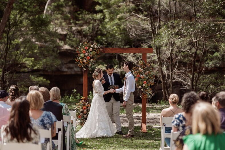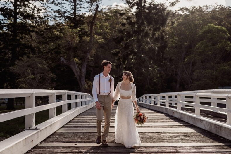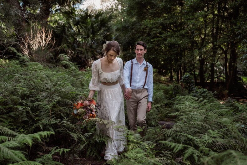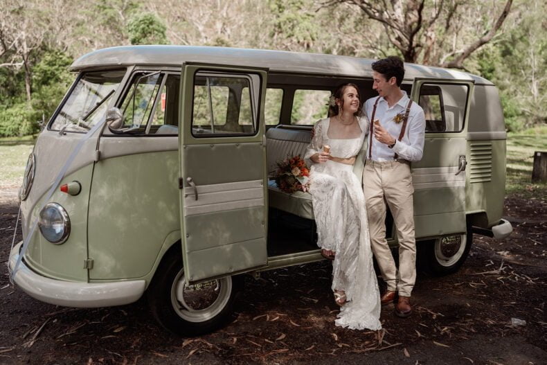 CONTRIBUTING VENDORS Photographer Kieran Moore Photography Ceremony venue Wattle Forest Picnic Area Royal National Park Reception venue Audley Dance Hall Florist Rain Floral Design Stationery & signage Bride Ice-cream cart Gelato Man Cake Taylor Harrington (friend)Wedding Favours Eliza Jade Candles Sound Hire Element ICT Celebrant Eliseo Jaun Ramirez (Mortdale Oatley Baptist Church) Rings Natalie Marie Transport Kombi Celebrations THE BRIDE Bridal Gown Designer Grace Loves Lace Hair piece Rain Floral Design Shoes Birkenstocks Jewellery Family heirlooms Hair Dalliance Bridesmaid dresses Amelius the Label THE GROOM Suit & shirt Country Road Shoes Rodd and Gunn Watch Ripcurl Suspenders Stitched NZ