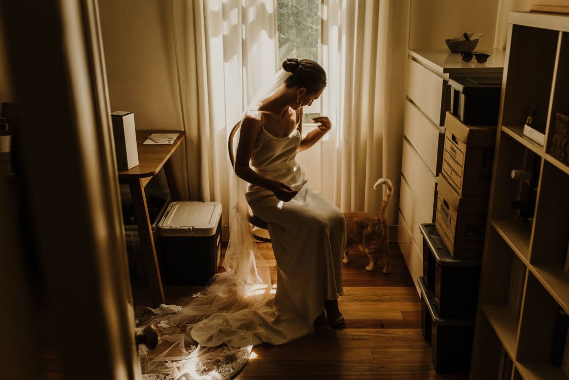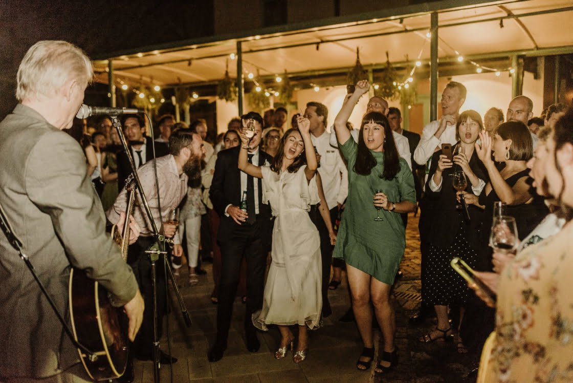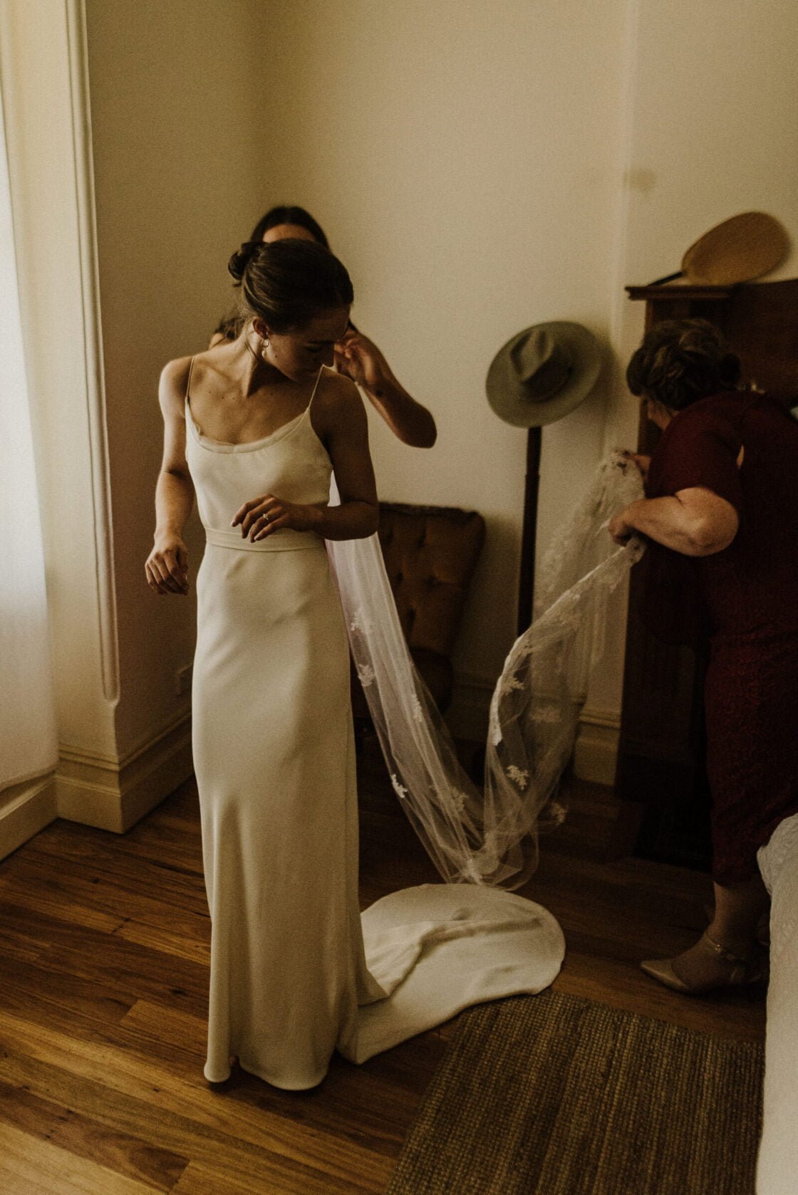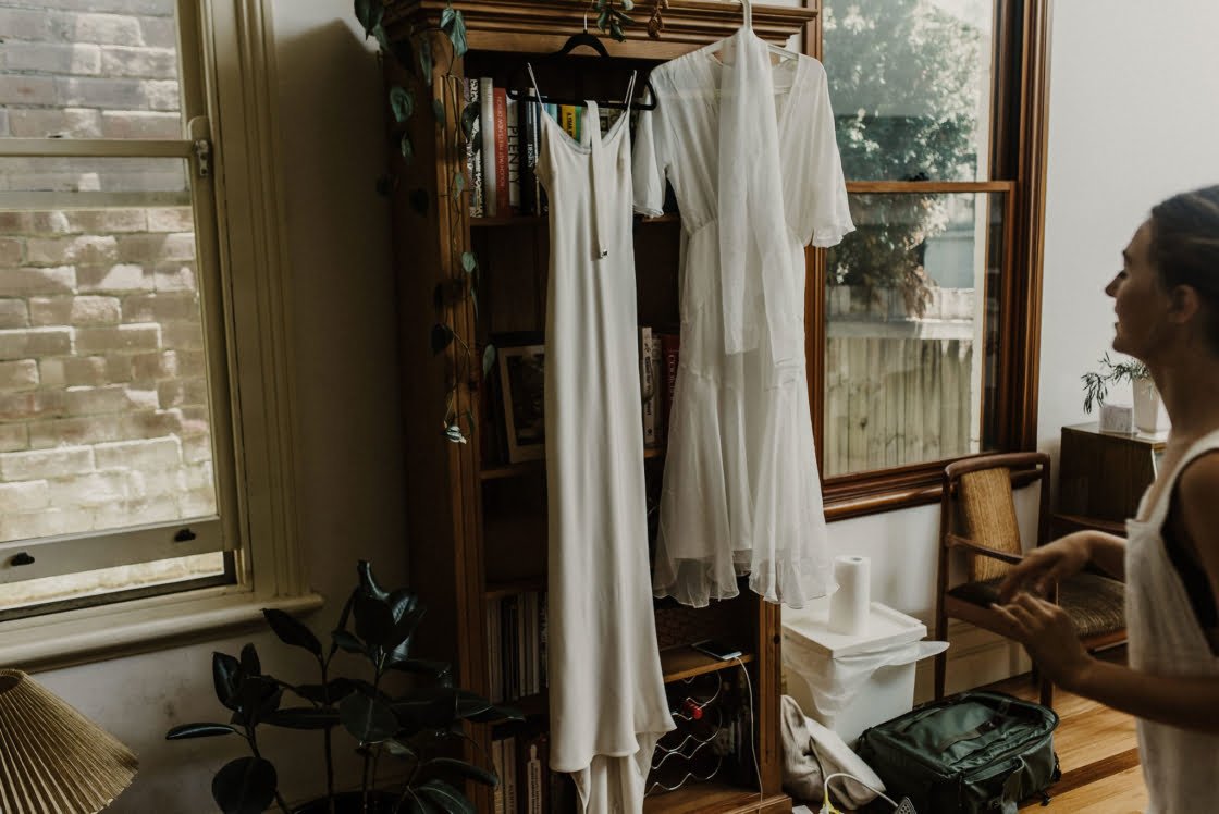 THE DRESS “I had two dresses – a French silk crepe slip gown for the formal part of the day and a silk party dress so I would be comfortable to dance the night away. For the ceremony dress, I wanted something very modern, chic and elegant. The thought of wearing an OTT traditional wedding dress freaked me out and my Fiona Claire dress felt like a very elevated version of my everyday style. I’m of a smaller build and knew the dress would need to be altered and it provided a perfect base to add a few features that would result in the absolute perfect dress for me. I also can’t sing enough praise for my dress alterer Joanne at Sew Special. She was an absolute pleasure. I then got super lucky with my reception dress, finding it in a sample sale at Camilla and Marc a week before the wedding. It was flouncy and fashiony and made me feel like a star!”