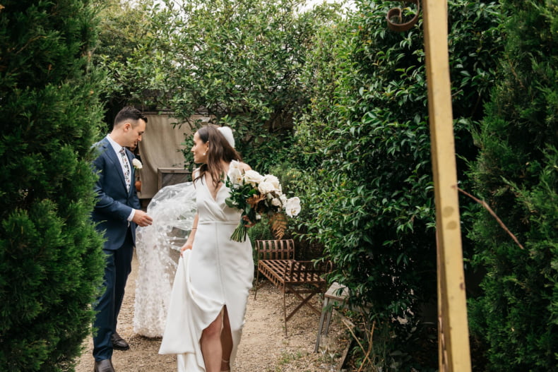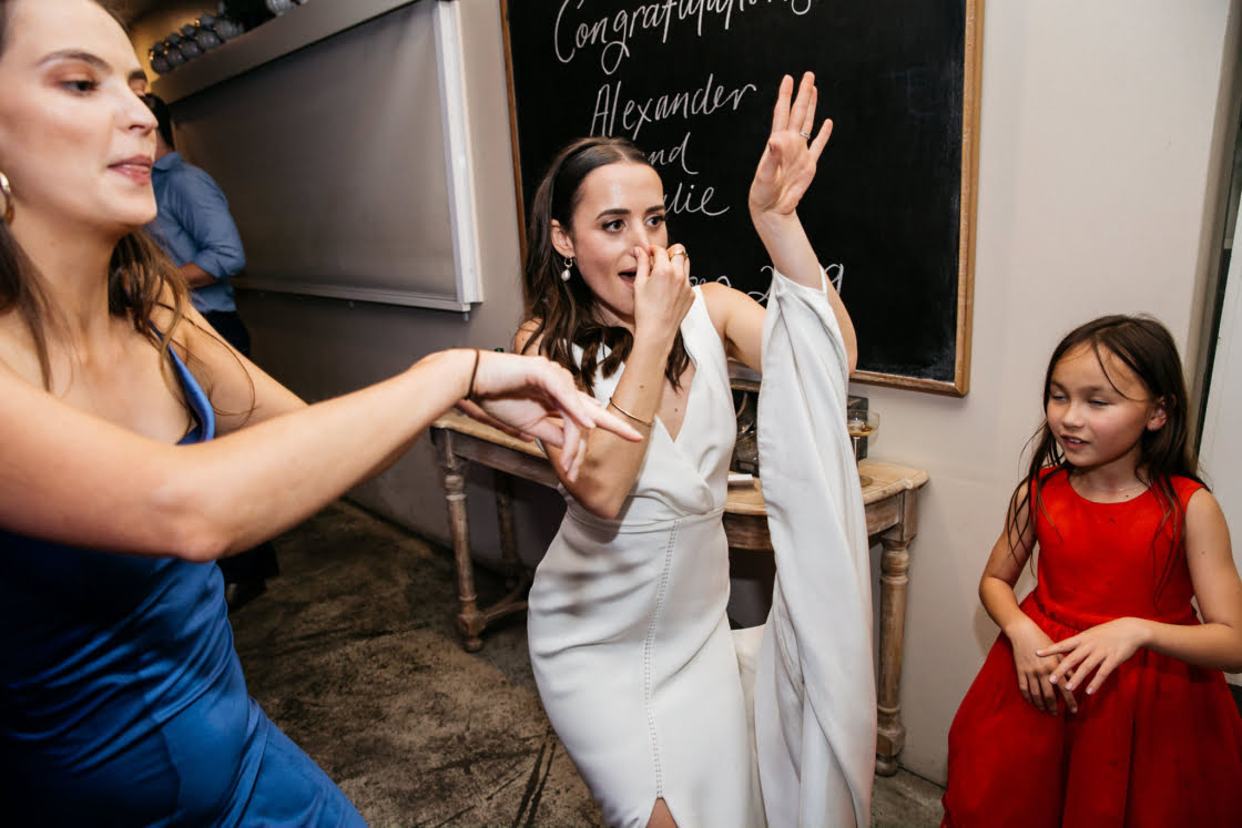 These two met at a music festival and deliberately held their wedding in December, “when everyone’s in the mood for a party!” So it’s safe to say we figured we were in for a fun-filled wedding with this one, friends. Add their chic choice of clothing – Prea James Bridal and M.J. Bale to be specific – and we were sold. Photographer, Zoe of Maple and June was there to document the day (and night) and you should do yourself a favour and scroll down for all the details…