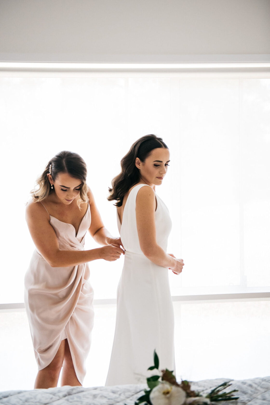 CONTRIBUTING VENDORS Photographer & Cinematographer Maple and June Florist Fleur My Darling Stationery Maybe At Dawn (Invitations) Made by Meg (Place Cards) Ceremony St Mary Star of the Sea Catholic Parish Reception Cupitt’s Estate Cake Maker Rose & Co. Signage Life is Peachy Entertainment XYDJ Celebrant Father Ross Jones Rings Eternal Diamonds Transport South Coast Limos & Charter Bus & Stuart’s THE BRIDE Bridal Gown Prea James Bridal Veil Theia Couture via The Bridal Atelier Robe & Pyjamas Piyama Shoes Country Road Accessories Pierre Winter Fine Jewels (Earrings) Hair Chelsea Taylor Hair Stylist Makeup Ash Quinn Makeup Artistry Bridesmaid Dresses Bec + Bridge, Zimmermann, Rewritten, Chancery & White Runway THE GROOM Suit M.J. Bale Shirt Country Road Tie Ted Baker London Shoes R.M. Williams Groomsmen Suits M.J. Bale