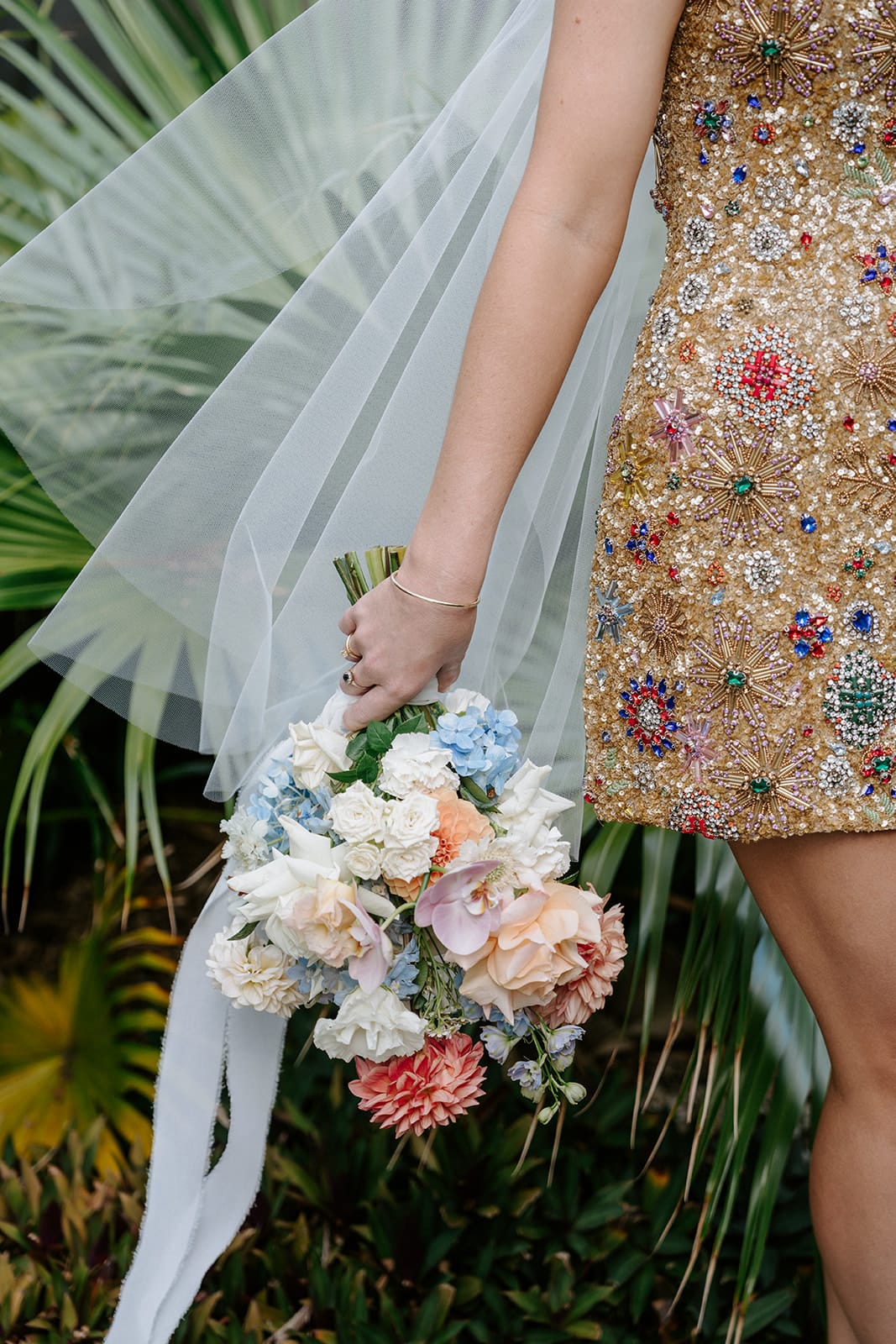 “I knew I wanted a short dress and nothing too traditional. I had seen my Rachel Gilbert dress online and thought it was just such an awesome dress for something special (not necessarily the wedding). It was sold out but I signed up for a restock notification to entertain the idea that one day I could own something so cool. Between a busy day of appointments and meetings I checked my phone to see it had been restocked and I ordered it right then before thinking. The dress arrived and while it was incredible, it was the wrong size so I sadly had to return it. The dress occupied my mind for a while so I went on the hunt and found it in a boutique in Sydney who were so lovely and excited for me to have found it.”