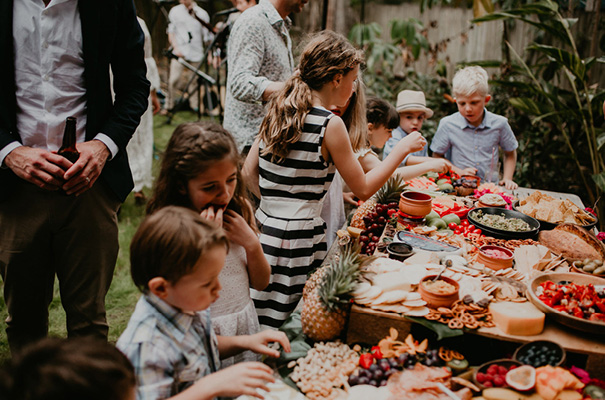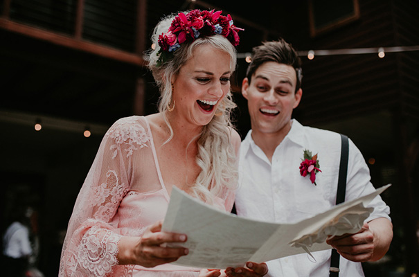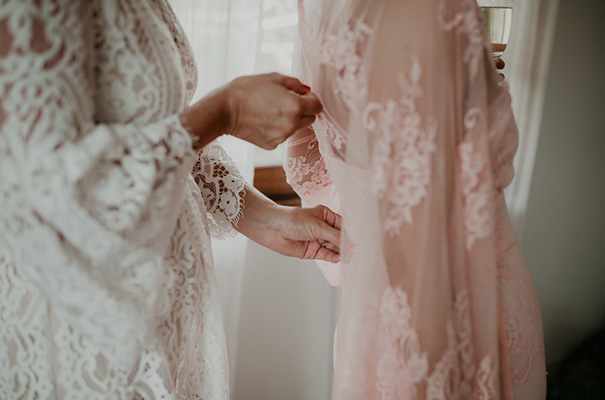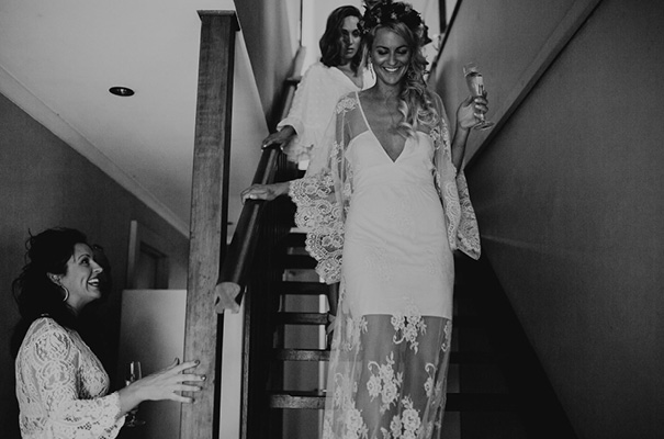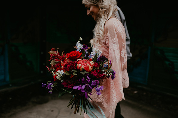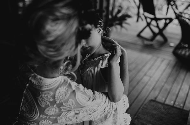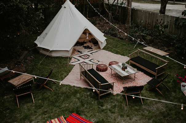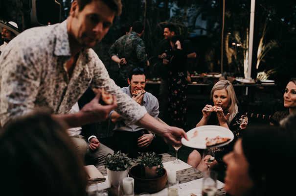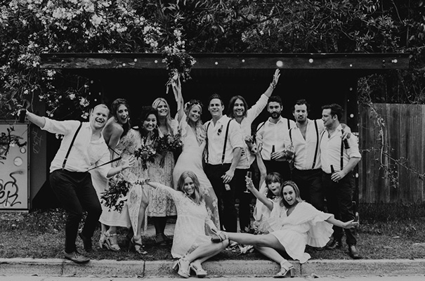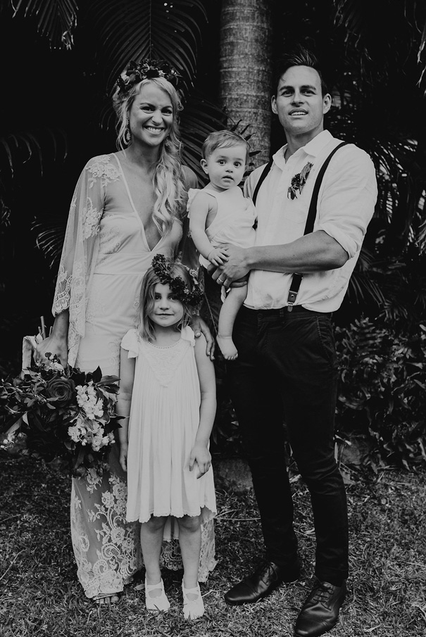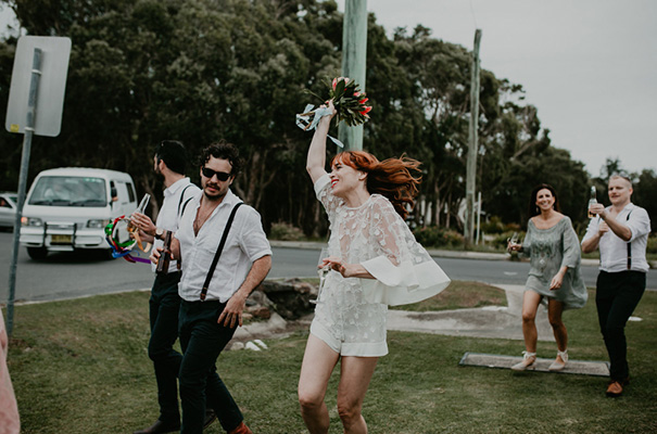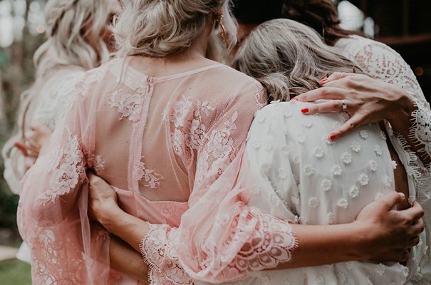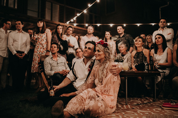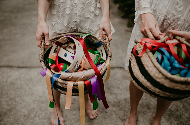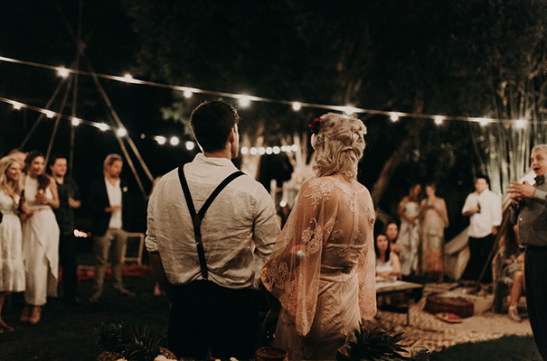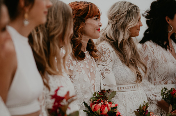 “Our vision was for a super vibrant, playful, bohemian love-fest festival party!! Something super intimate and joyful, with only our very nearest and dearest to celebrate love and family in a fun and relaxed way,” said the bride, who rocked a gorgeous pink Jen’s Pirate Booty gown, whilst her ‘maids wore some rather gorgeous white and cream Spell & The Gypsy Collective and Alice McCall frocks.