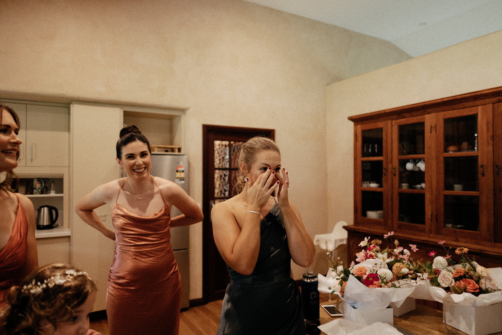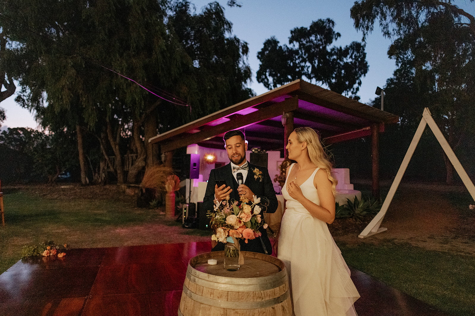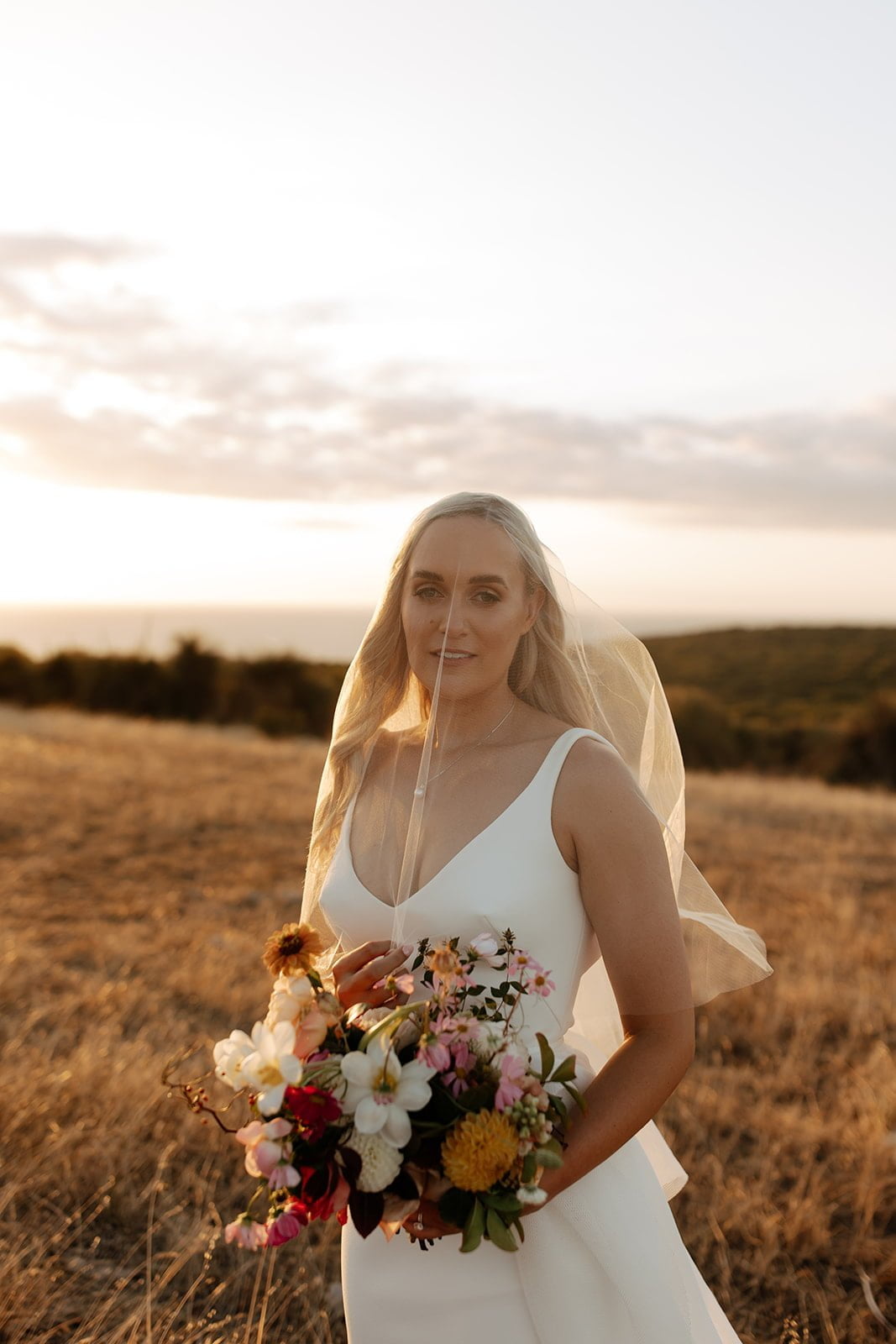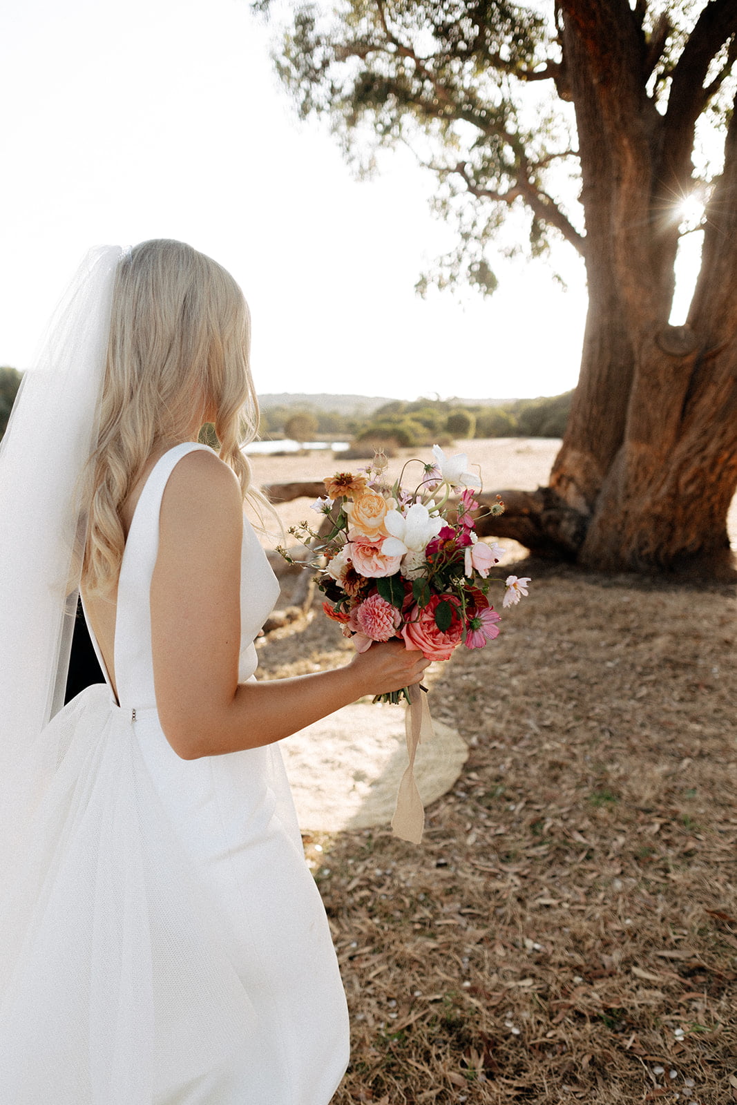 MEMORABLE MOMENT “After the ceremony we snuck away for photos up at Mt Duckworth with Emma. This was a spot that we had cycled up previously (both Sarah and I being keen cyclists). I vividly remember saying many many years ago, a throw away line on a ride up there that when we got married in dunsborough we’d have to go up there to get photos. The intimate time alone up there was amazing in such a hectic day and the photos speak for themselves as they are truly breathtaking.”