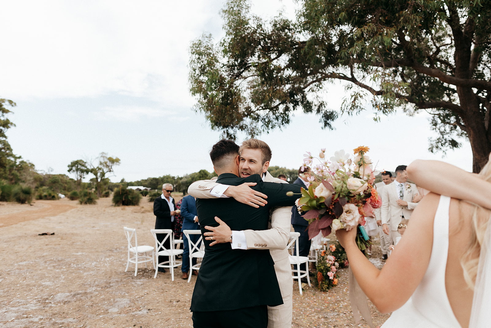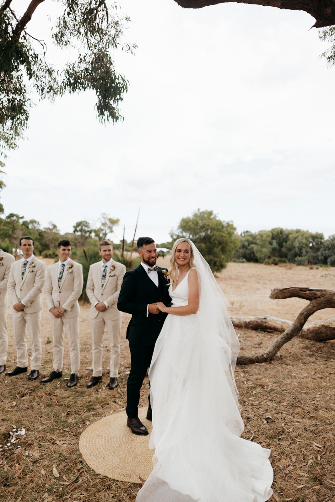 If you’re a West Oz or NT bride currently on the hunt for an epic photographer, be sure to check out more of Emma MacAulay’s gorgeous pics on our directory here; if you’re as obsessed with Sarah’s Karen Willis Holmes gown, head here; if you noticed James and his groomsmens’ stylish ties (how could you not?) courtesy of Peggy and Finn, you can hit them up here, or if it’s his suit you’re loving, get in touch with Theodore here.