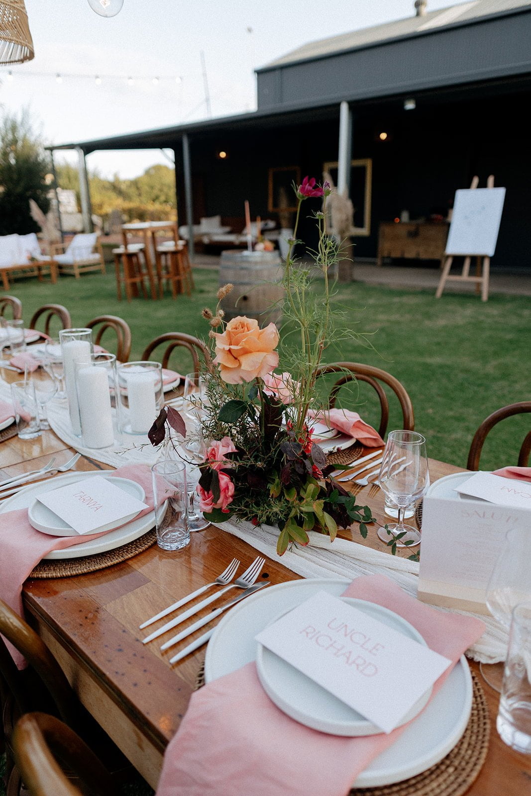 THE VIBE “Instead of adhering to a specific theme, we focused on creating a personal and meaningful experience for ourselves and our guests. We decided to forgo traditional placecards and, instead, wrote handwritten love letters to each of our guests. These letters were a heartfelt way of expressing our gratitude for having such incredible people in our lives. Throughout the day, we strived to incorporate similar personalised touches because we believed they would make our celebration truly special for both us and our loved ones. Ultimately, our wedding was a reflection of our deep love and appreciation for the extraordinary people who have touched our lives.”