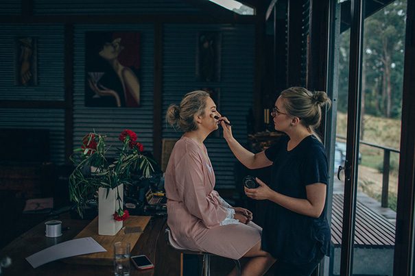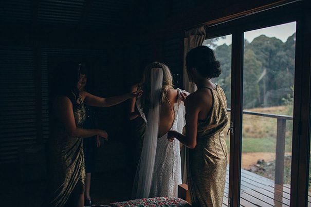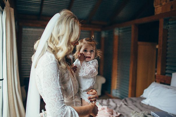 CREDITS Photographer Tilly Clifford // Cinematographer Bottlebrush Films // Florist Gerda Neeson // Stationery Sarah-Jane // Invites Printer Will Print Shepparton // Ceremony Venue May Day Kitchens, VIC // Reception Venue Bald Hills, VIC // Catering Bright Catering // Cake Ruby Anna Cakes // Cake Topper Made by Layla Via Etsy // Flower Chandelier GRACE Events + Artistry // Marquee RBR Party and Event Hire // Lighting and Sound Hire Albury Sound // Celebrant Yvonne McPhie // Engagement Ring Keshett // Wedding bands Stearns Showcase, Bendigo // Ring Box Alexa Lane Via Hard To Find // Bridal Gown Designer Rue De Seine // Bridal Boutique The Bridal Atelier, Melbourne // Veil Blossom and Bluebird Via Etsy // Flower Crown Fleur With Love Ash // Robes and Lingerie Bras and Things and Cotton On // Bride and Bridesmaid dresses Shona Joy // Bridesmaid shoes Jo Mercer // Groom’s Jacket Politix // Shirt Declic // Pants Roger David // Shoes Windsor Smith // Socks Happy Socks // Barber Master Kutz // Groomsmen suits Brooksfield and Roger David // Flower girl outfits Bubba Sook.