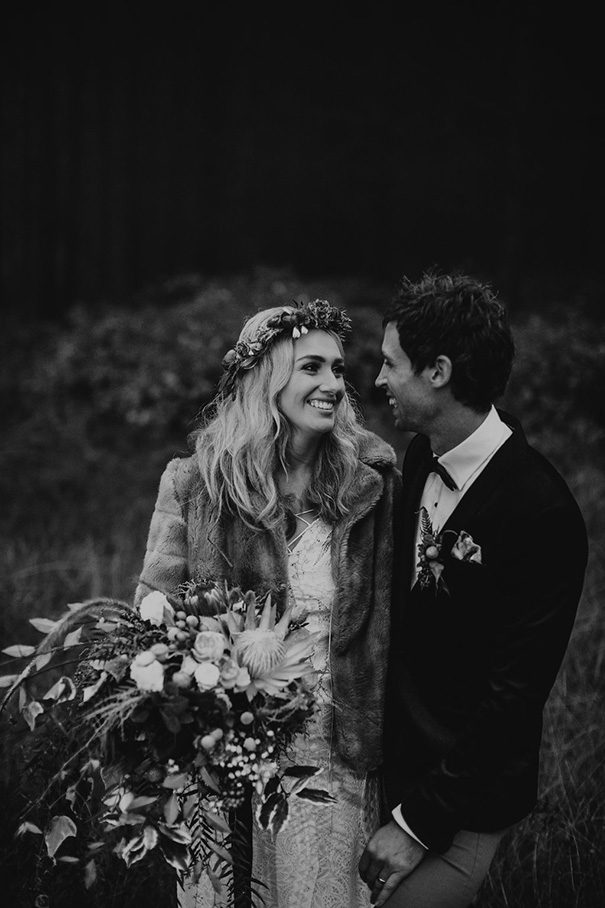 “We kept referring to our wedding as a whimsical wonderland, and I guess you could say Bohemian’.” The pair set their sights on May Day Kitchens for their ceremony, whilst their beautiful Air B’n’B,Bald Hills, made the perfect location for their reception, which was full to the brim with epic DIY’s.