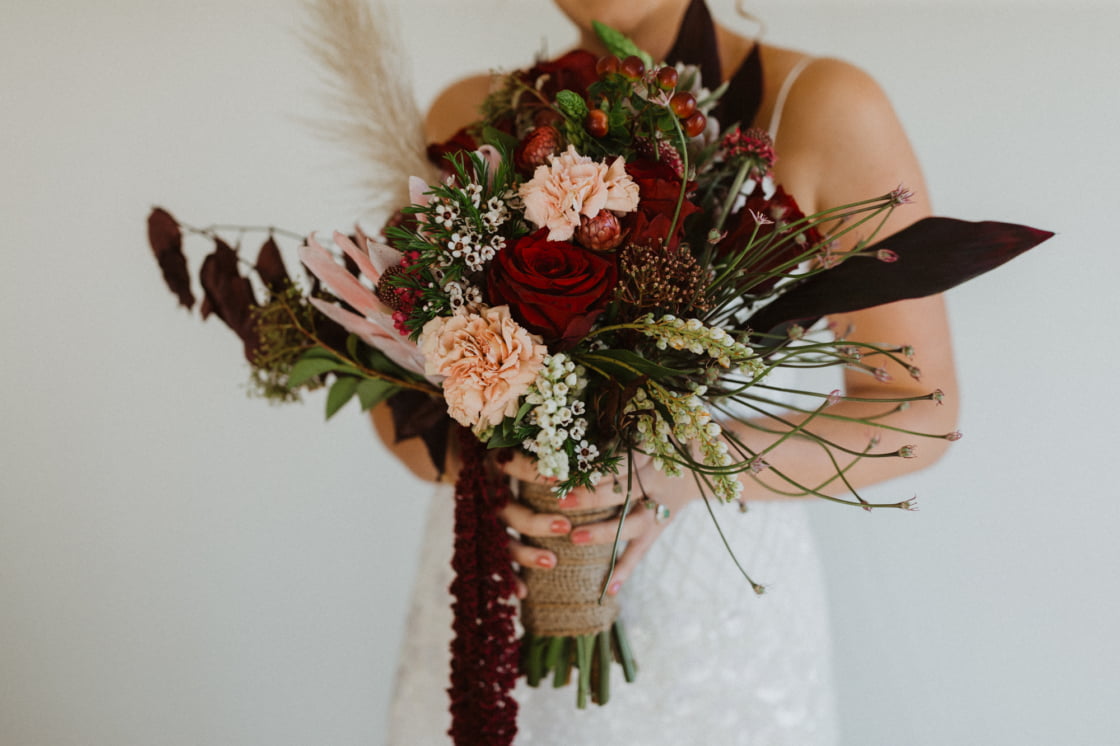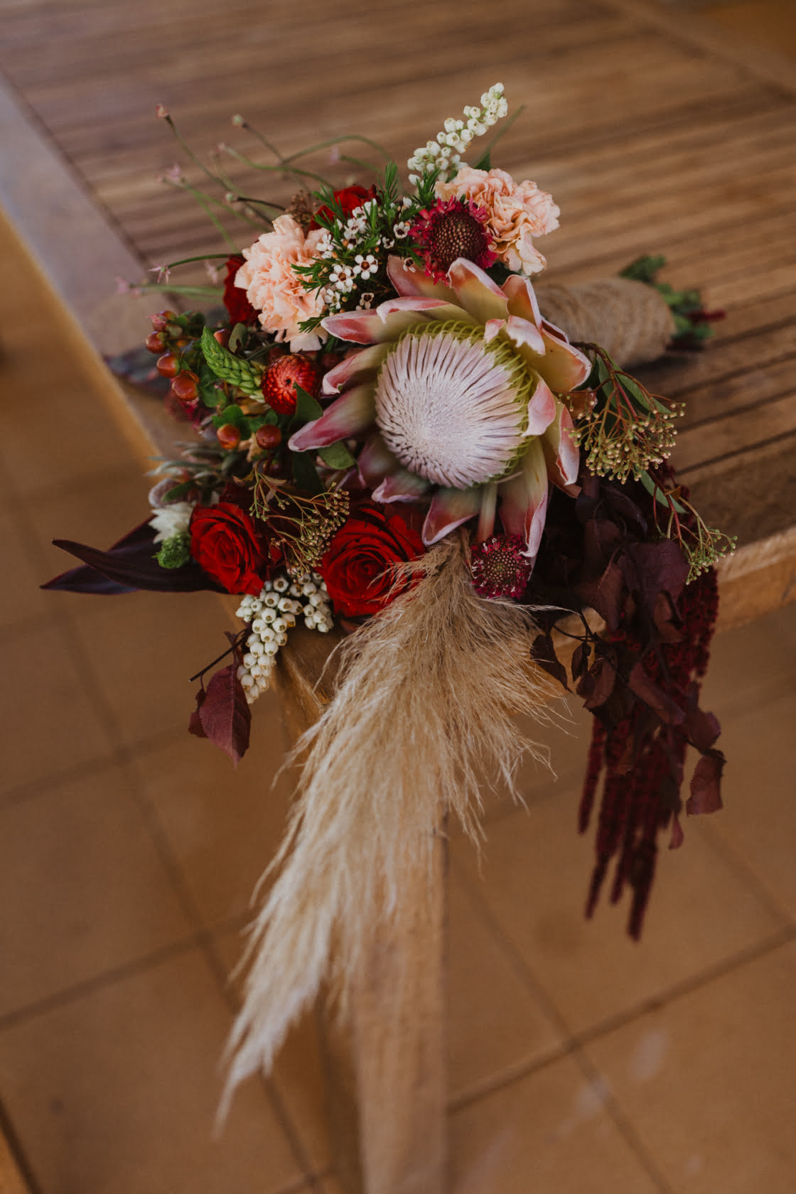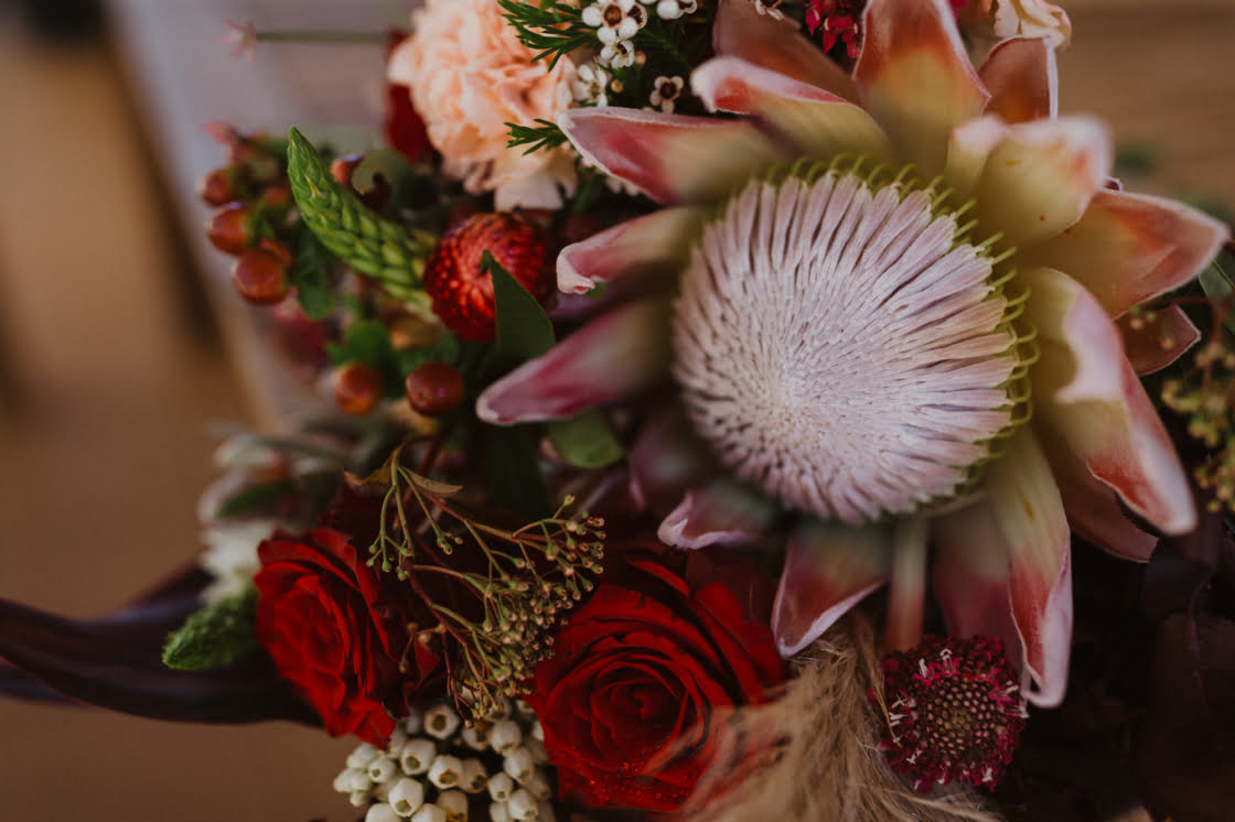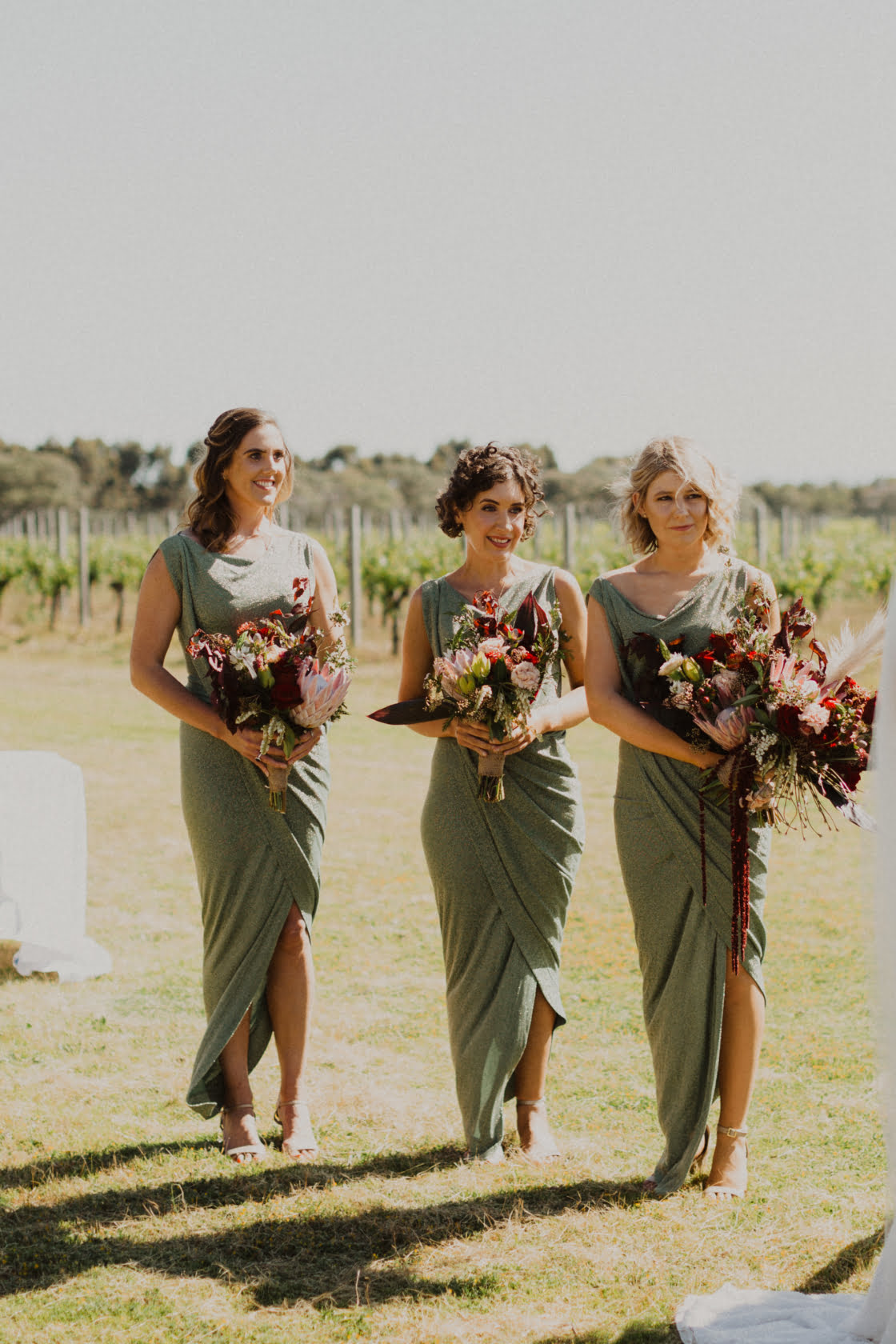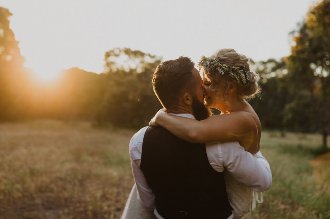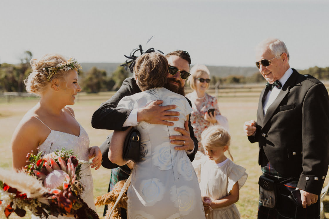 FAVOURITE DETAILS “We got really lucky with the weather as there were storms the weekend before, however, Margaret River really put on a show. The ceremony was outside backed by vines and our homemade tepee arbour adorned with Australian natives.”