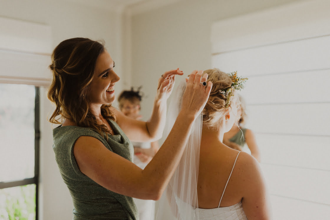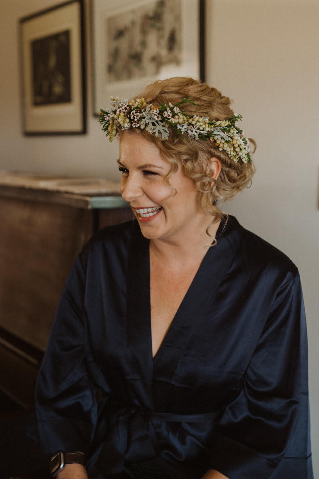 THE DRESS “I looked in what felt like every dress shop in Perth before narrowing it down to two dresses [Karen Willis Holmes]. I’m quite into fashion and have a fairly clear personal style but in looking online I tended to deviate from my usual. My Pinterest taste was a very relaxed floaty style with long undone wavy hair but when I started to try things on it just swamped me. The dresses that suited me were much more fitted with beading and sparkles, more old school Hollywood glamour.”