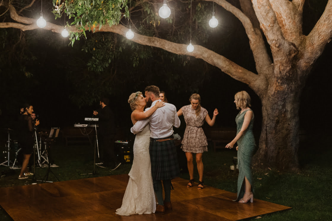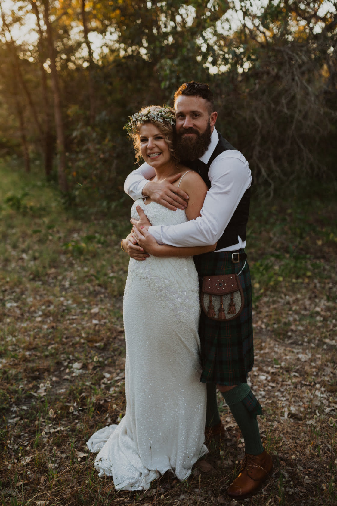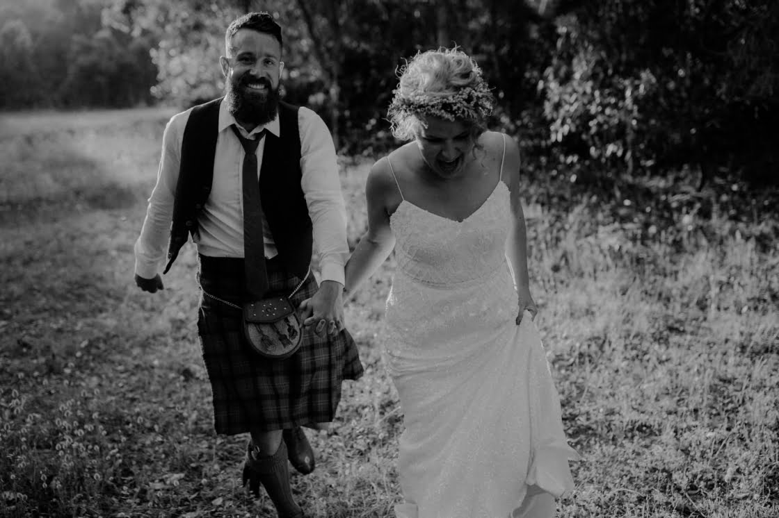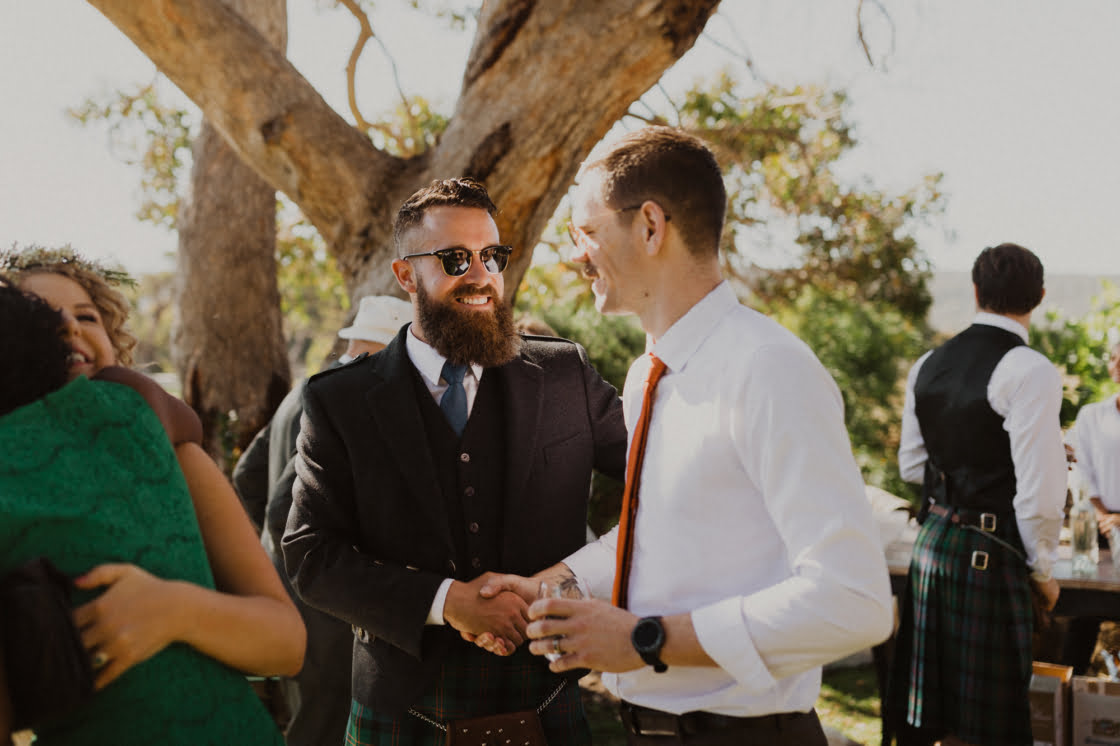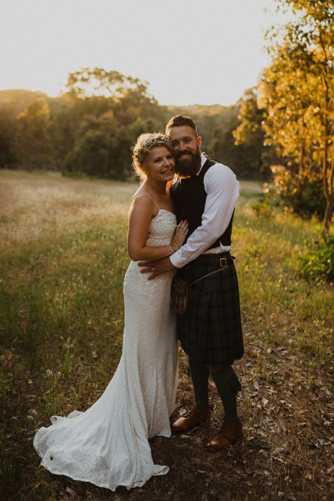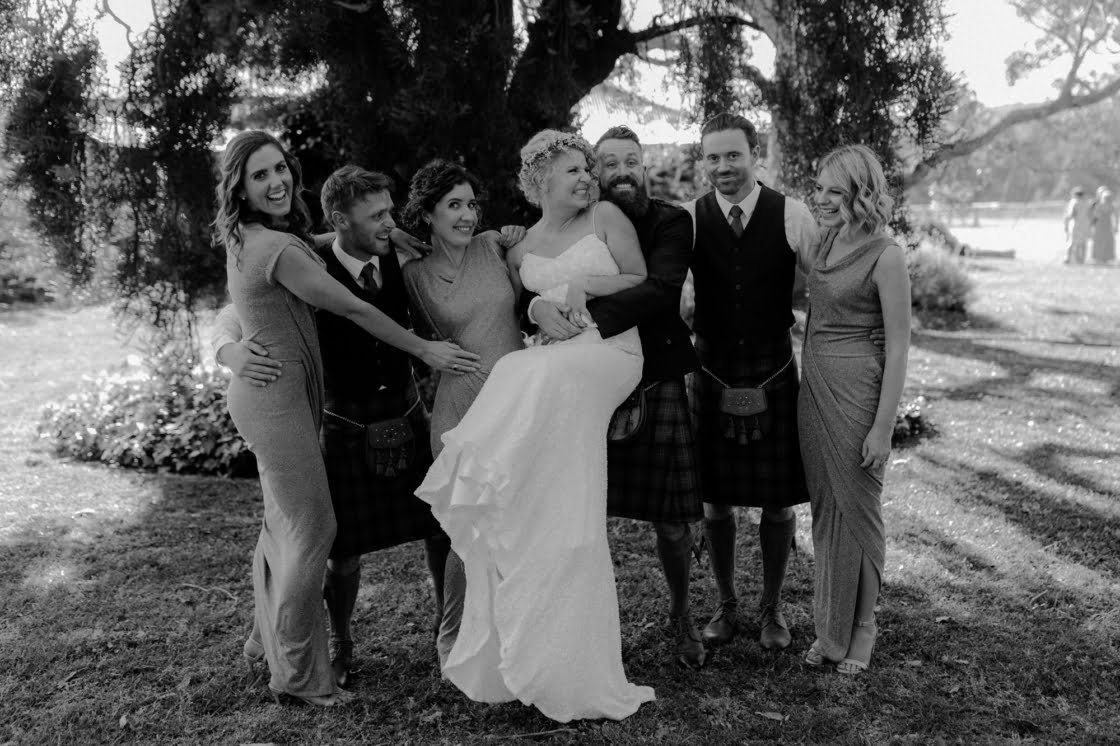 When Sarah and Sam decided to tie the knot they knew that incorporating their Scottish heritage throughout was a must. Think bagpipes, kilts and one very handsome cavoodle (complete with tartan cravat). Monty, the couple’s doggo, even underwent successful graded exposure training to bagpipes, not barking once throughout the ceremony. What a legend! Scroll down for some pretty freaking fabulous golden hour portraits, a bride decked out in Karen Willis Holmes and the cake to rule all cakes. Paris Hawken’s snaps are something spesh…